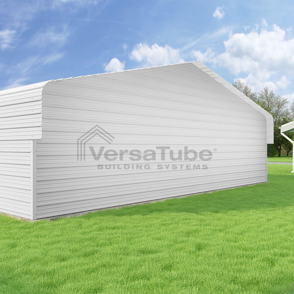 Classic Series DIY carport kit features horizontal application of sheet metal panels with the extra protection of rounded eaves.