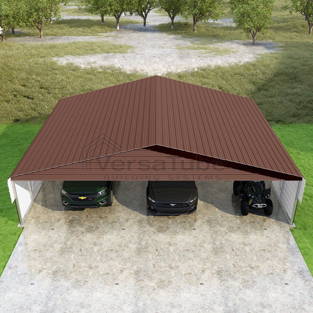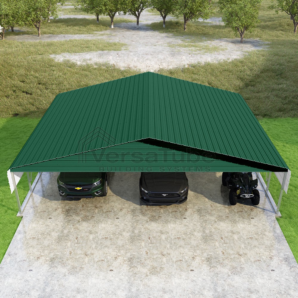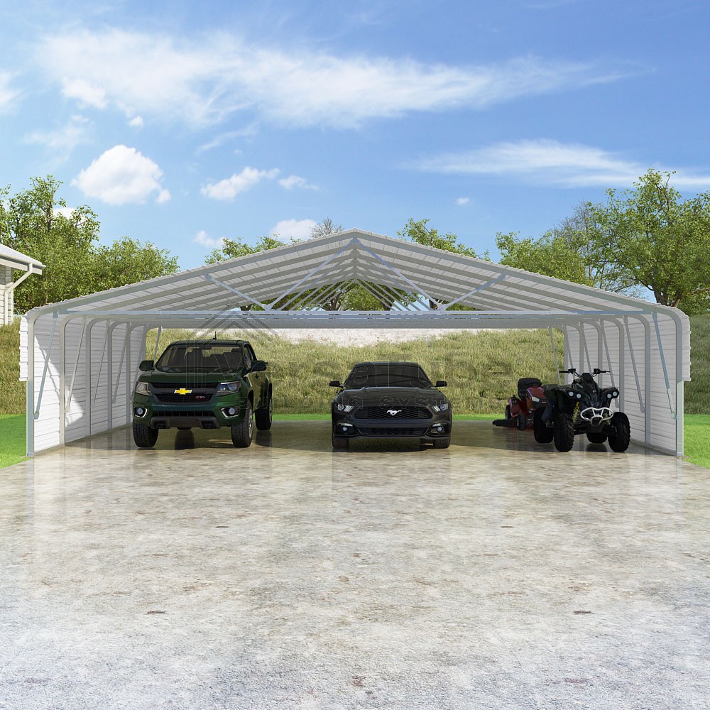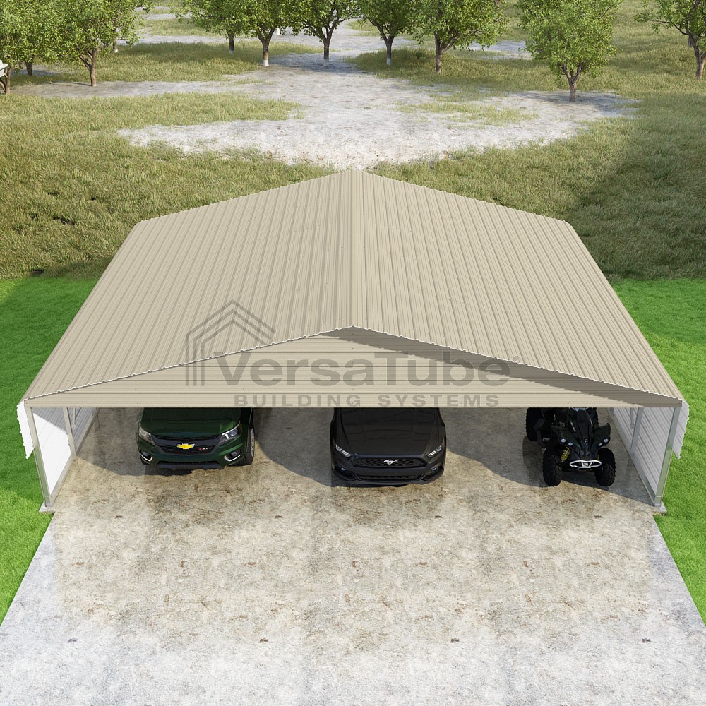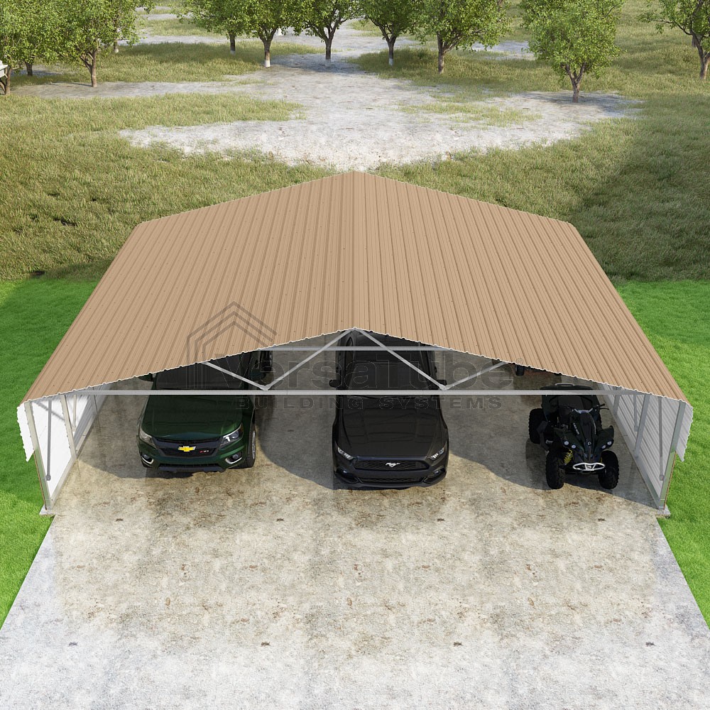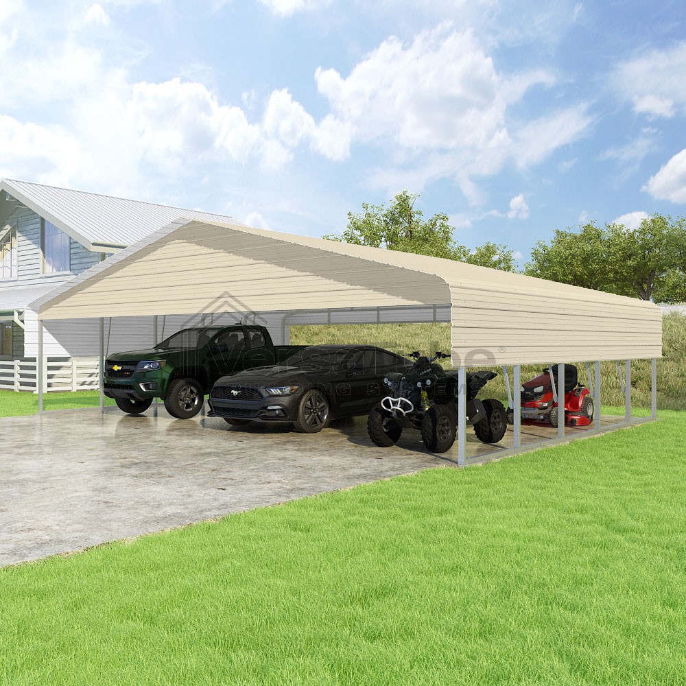 Classic Series DIY carport kit features horizontal application of sheet metal panels with the extra protection of rounded eaves.