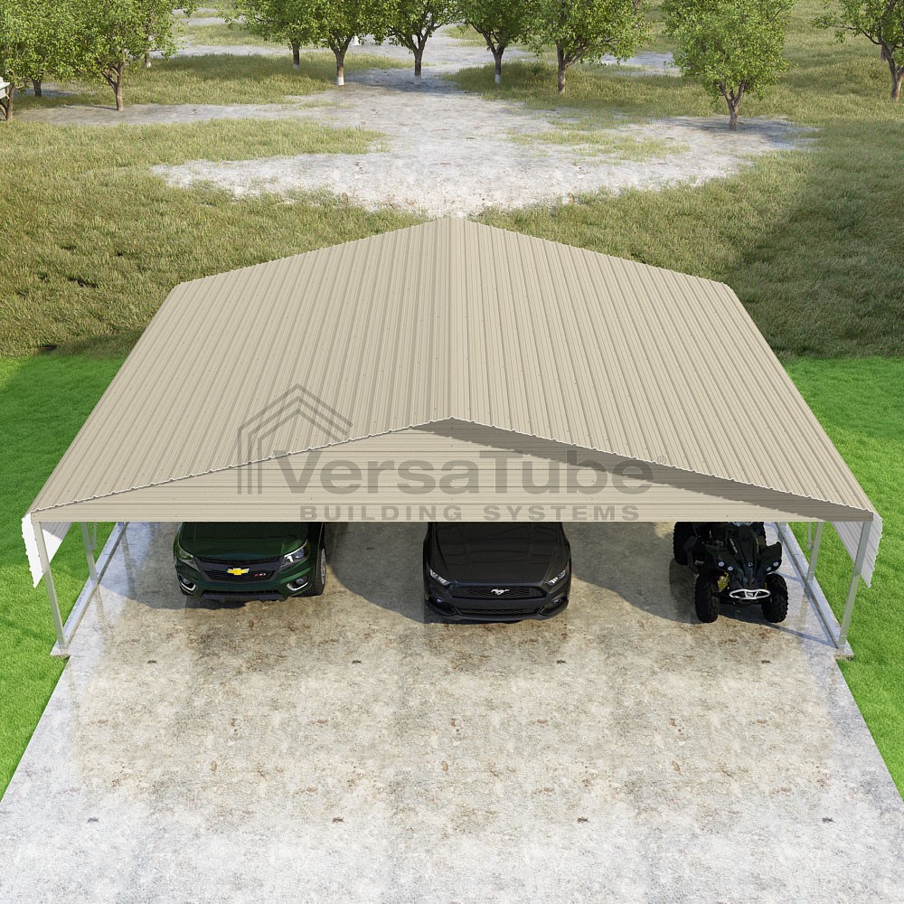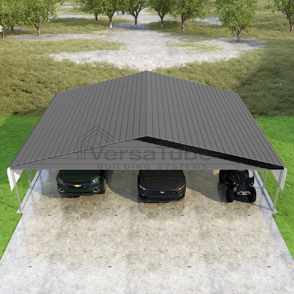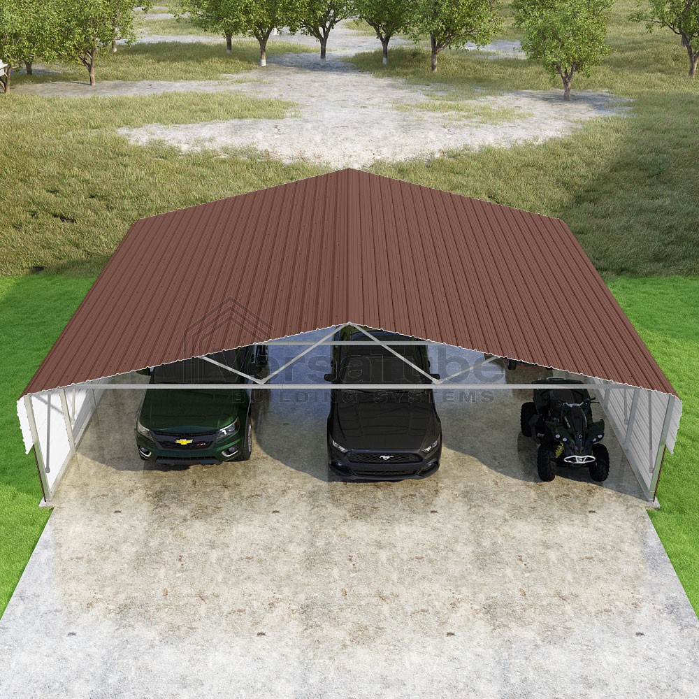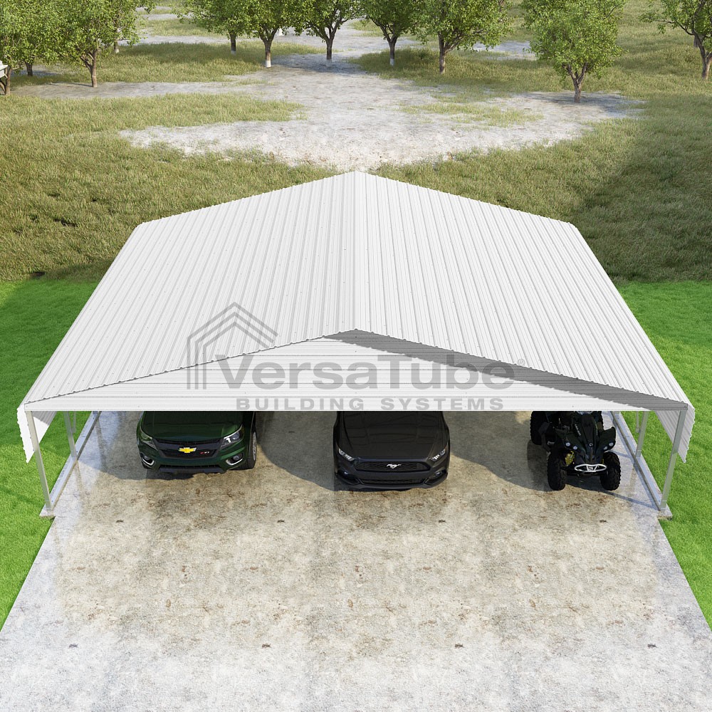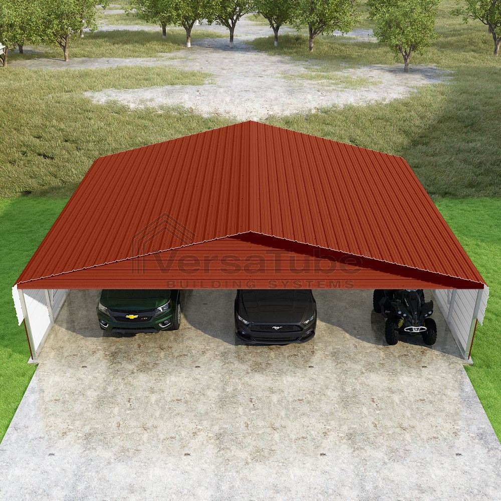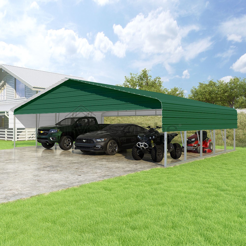 Classic Series DIY carport kit features horizontal application of sheet metal panels with the extra protection of rounded eaves.