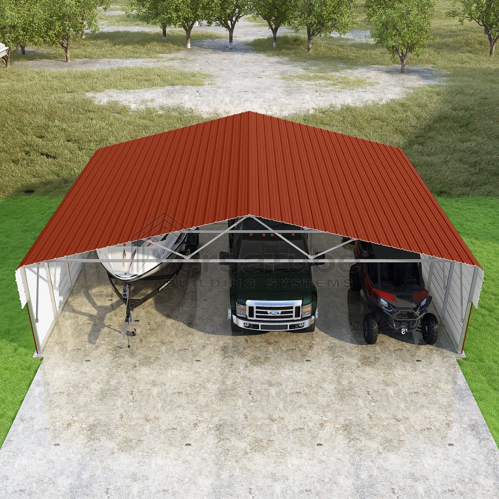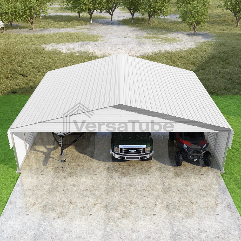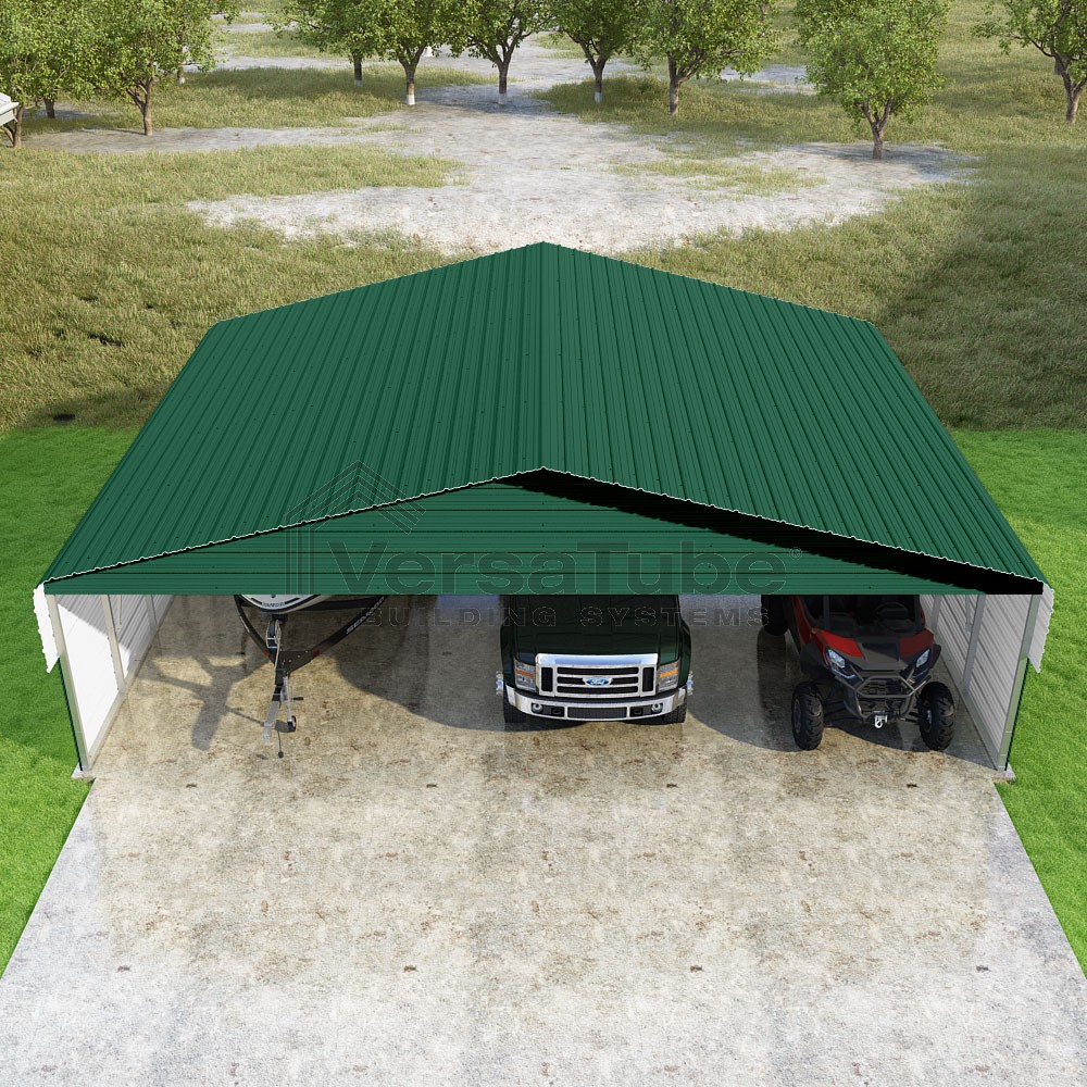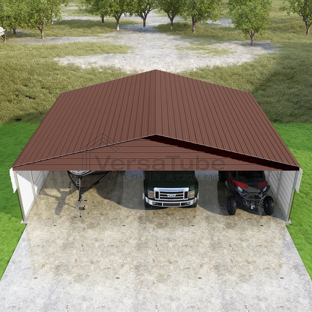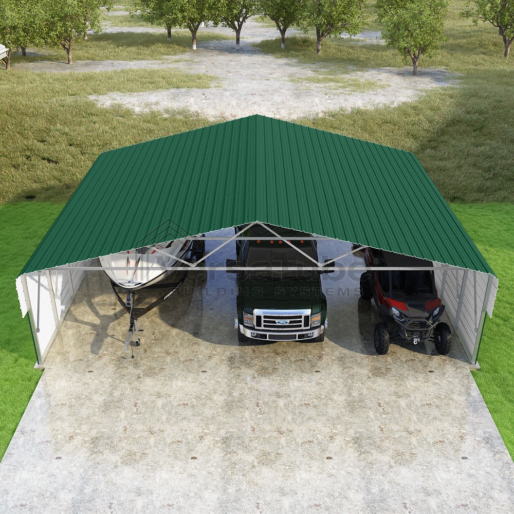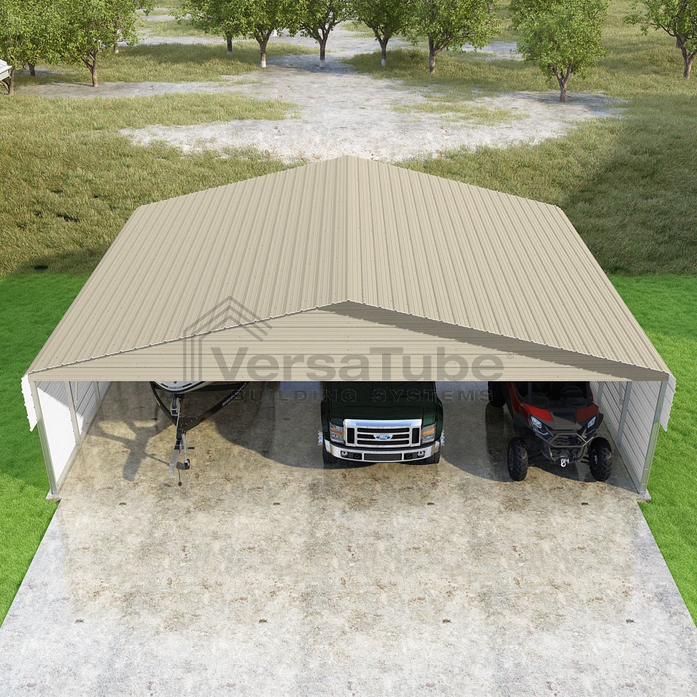 Classic Series DIY carport kit features horizontal application of sheet metal panels with the extra protection of rounded eaves.
