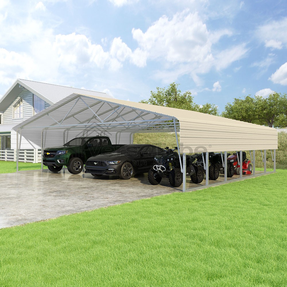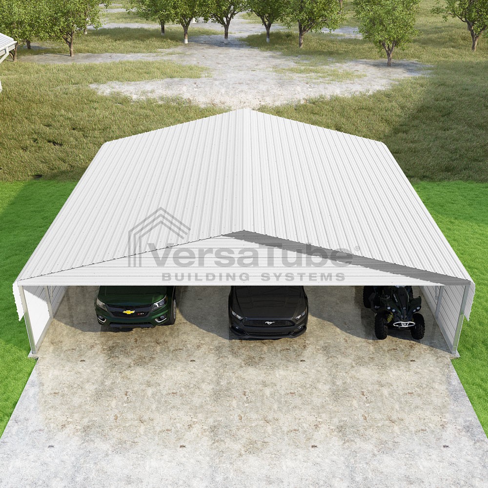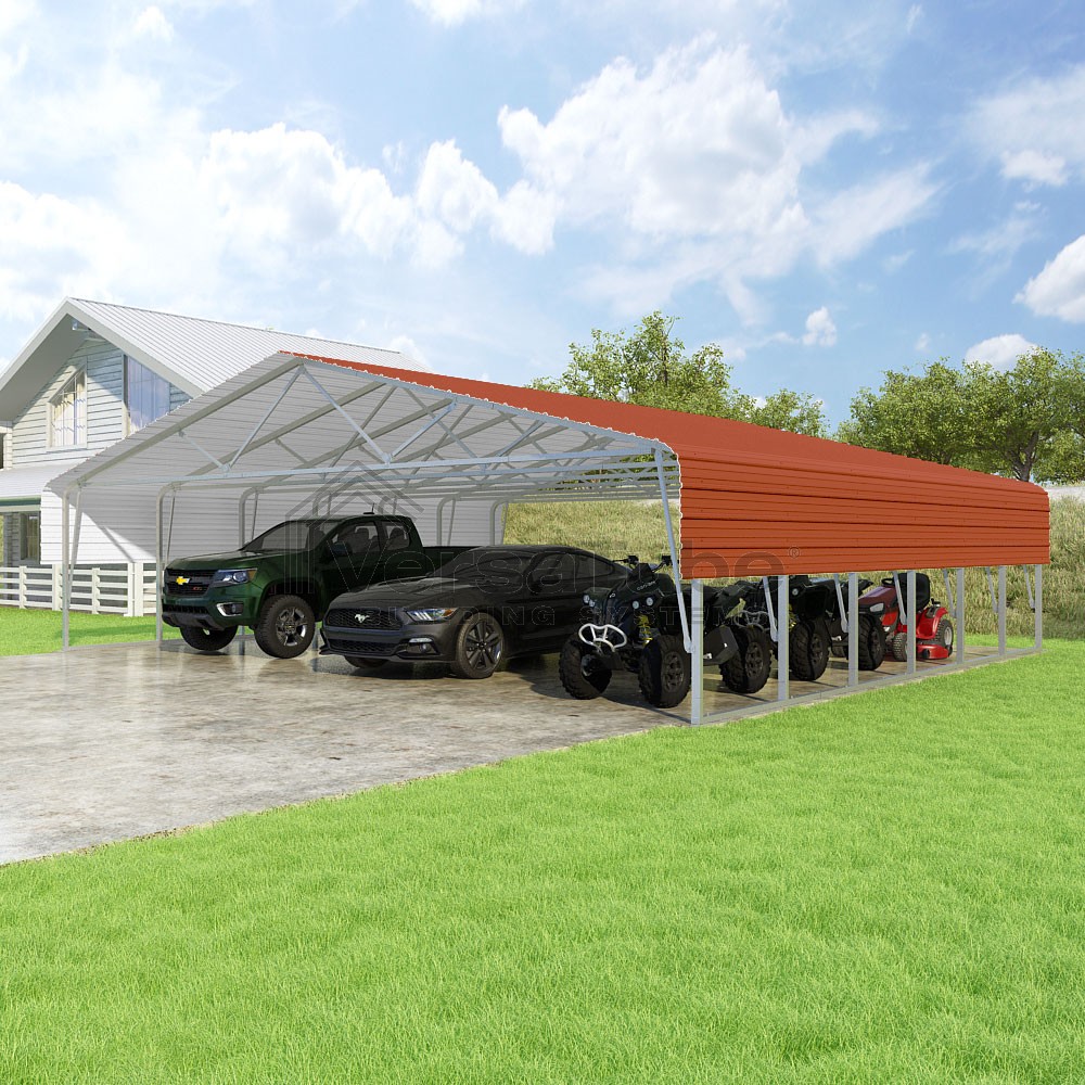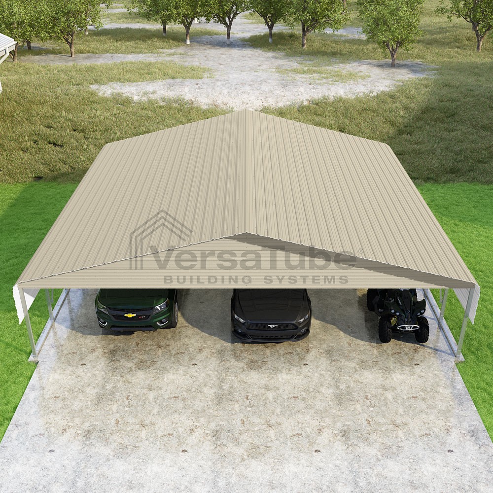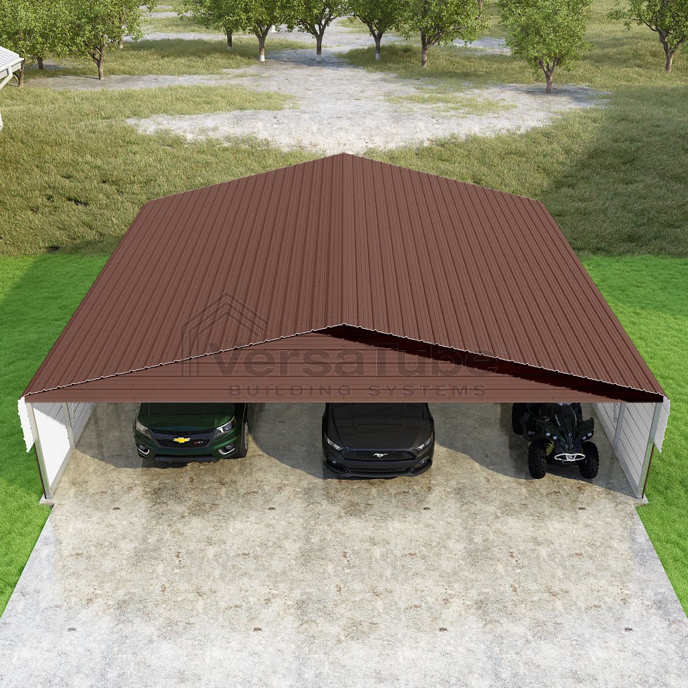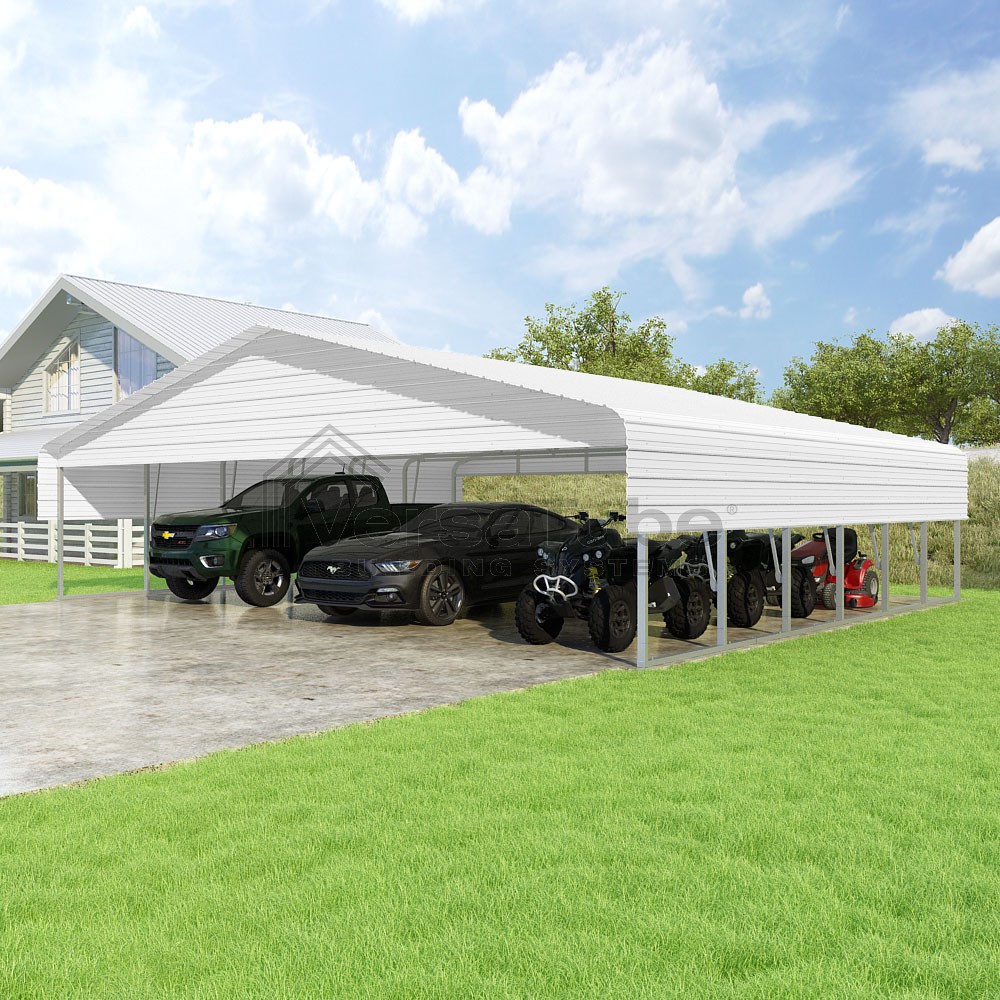 Classic Series DIY carport kit features horizontal application of sheet metal panels with the extra protection of rounded eaves.