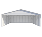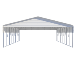 Classic Series DIY carport kit features horizontal application of sheet metal panels with the extra protection of rounded eaves.
