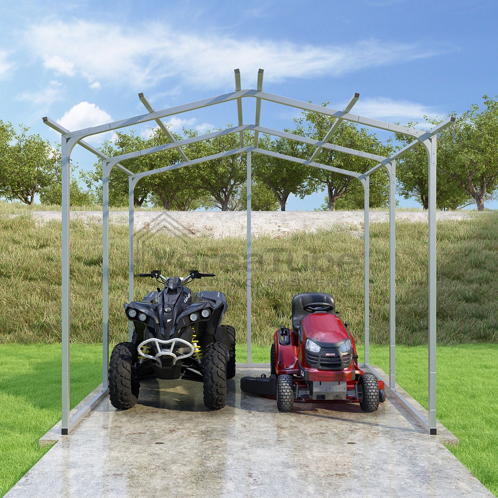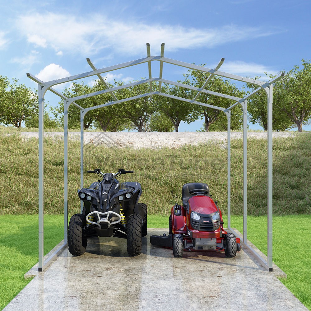Pinnacle Series DIY carport frame kit includes roof purlins for applying sheet metal panels vertically (sold separately) in a traditional or common gable style manner.