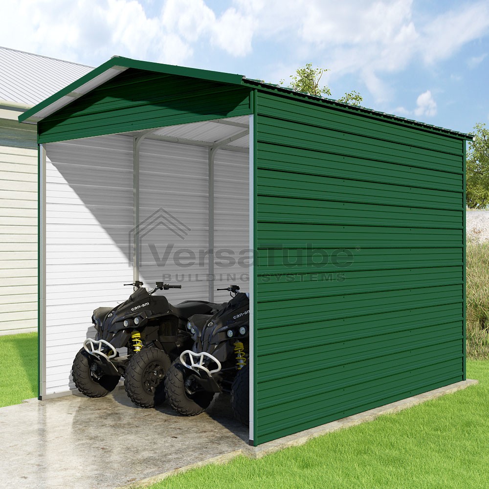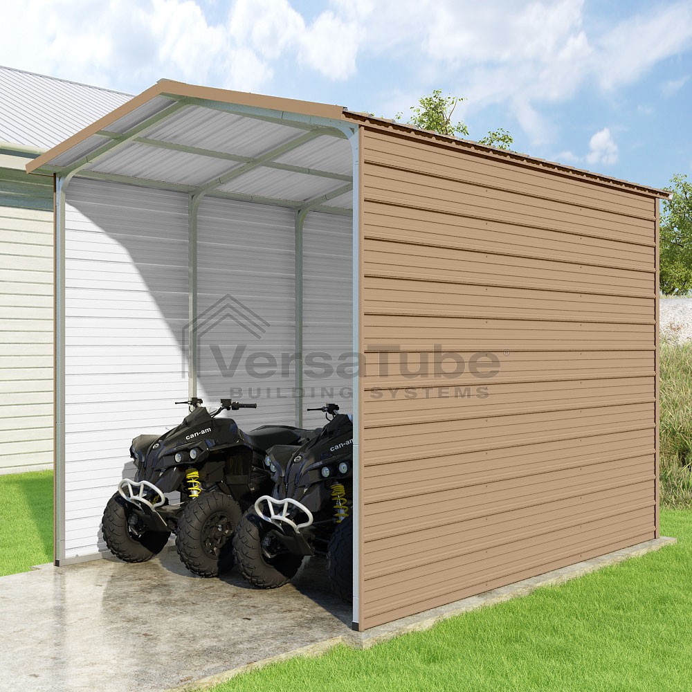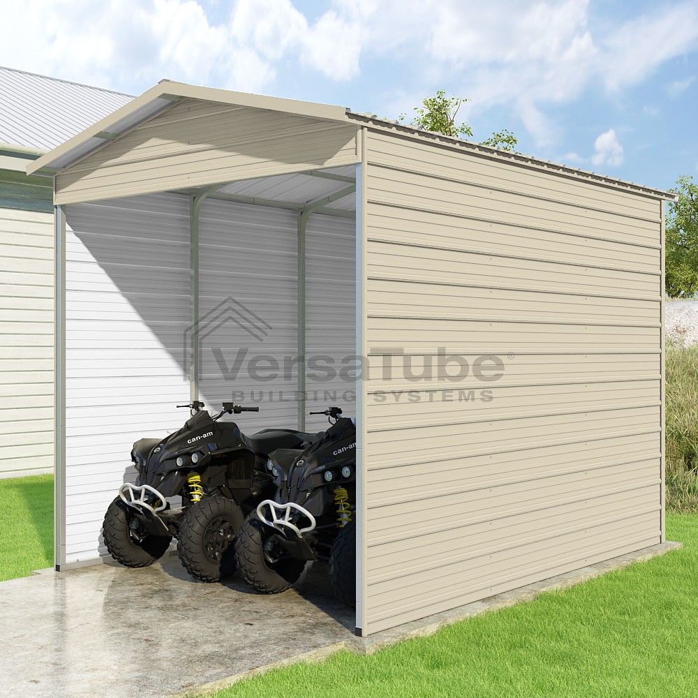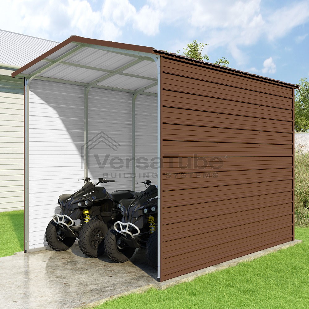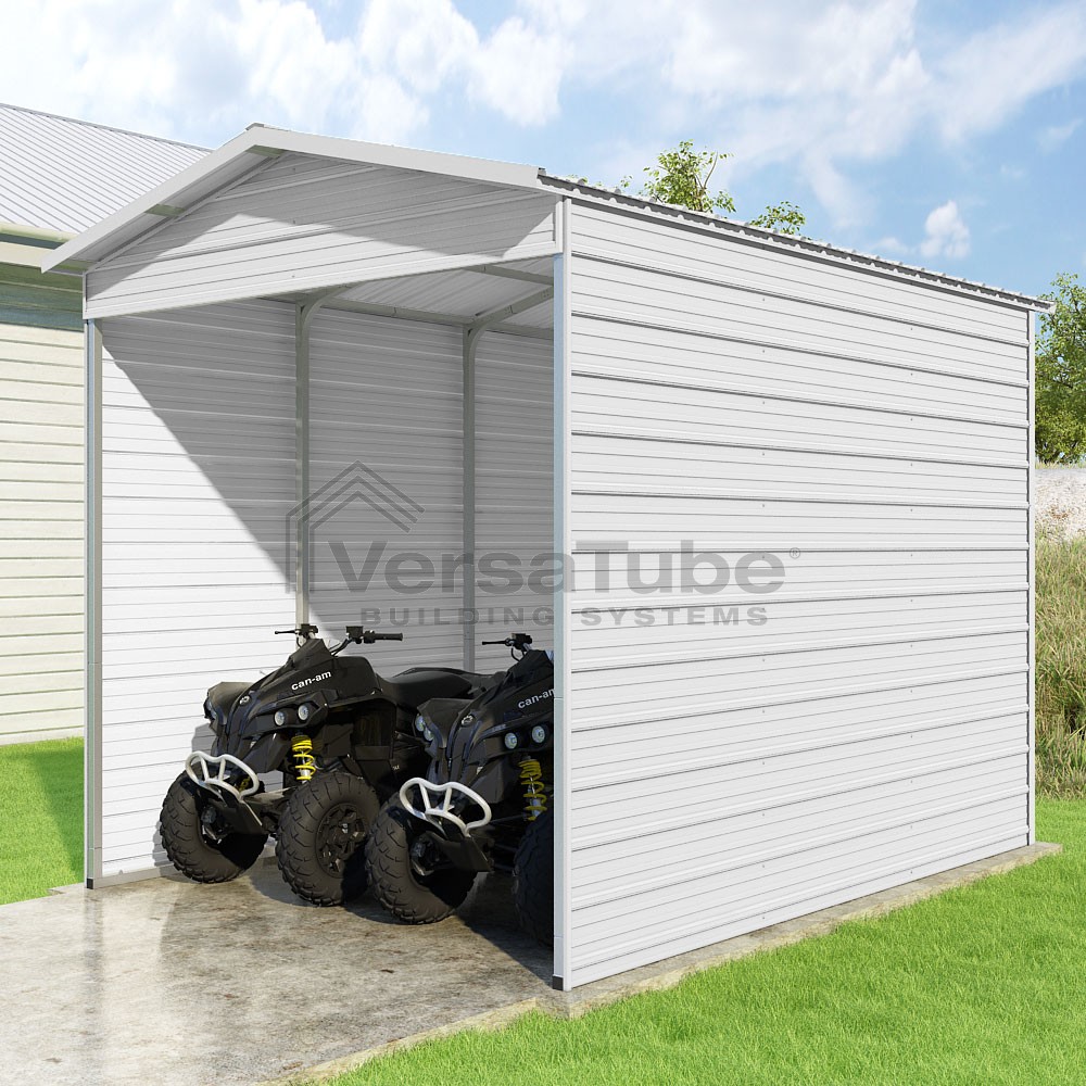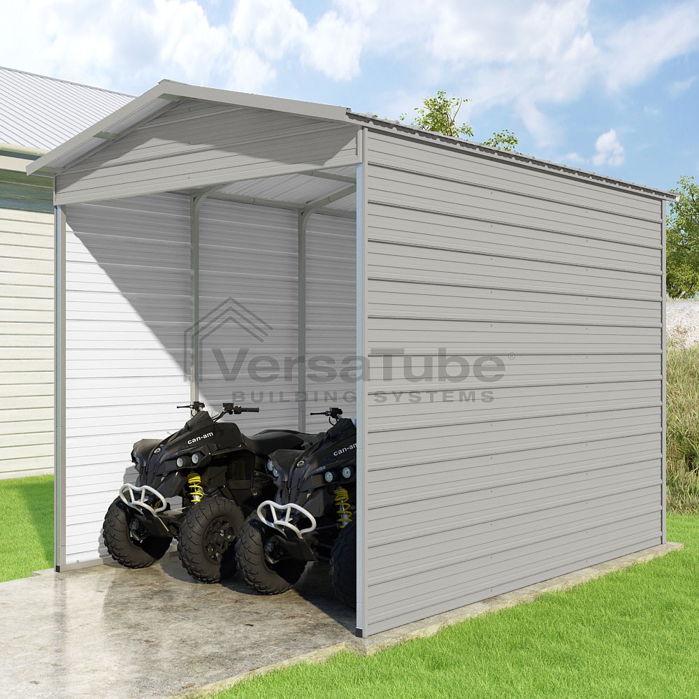 Pinnacle Series DIY carport kit features vertical sheet metal roof panels with ridge cap, gable and eave trim for an A-frame roof style and extended coverage on both ends.