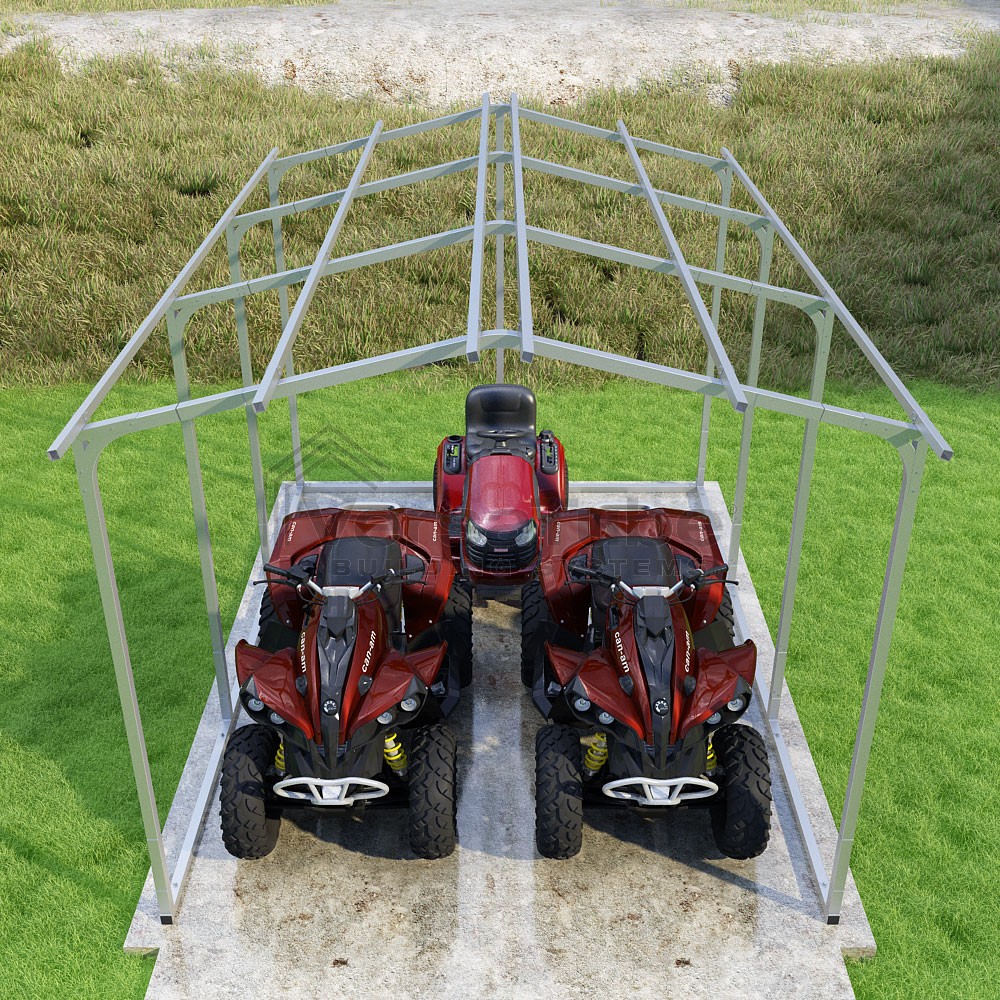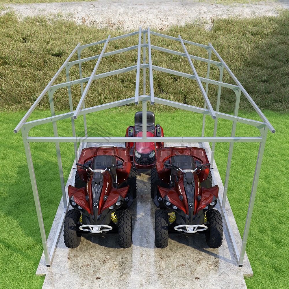 Pinnacle Series DIY carport frame kit includes roof purlins for applying sheet metal panels vertically (sold separately) in a traditional or common gable style manner.
