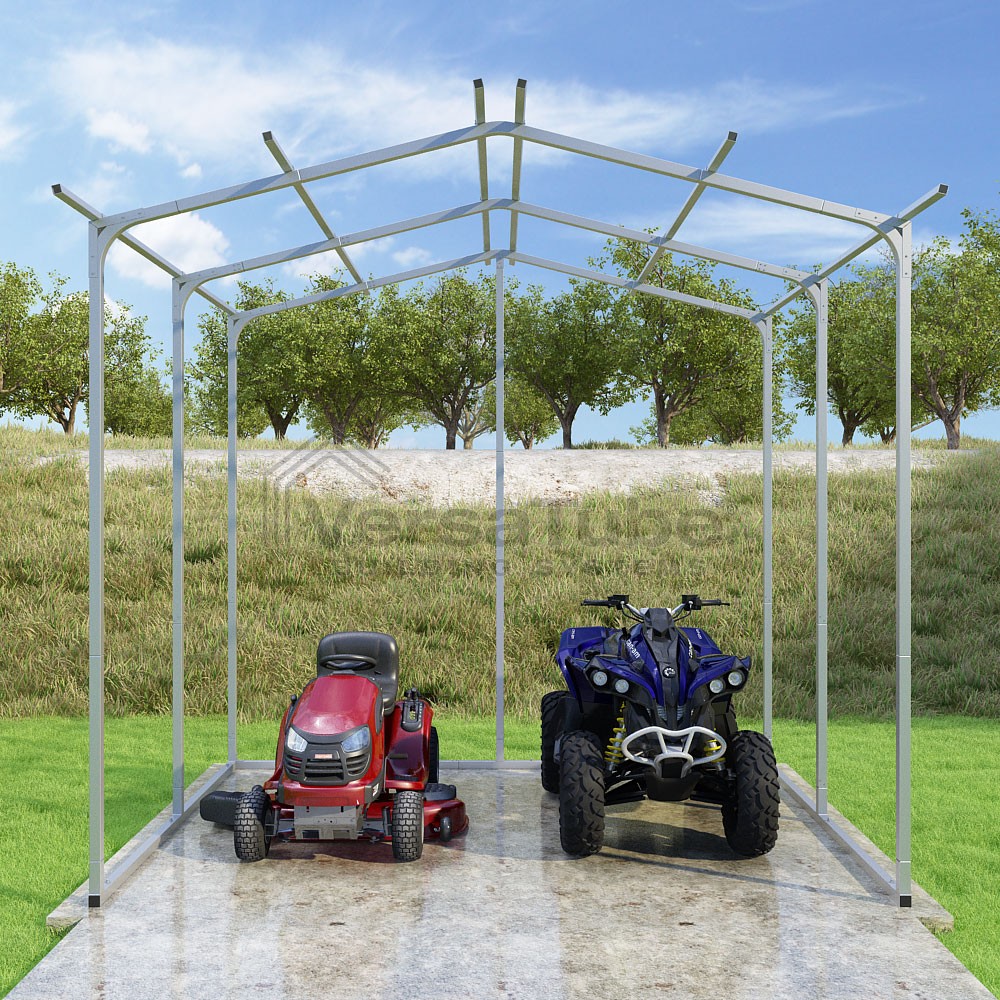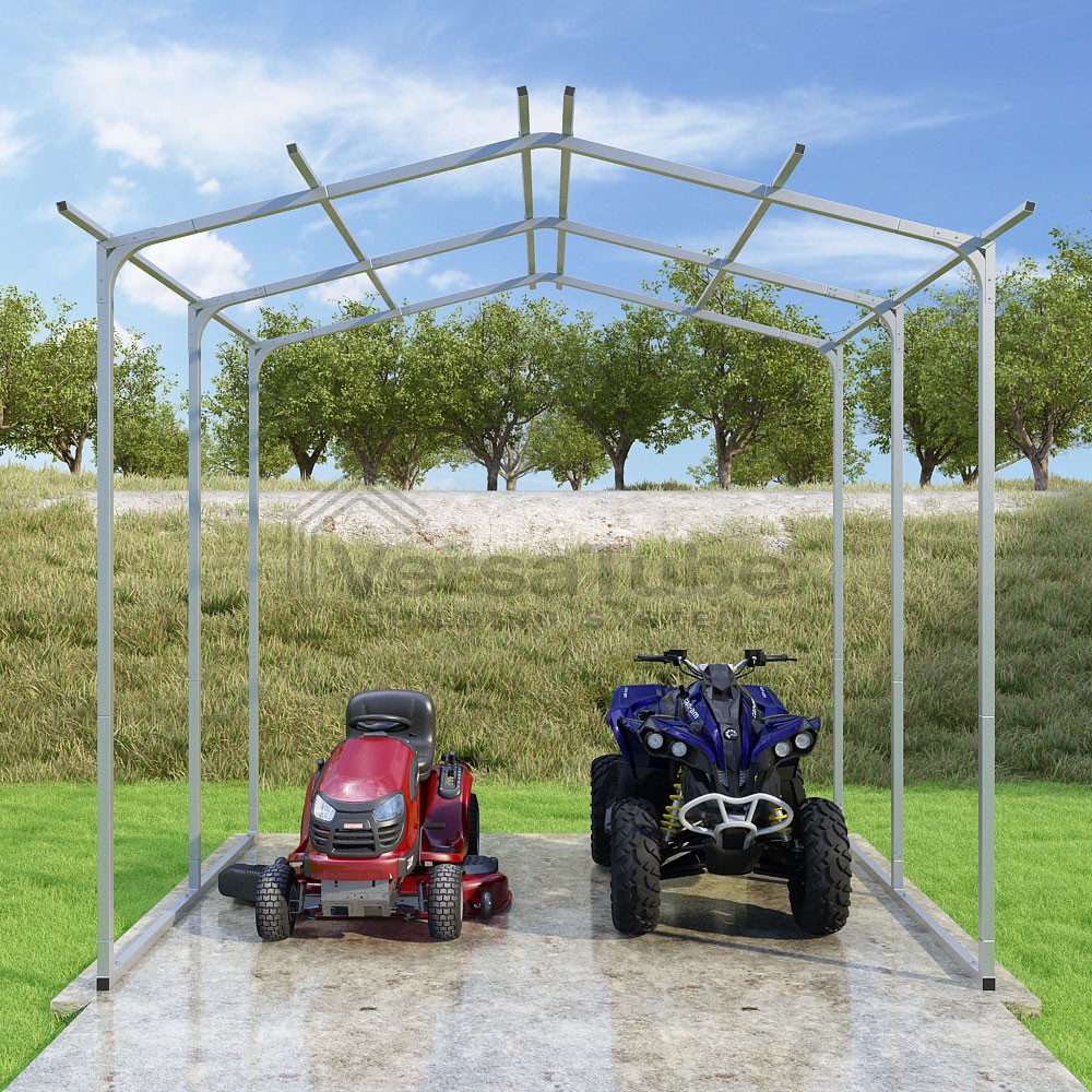 Pinnacle Series DIY carport frame kit includes roof purlins for applying sheet metal panels vertically (sold separately) in a traditional or common gable style manner.