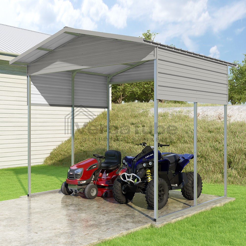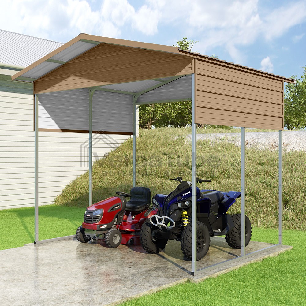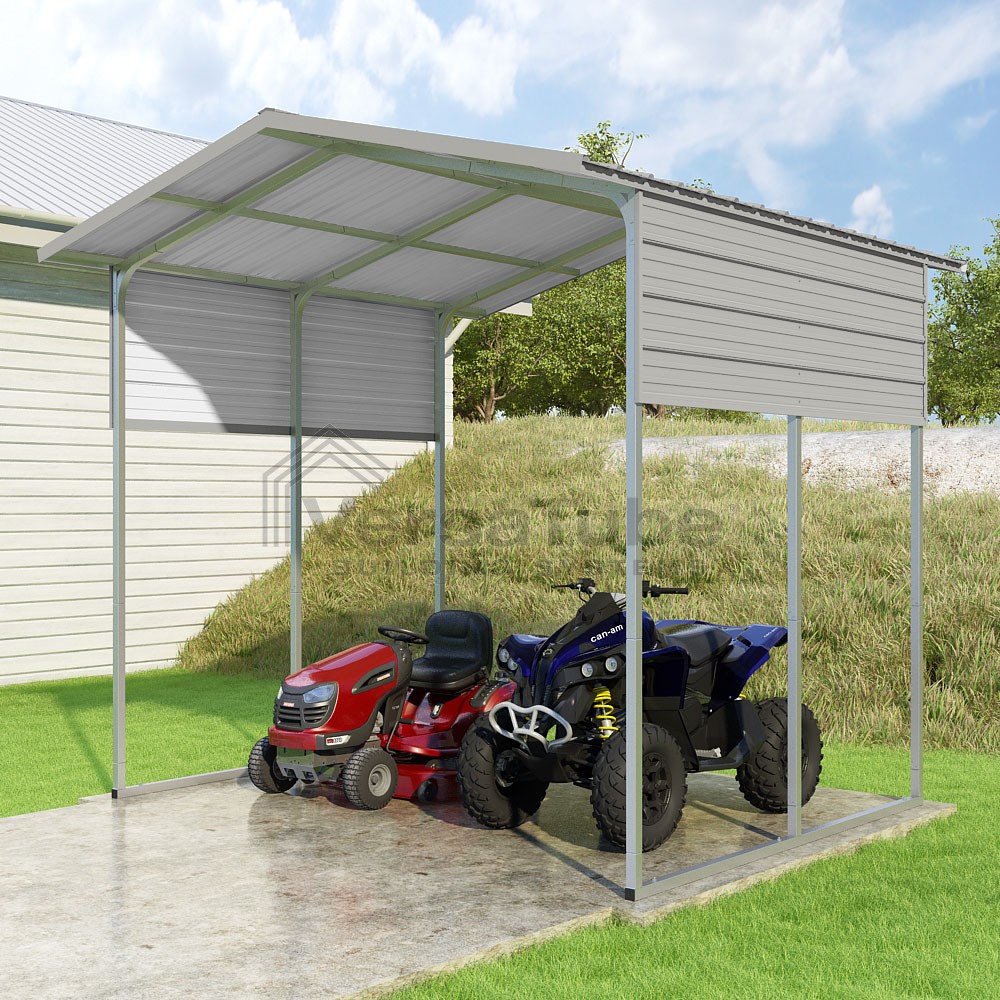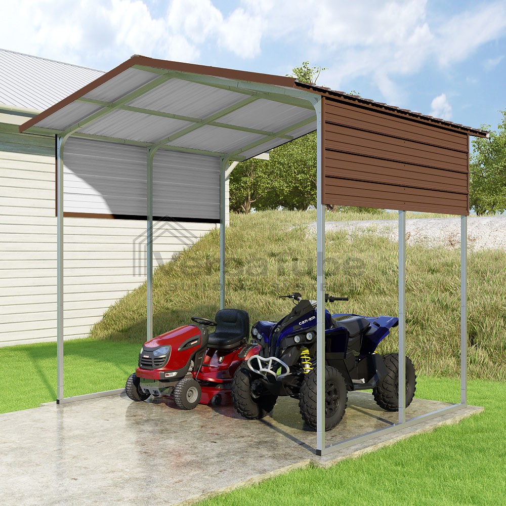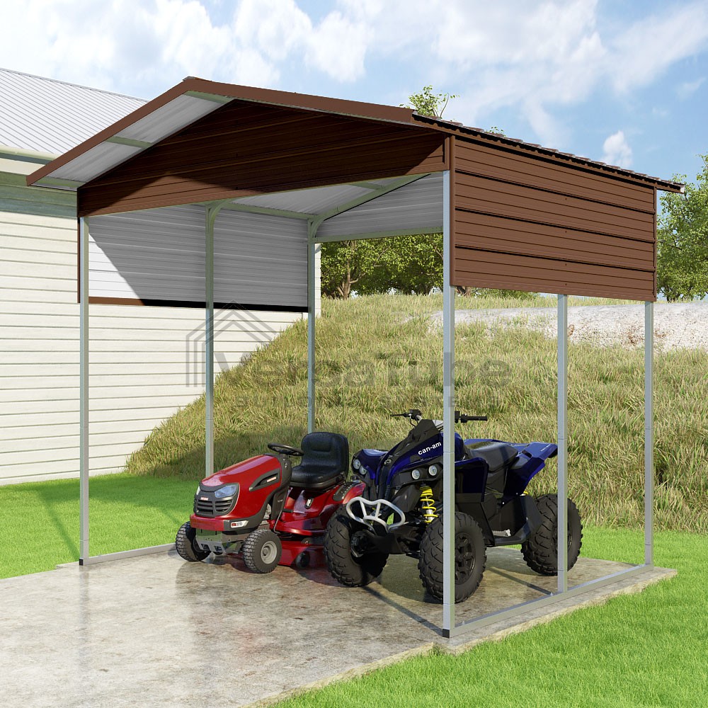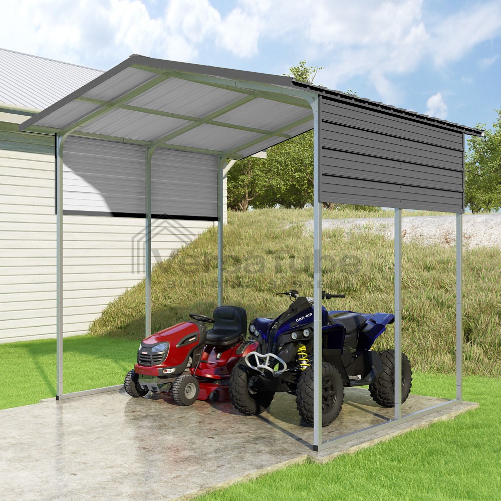 Pinnacle Series DIY carport kit features vertical sheet metal roof panels with ridge cap, gable and eave trim for an A-frame roof style and extended coverage on both ends.
