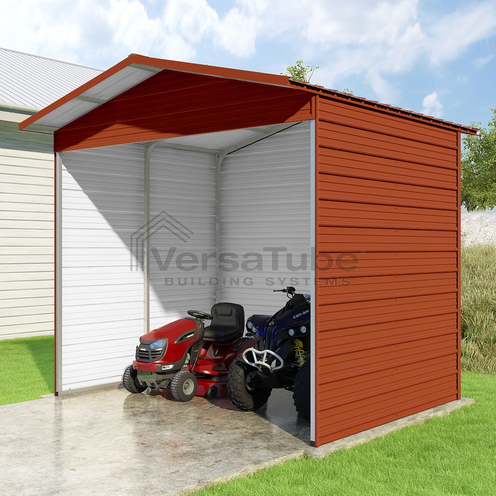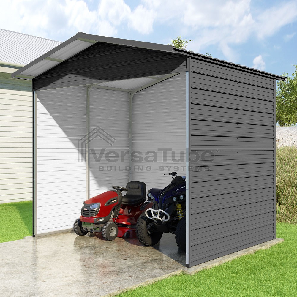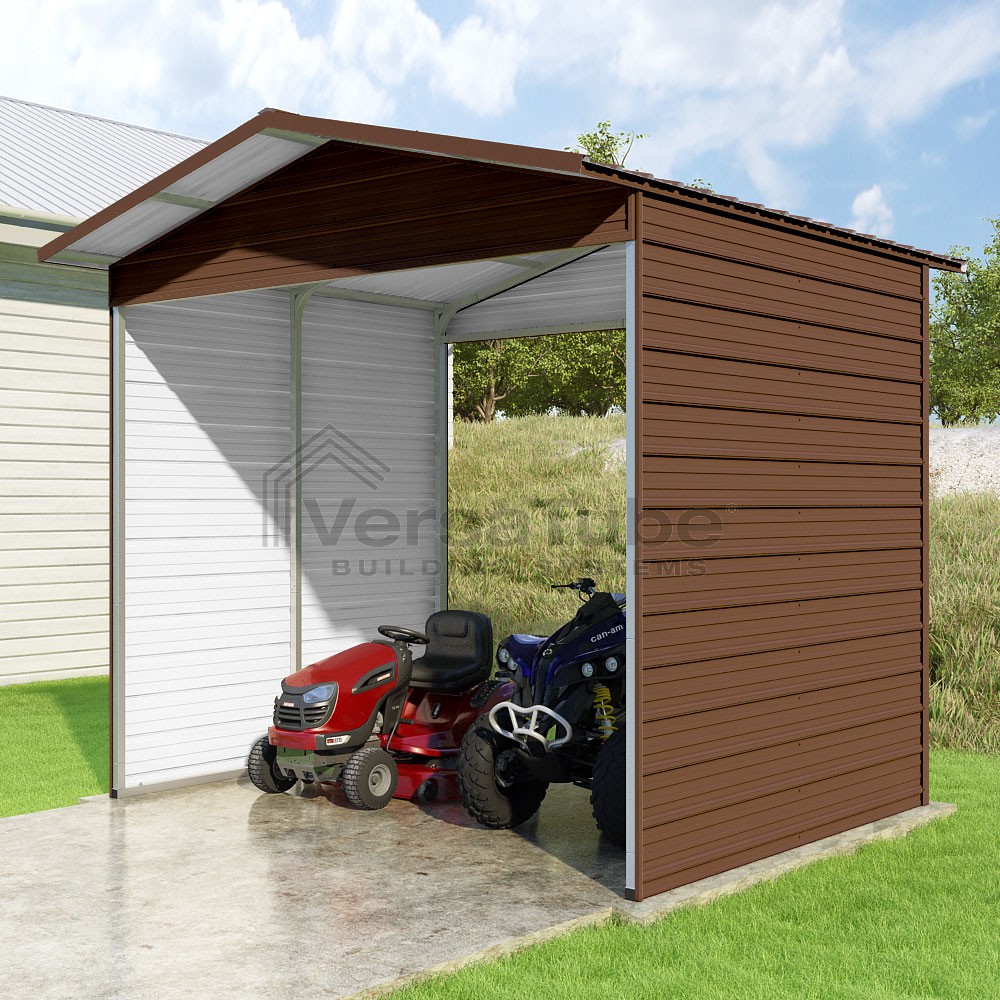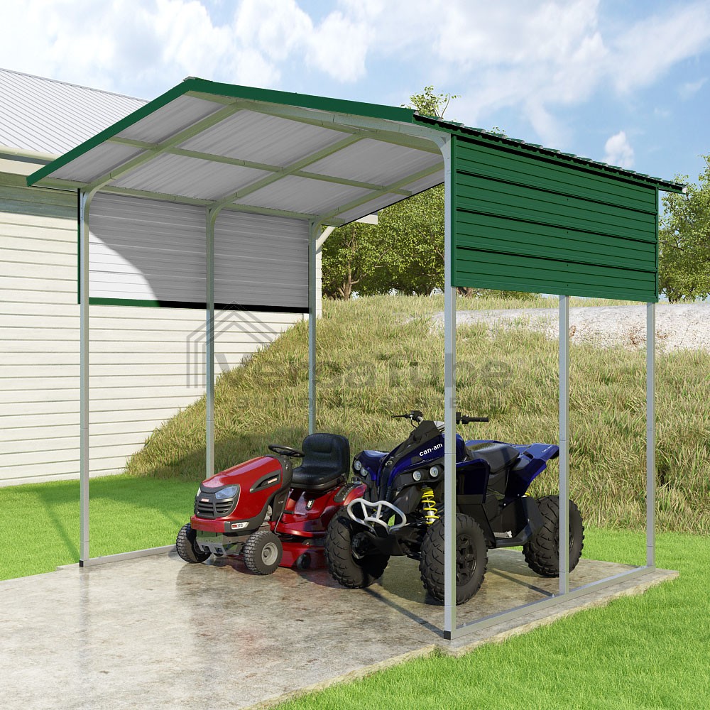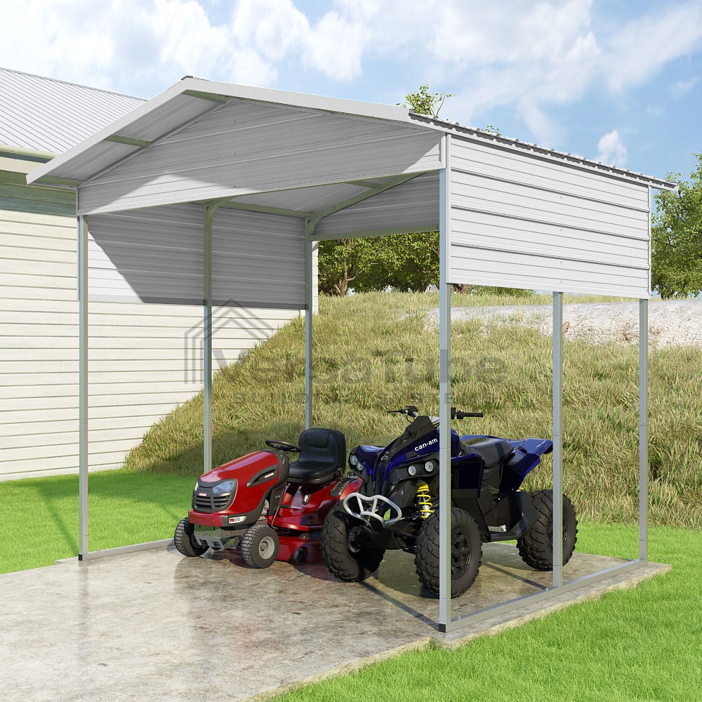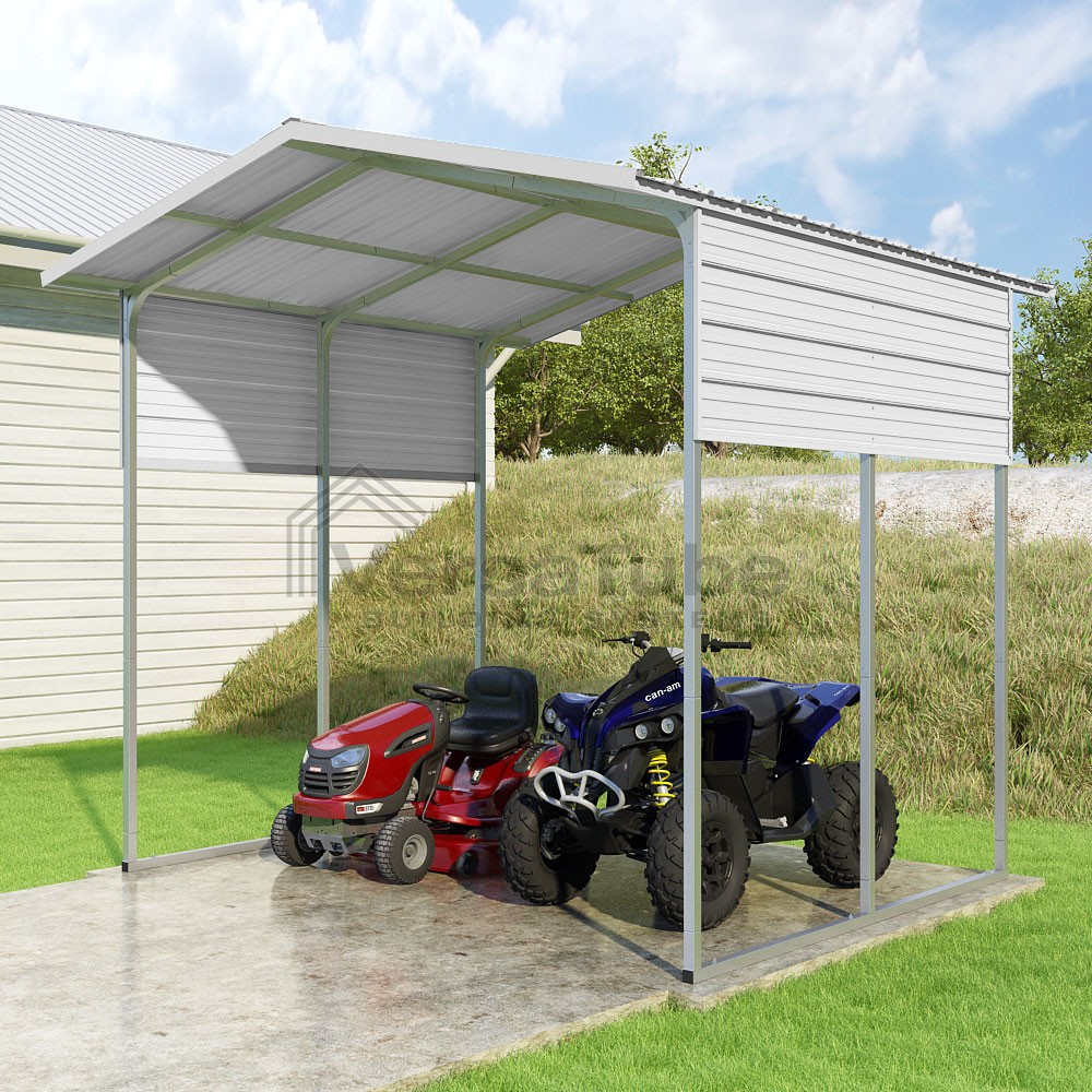Pinnacle Series DIY carport kit features vertical sheet metal roof panels with ridge cap, gable and eave trim for an A-frame roof style and extended coverage on both ends.