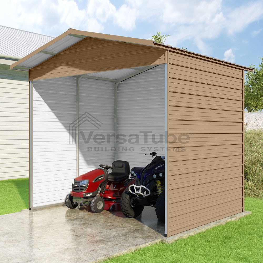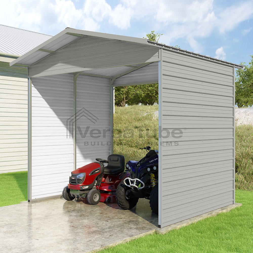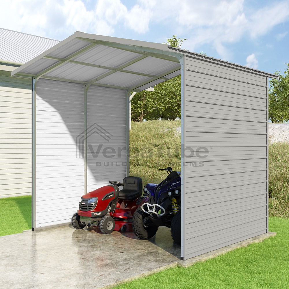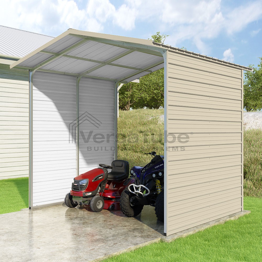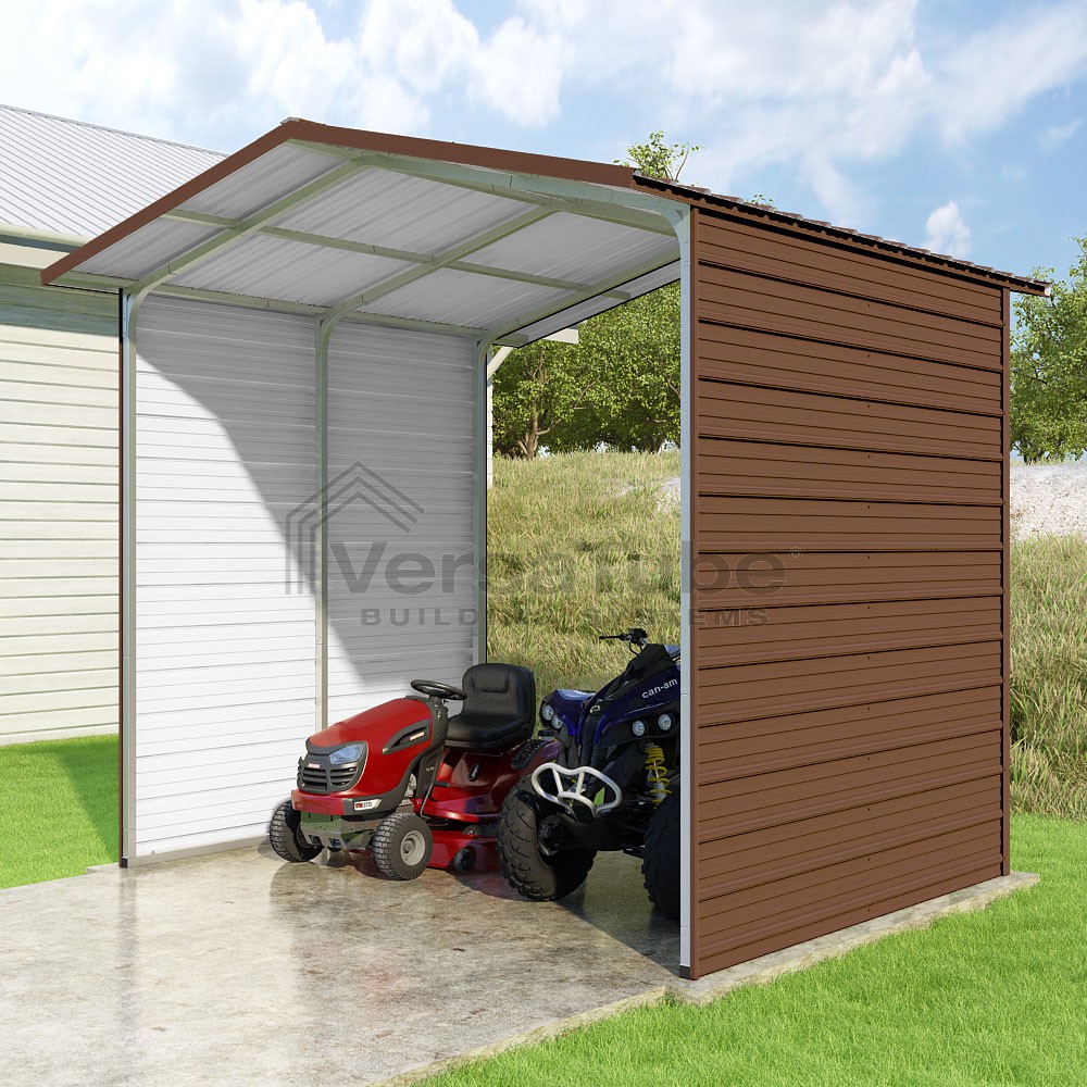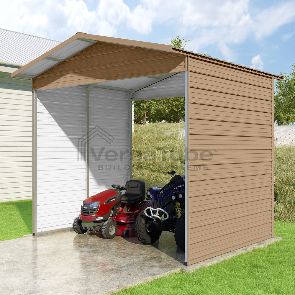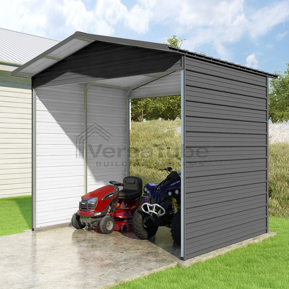 Pinnacle Series DIY carport kit features vertical sheet metal roof panels with ridge cap, gable and eave trim for an A-frame roof style and extended coverage on both ends.