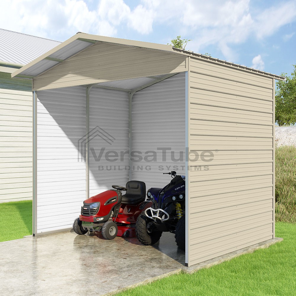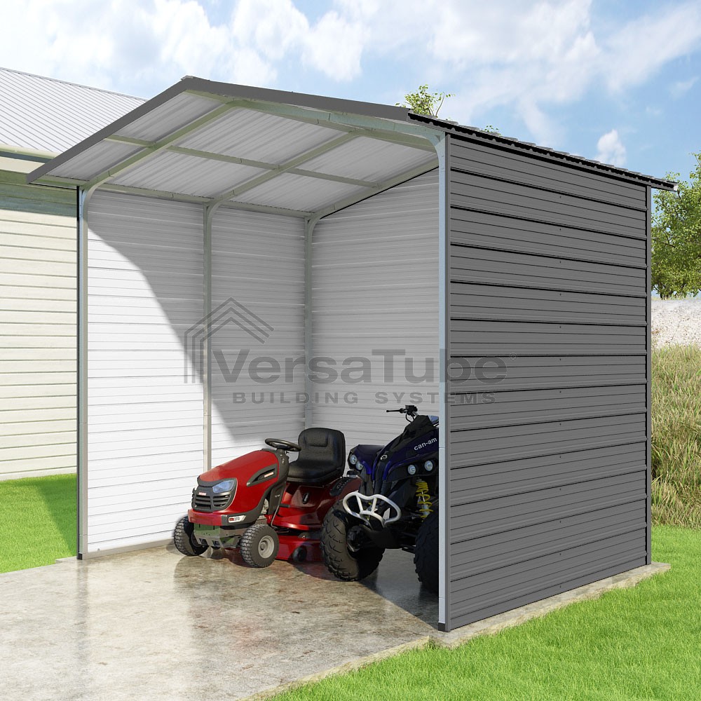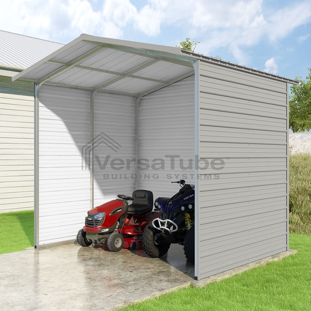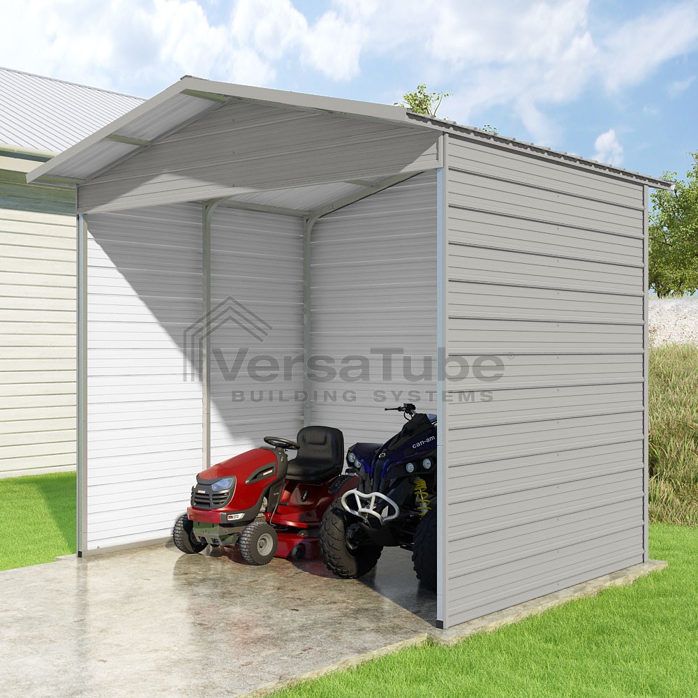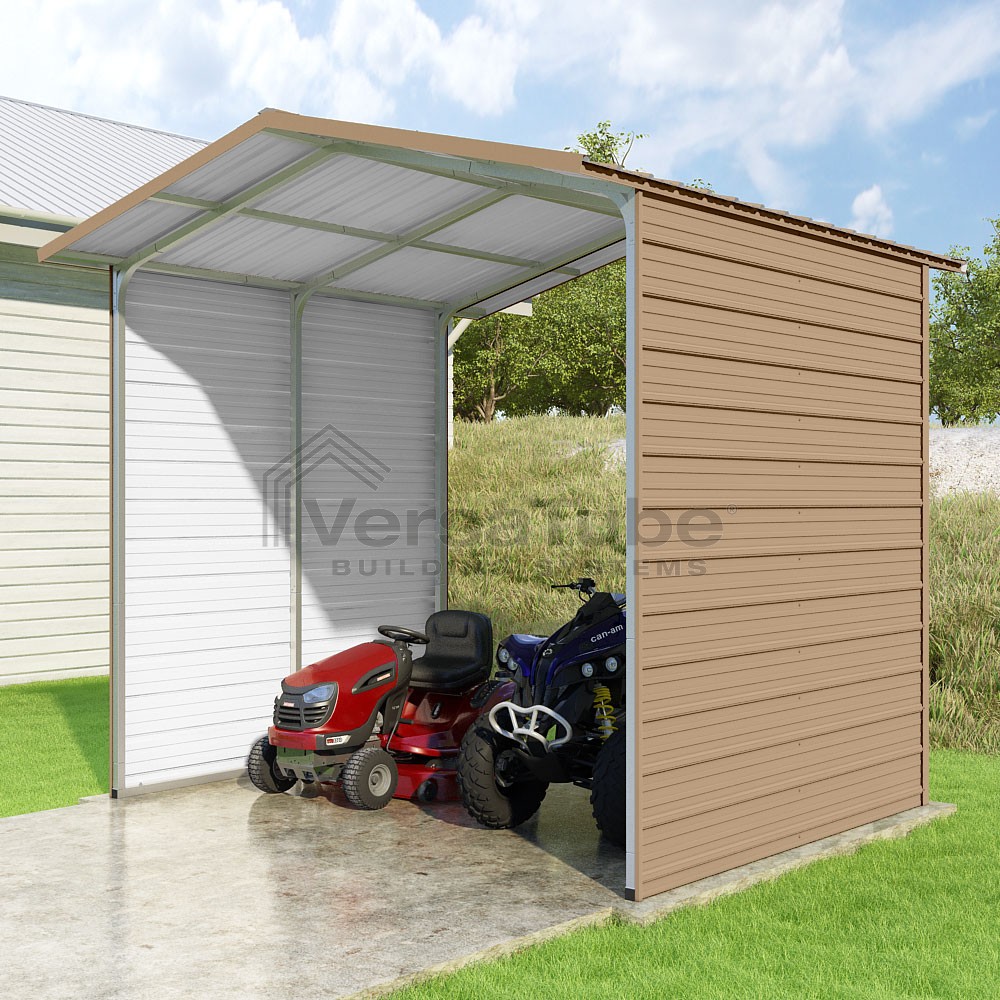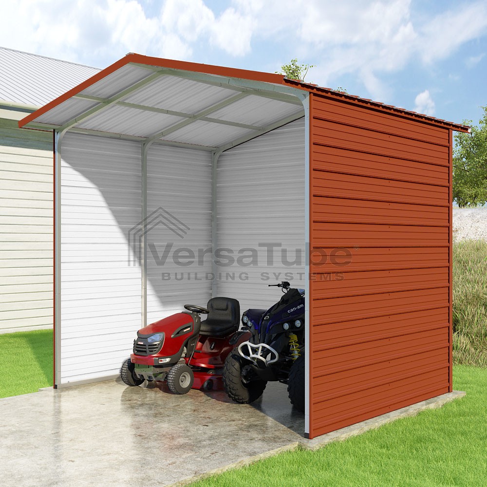 Pinnacle Series DIY carport kit features vertical sheet metal roof panels with ridge cap, gable and eave trim for an A-frame roof style and extended coverage on both ends.