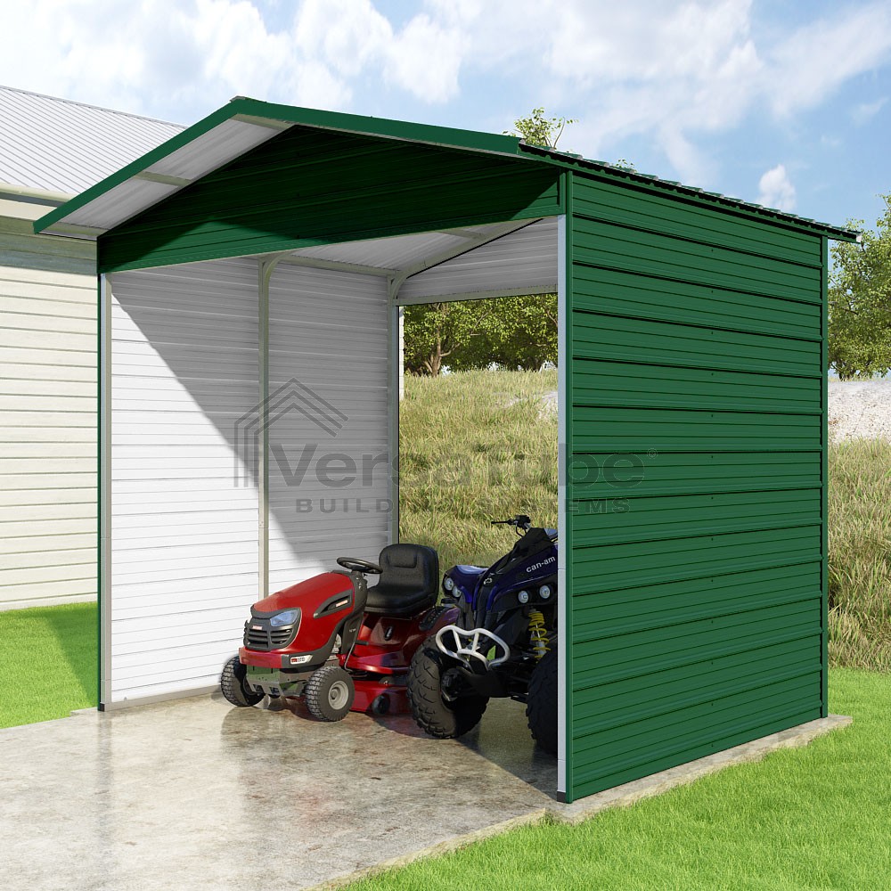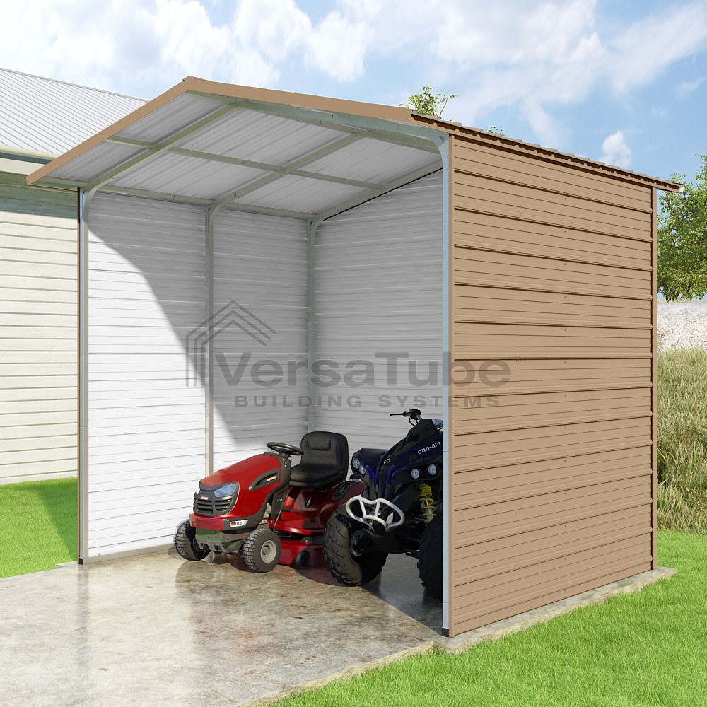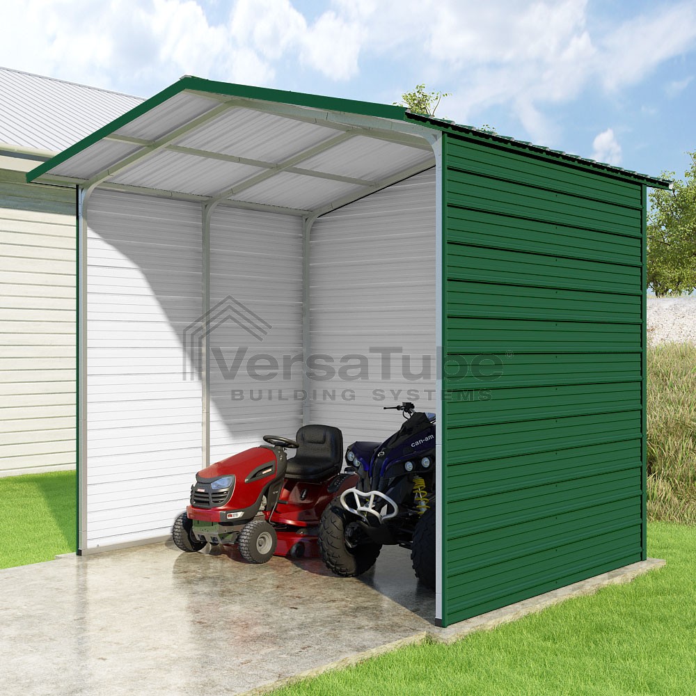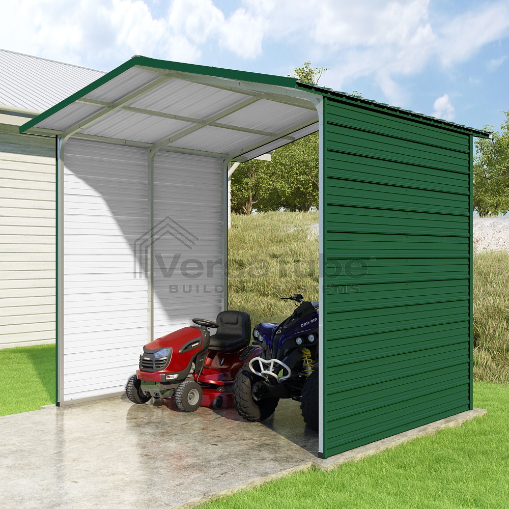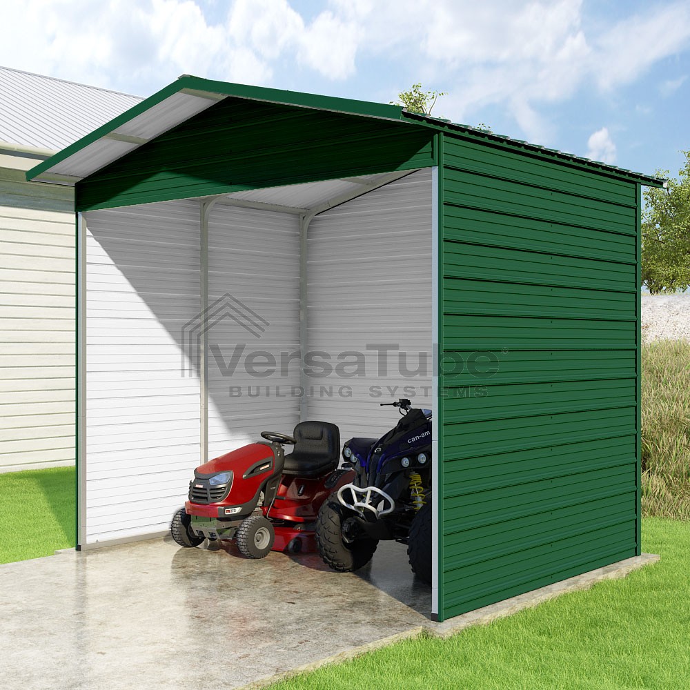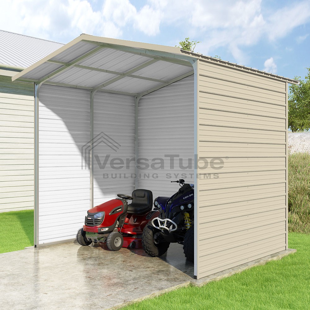 Pinnacle Series DIY carport kit features vertical sheet metal roof panels with ridge cap, gable and eave trim for an A-frame roof style and extended coverage on both ends.