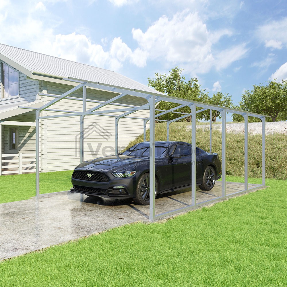 The Pinnacle design utilizes a vertical sheet metal roof application allowing for greater snow, rain, and debris run-off which is ideal for higher snow load areas. Adding a side kit run ensures structural performance in more extreme snow or high wind areas, as well, additional protection from elements entering from the sides. With the VersaTube Slip-Fit frame system, you can get your carport frame kit assembled in a single afternoon using common tools.