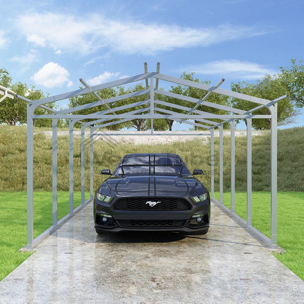 Pinnacle Series DIY carport frame kit includes roof purlins for applying sheet metal panels vertically (sold separately) in a traditional or common gable style manner.