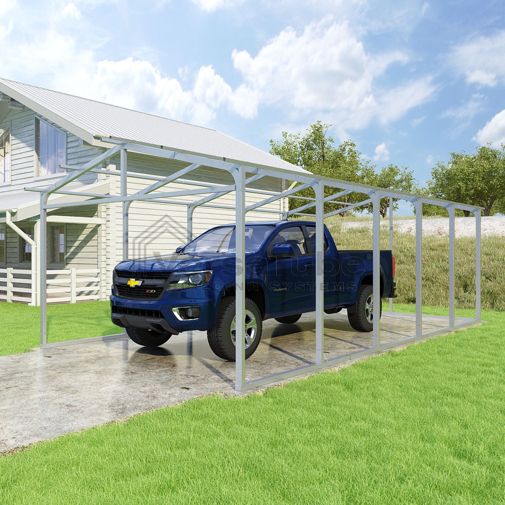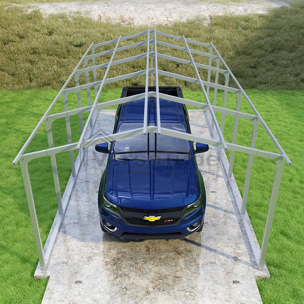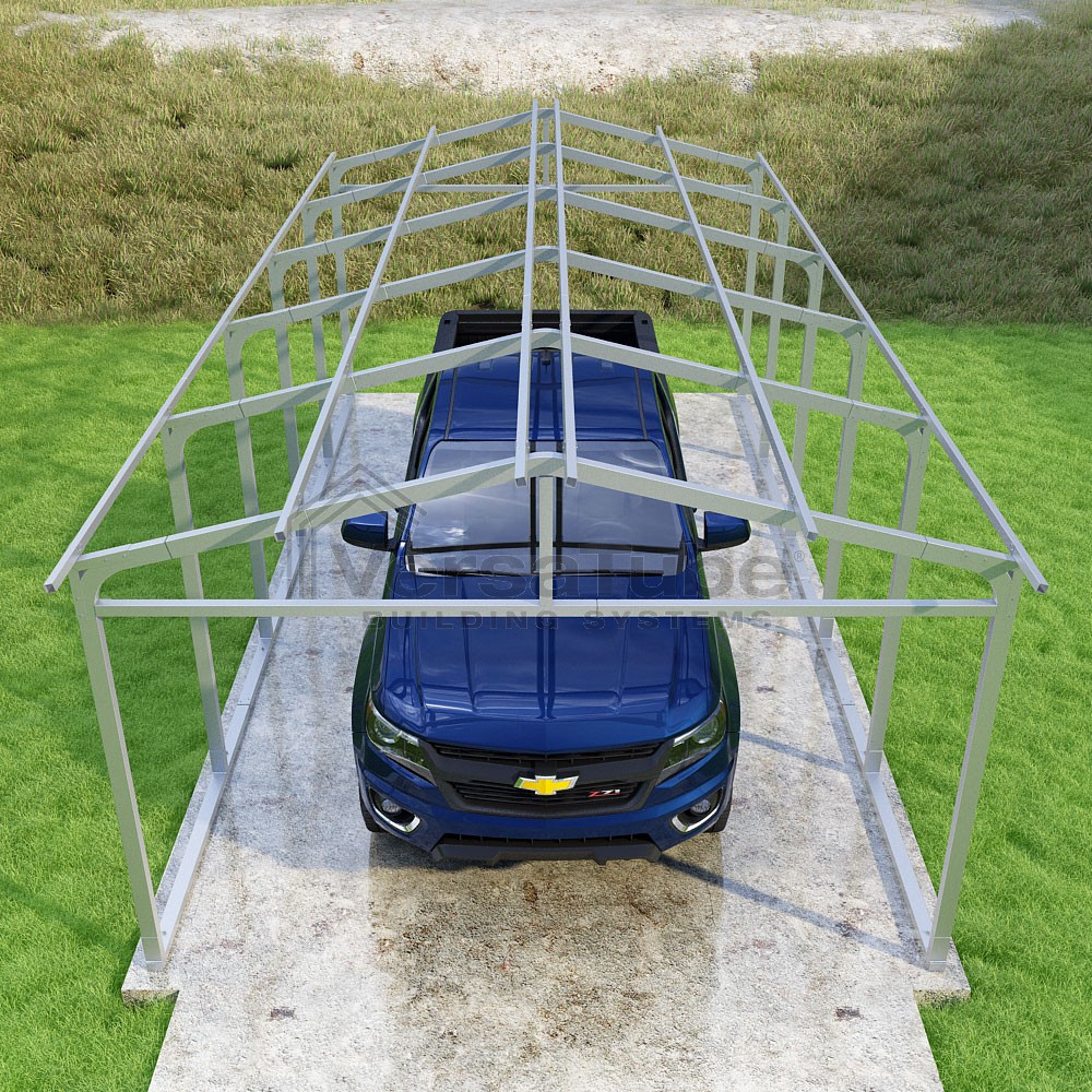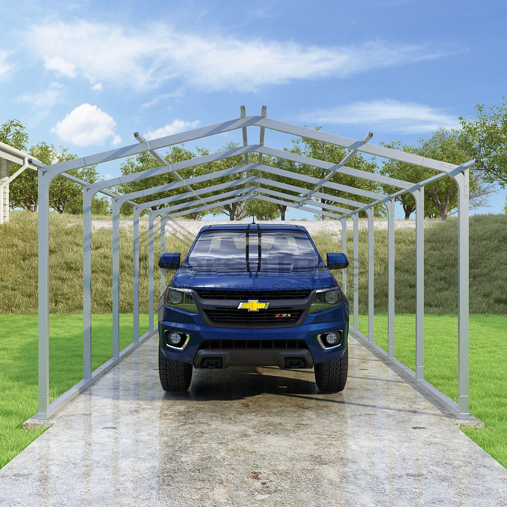 Pinnacle Series DIY carport frame kit includes roof purlins for applying sheet metal panels vertically (sold separately) in a traditional or common gable style manner.