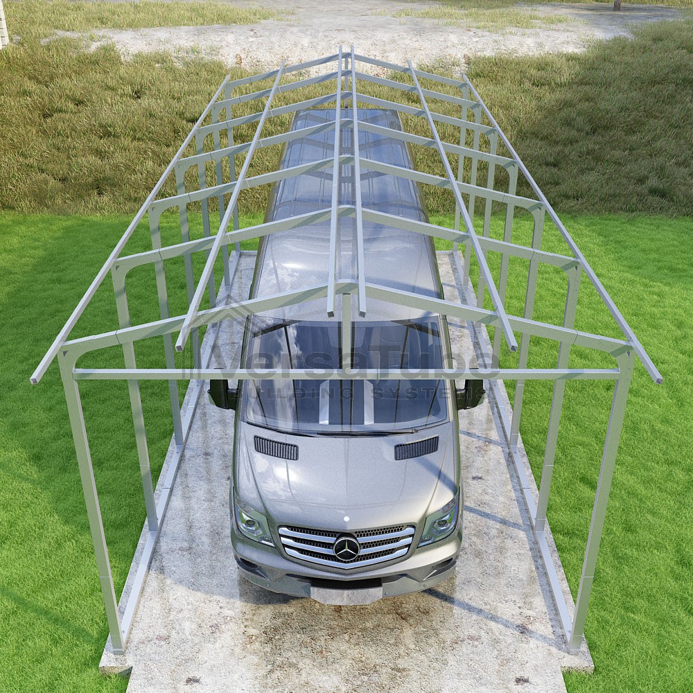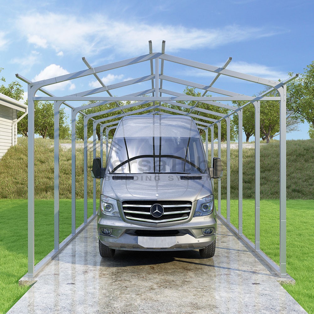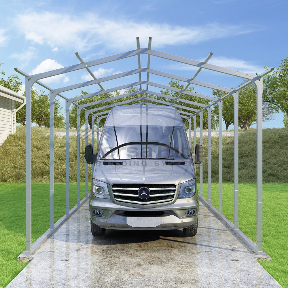 Pinnacle Series DIY carport frame kit includes roof purlins for applying sheet metal panels vertically (sold separately) in a traditional or common gable style manner.