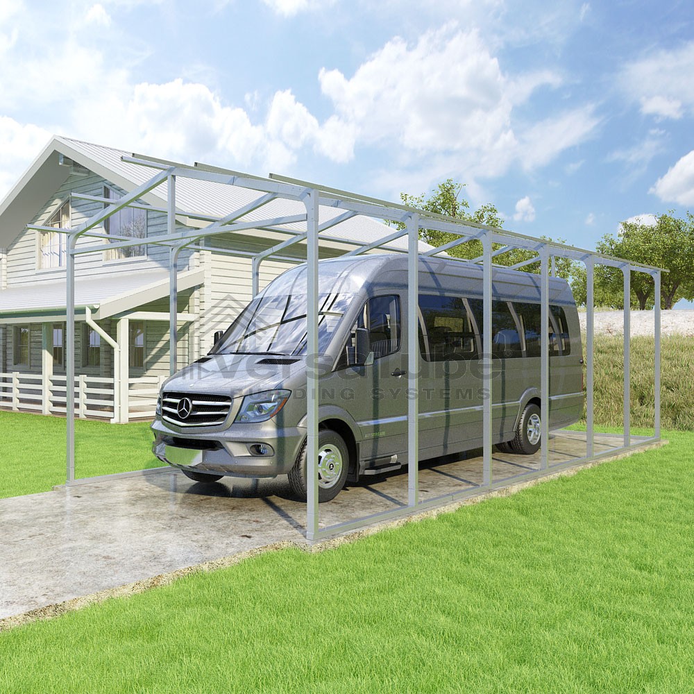 The Pinnacle design utilizes a vertical sheet metal roof application allowing for greater snow, rain, and debris run-off which is ideal for higher snow load areas. Adding a side kit run ensures structural performance in more extreme snow or high wind areas, as well, additional protection from elements entering from the sides. With the VersaTube Slip-Fit frame system, you can get your carport frame kit assembled in a single afternoon using common tools.