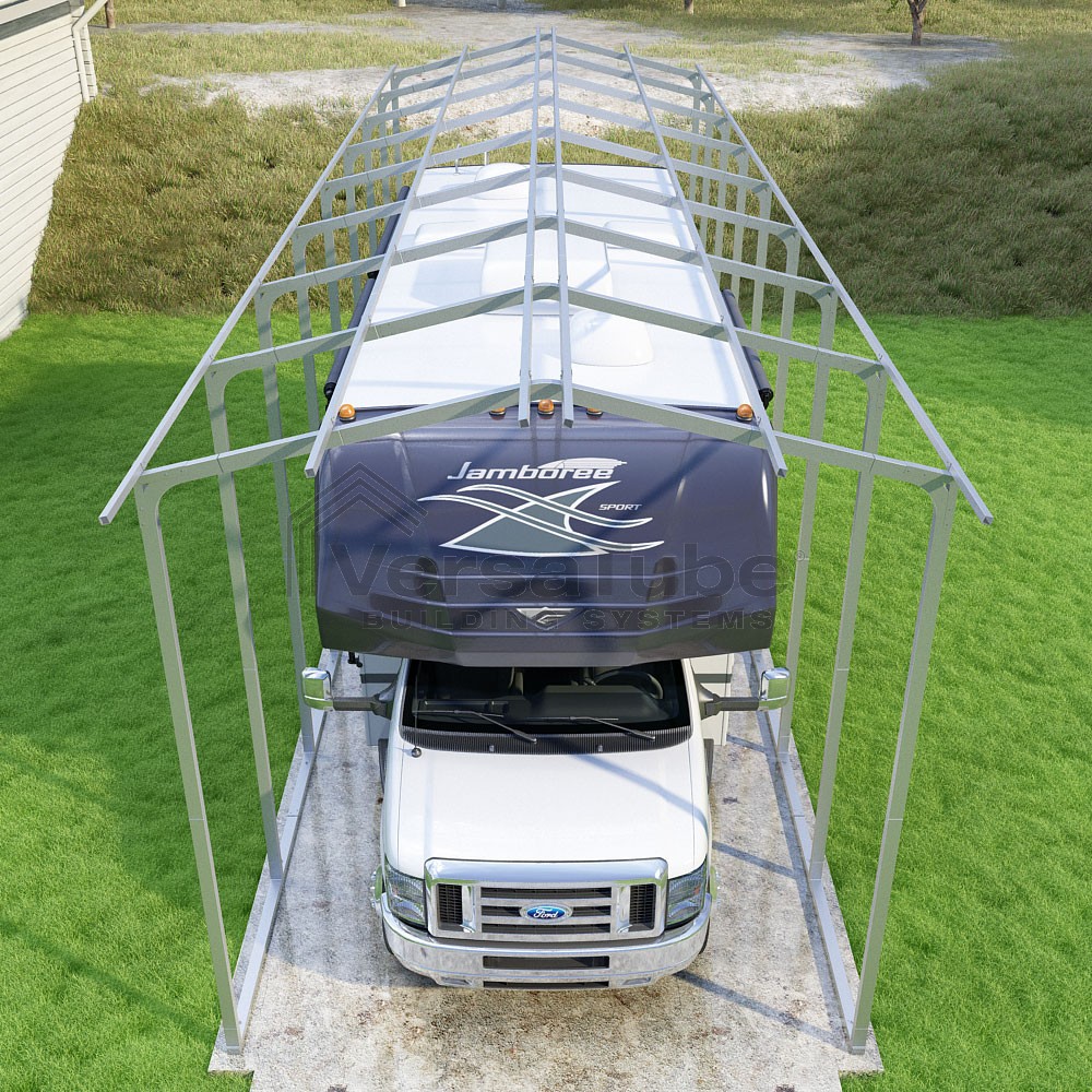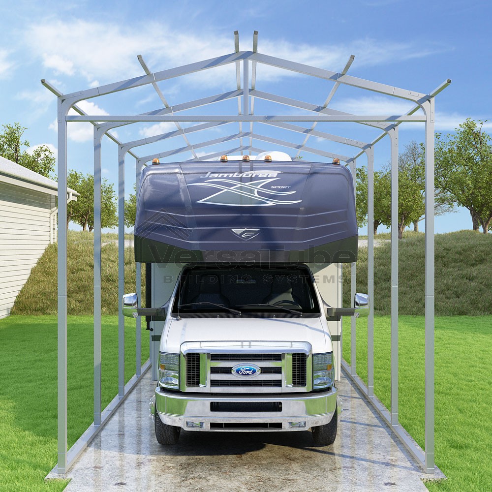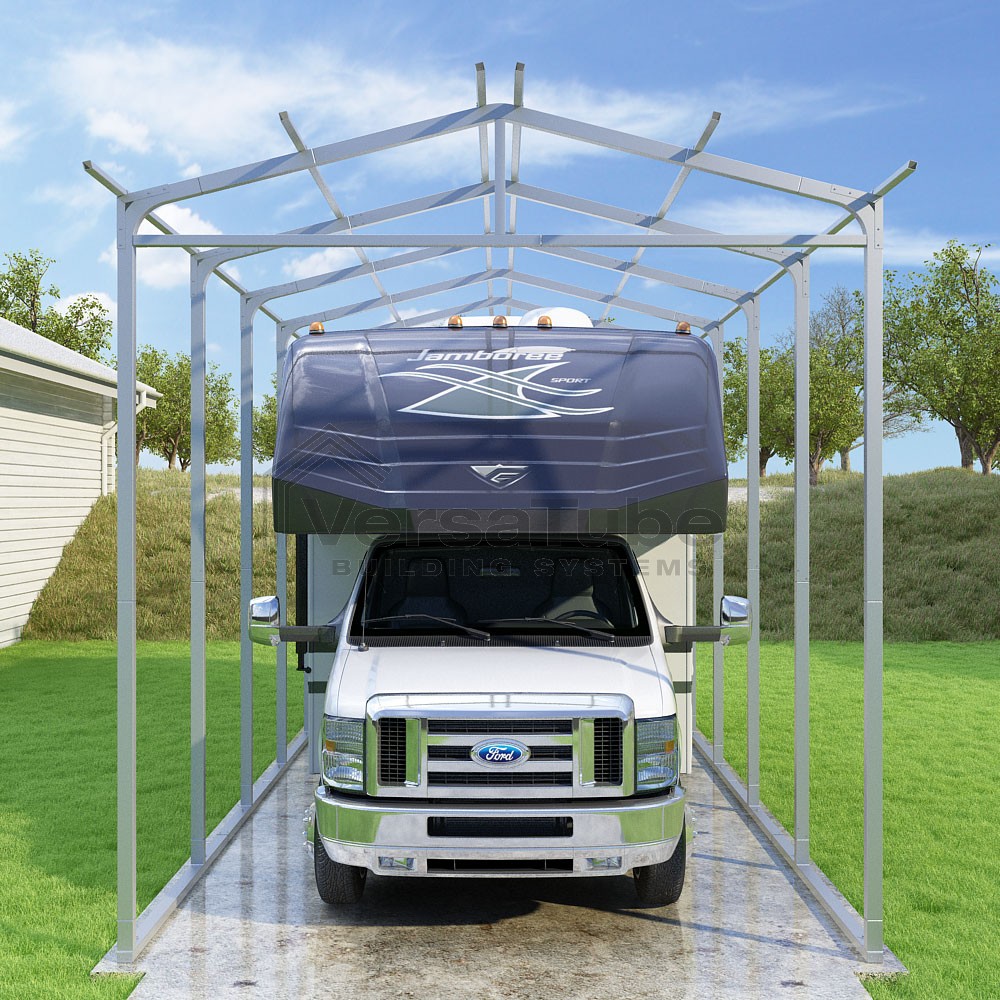 The Pinnacle design utilizes a vertical sheet metal roof application allowing for greater snow, rain, and debris run-off which is ideal for higher snow load areas. Adding a side kit run ensures structural performance in more extreme snow or high wind areas, as well, additional protection from elements entering from the sides. With the VersaTube Slip-Fit frame system, you can get your carport frame kit assembled in a single afternoon using common tools.