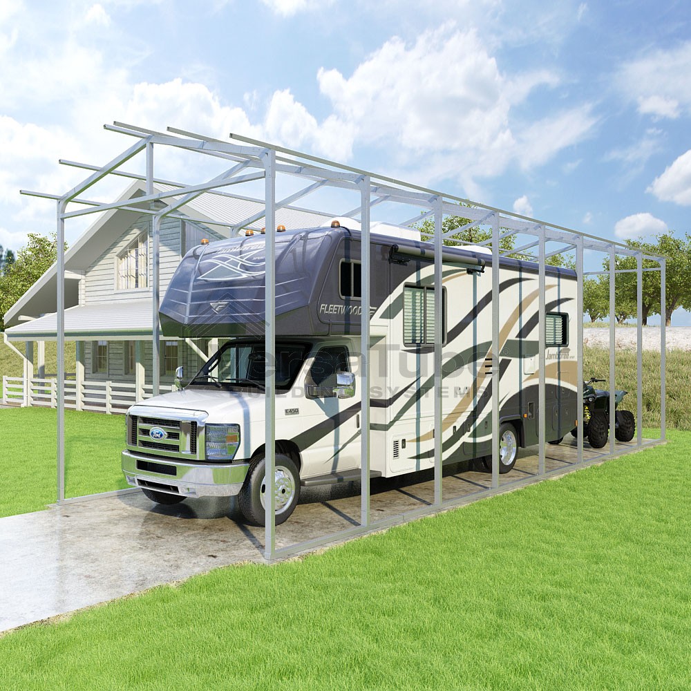 Pinnacle Series DIY carport frame kit includes roof purlins for applying sheet metal panels vertically (sold separately) in a traditional or common gable style manner.