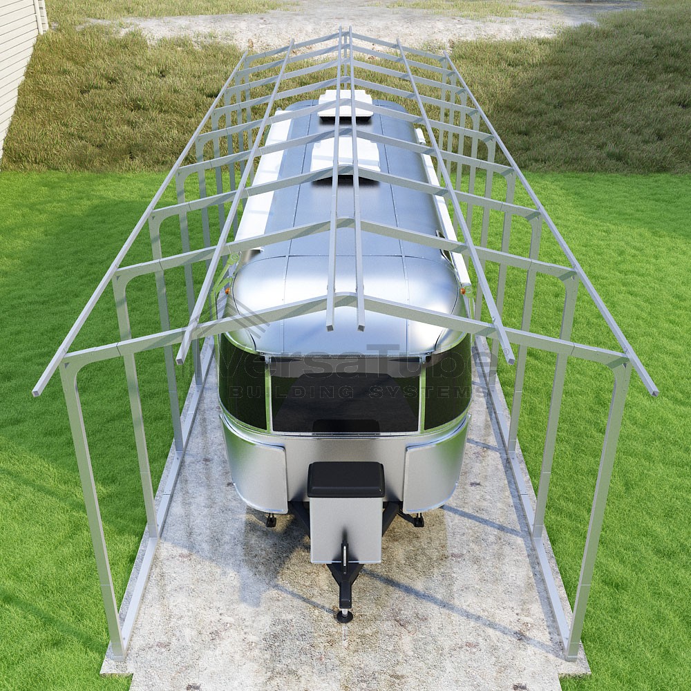 Pinnacle Series DIY carport frame kit includes roof purlins for applying sheet metal panels vertically (sold separately) in a traditional or common gable style manner.