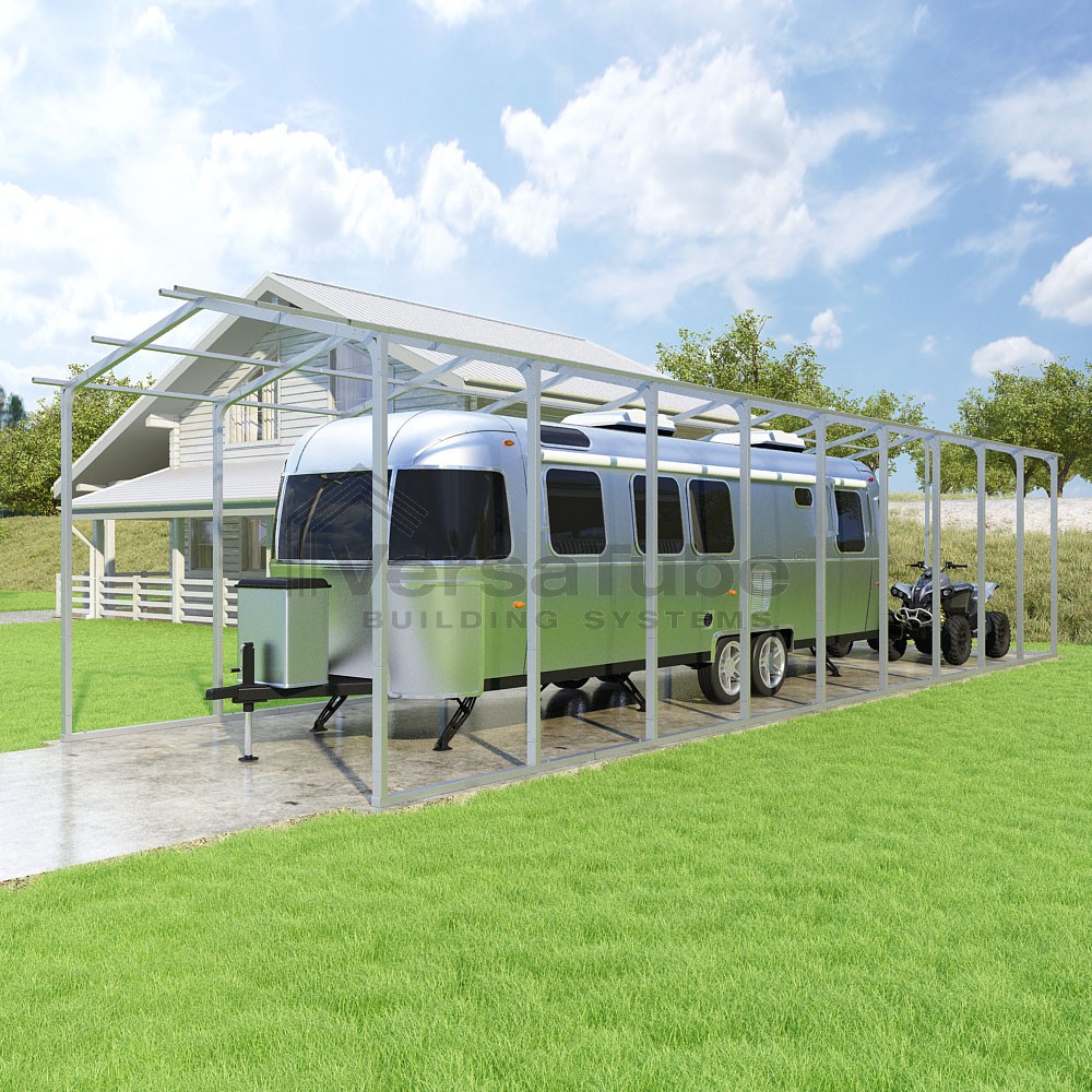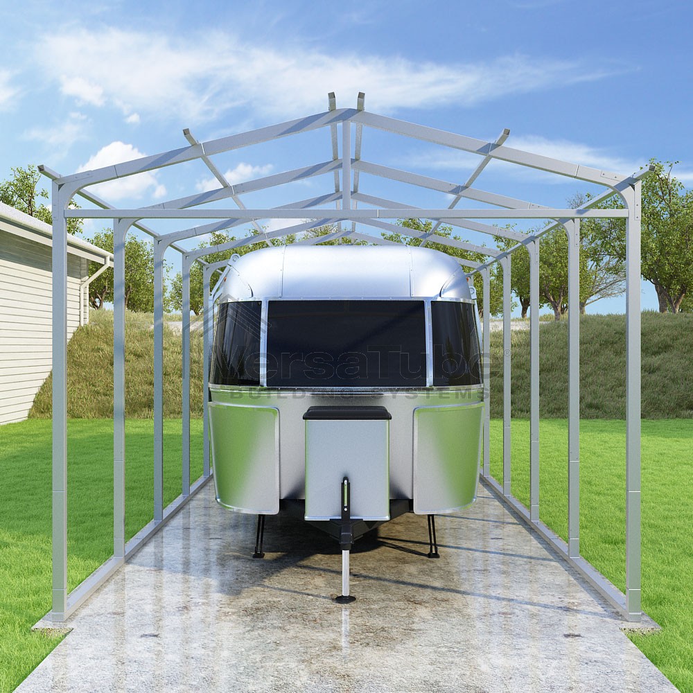 The Pinnacle design utilizes a vertical sheet metal roof application allowing for greater snow, rain, and debris run-off which is ideal for higher snow load areas. Adding a side kit run ensures structural performance in more extreme snow or high wind areas, as well, additional protection from elements entering from the sides. With the VersaTube Slip-Fit frame system, you can get your carport frame kit assembled in a single afternoon using common tools.