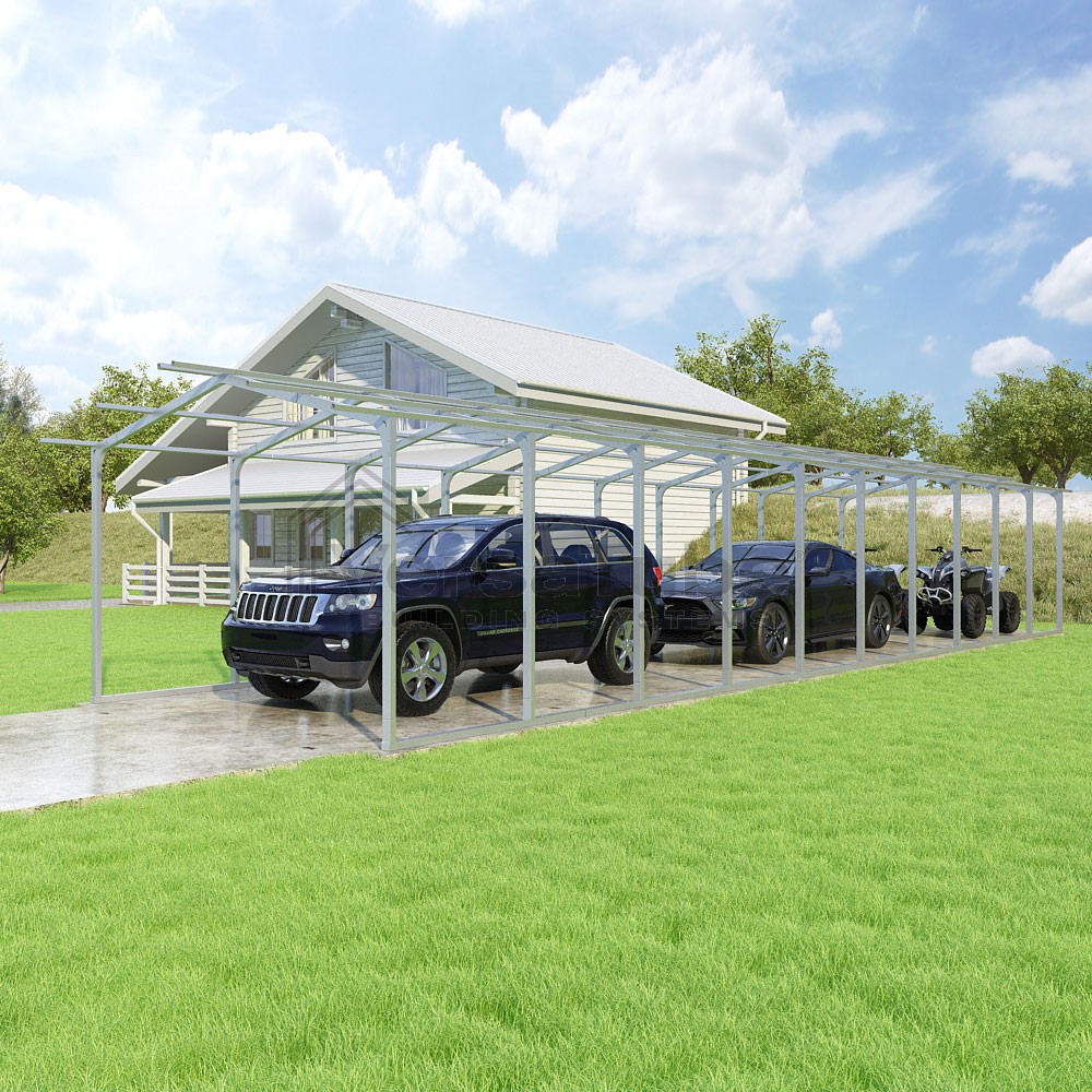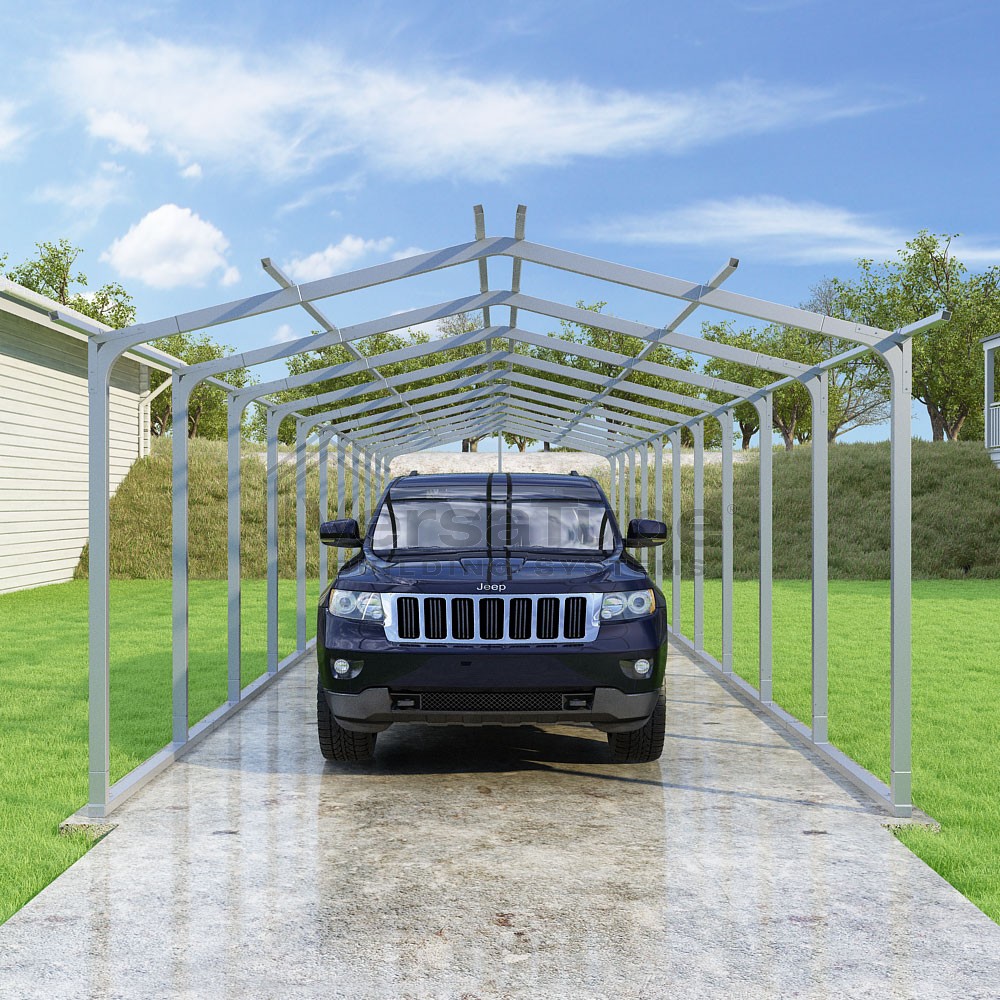 Pinnacle Series DIY carport frame kit includes roof purlins for applying sheet metal panels vertically (sold separately) in a traditional or common gable style manner.