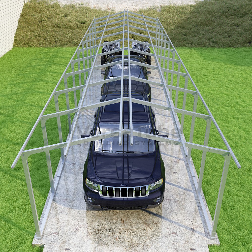The Pinnacle design utilizes a vertical sheet metal roof application allowing for greater snow, rain, and debris run-off which is ideal for higher snow load areas. Adding a side kit run ensures structural performance in more extreme snow or high wind areas, as well, additional protection from elements entering from the sides. With the VersaTube Slip-Fit frame system, you can get your carport frame kit assembled in a single afternoon using common tools.