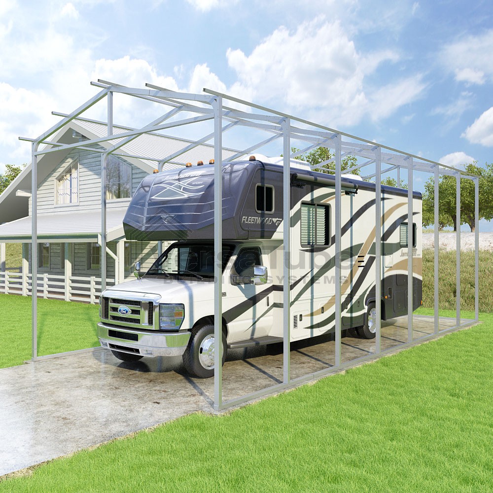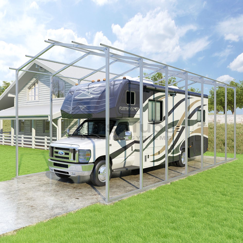 The Pinnacle design utilizes a vertical sheet metal roof application allowing for greater snow, rain, and debris run-off which is ideal for higher snow load areas. Adding a side kit run ensures structural performance in more extreme snow or high wind areas, as well, additional protection from elements entering from the sides. With the VersaTube Slip-Fit frame system, you can get your carport frame kit assembled in a single afternoon using common tools.