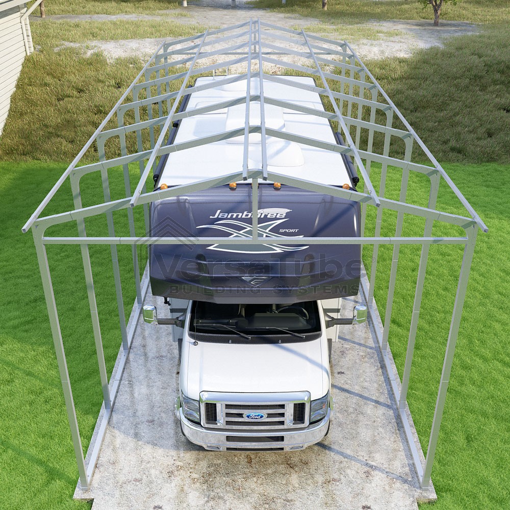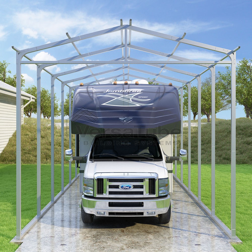 Pinnacle Series DIY carport frame kit includes roof purlins for applying sheet metal panels vertically (sold separately) in a traditional or common gable style manner.