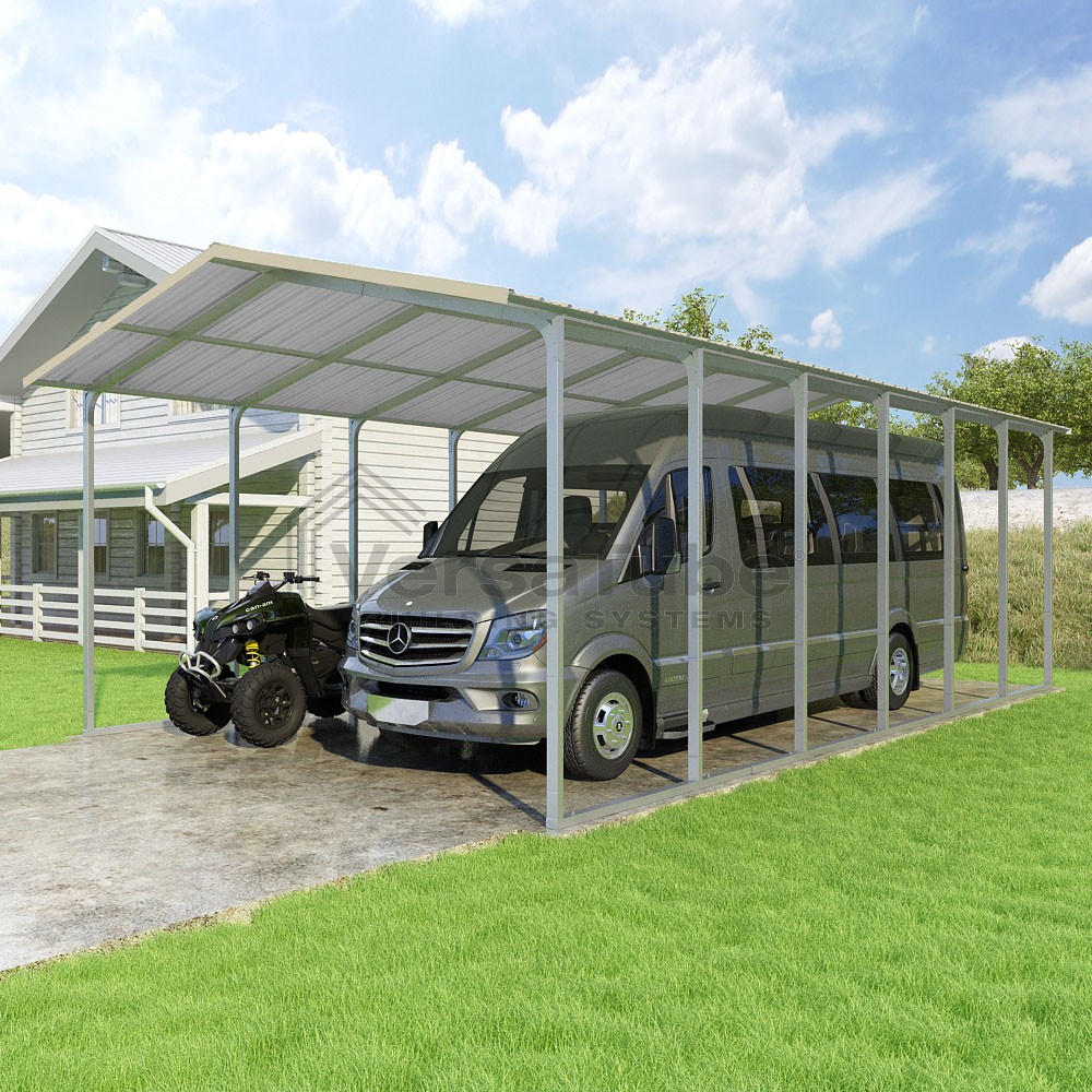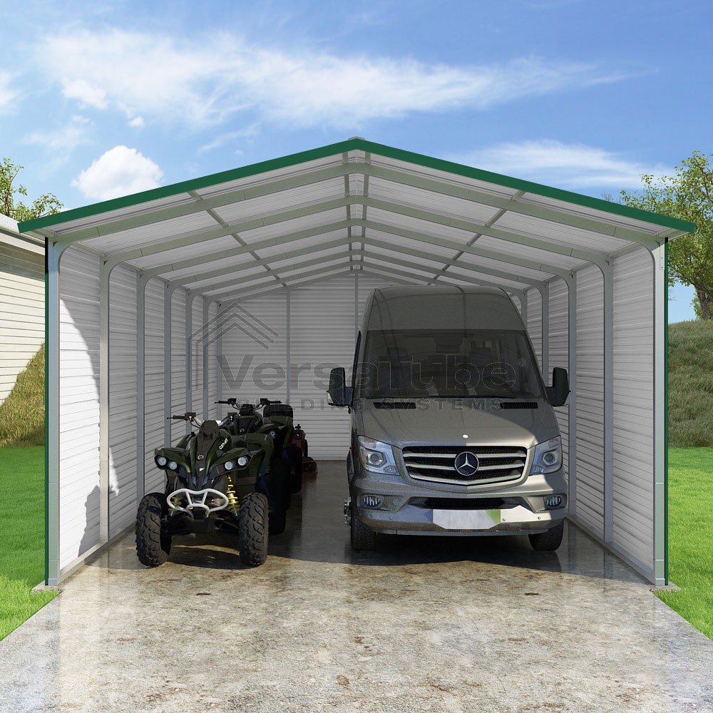 The Pinnacle design is favored by many who want both an A-frame roof style and vertically applied roof panels that allow greater snow, rain and debris run-off - ideal for higher snow load areas. And with the VersaTube Slip-Fit frame system, you can get your carport kit with roof assembled in a single afternoon using common tools.