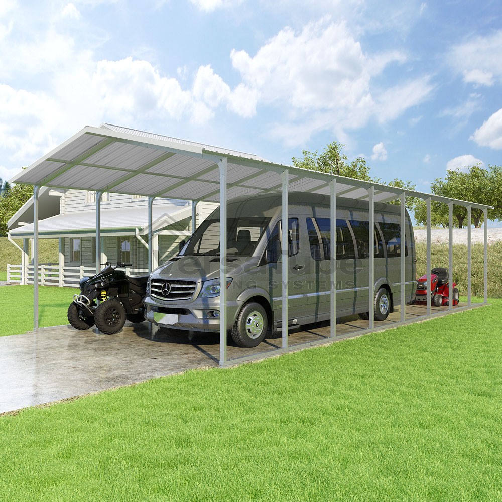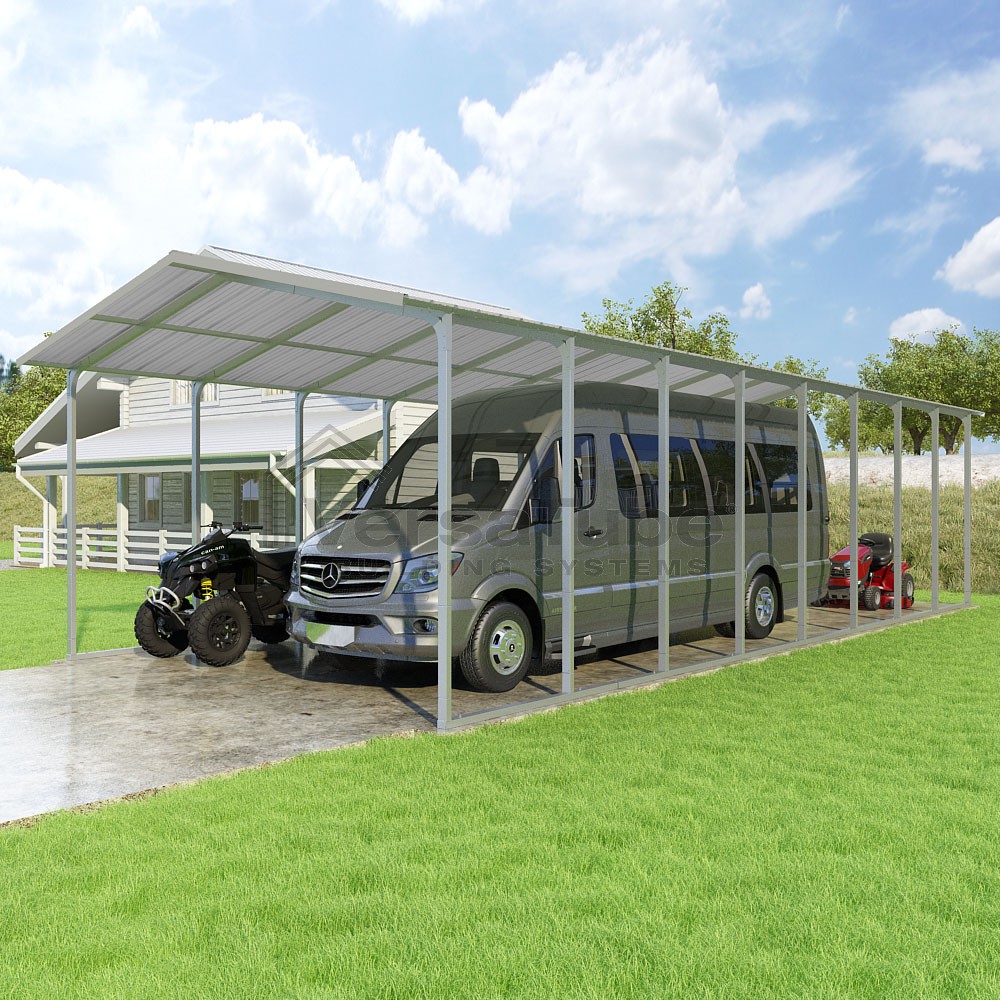 The Pinnacle design is favored by many who want both an A-frame roof style and vertically applied roof panels that allow greater snow, rain and debris run-off - ideal for higher snow load areas. And with the VersaTube Slip-Fit frame system, you can get your carport kit with roof assembled in a single afternoon using common tools.