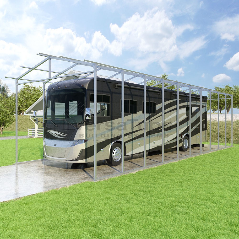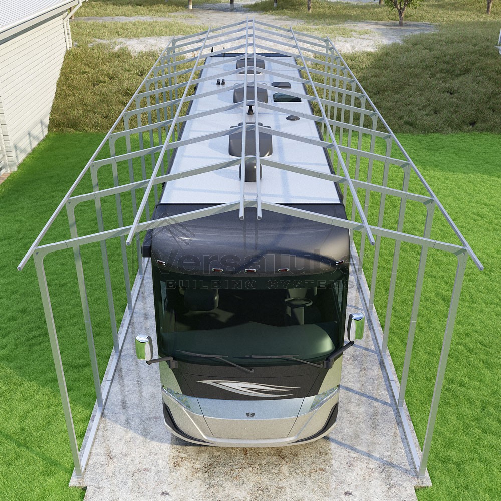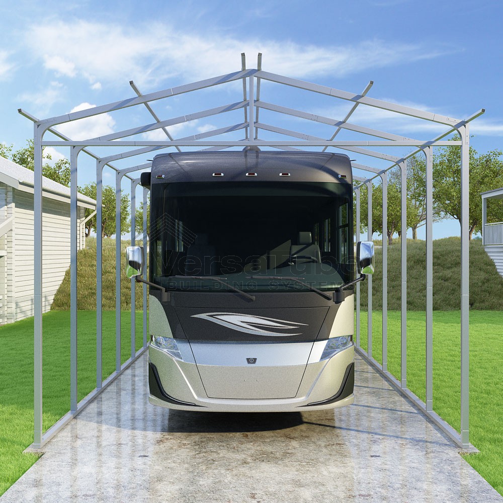 Pinnacle Series DIY carport frame kit includes roof purlins for applying sheet metal panels vertically (sold separately) in a traditional or common gable style manner.