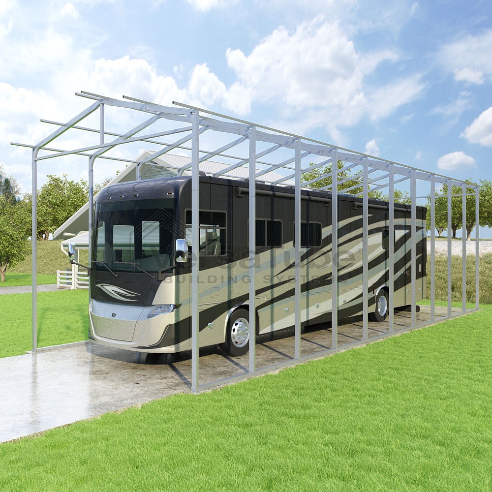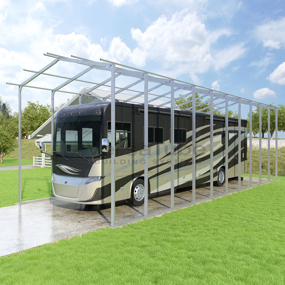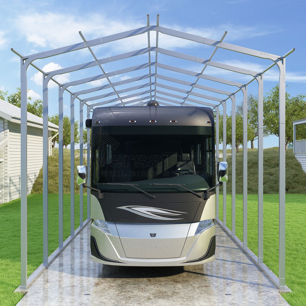 Pinnacle Series DIY carport frame kit includes roof purlins for applying sheet metal panels vertically (sold separately) in a traditional or common gable style manner.