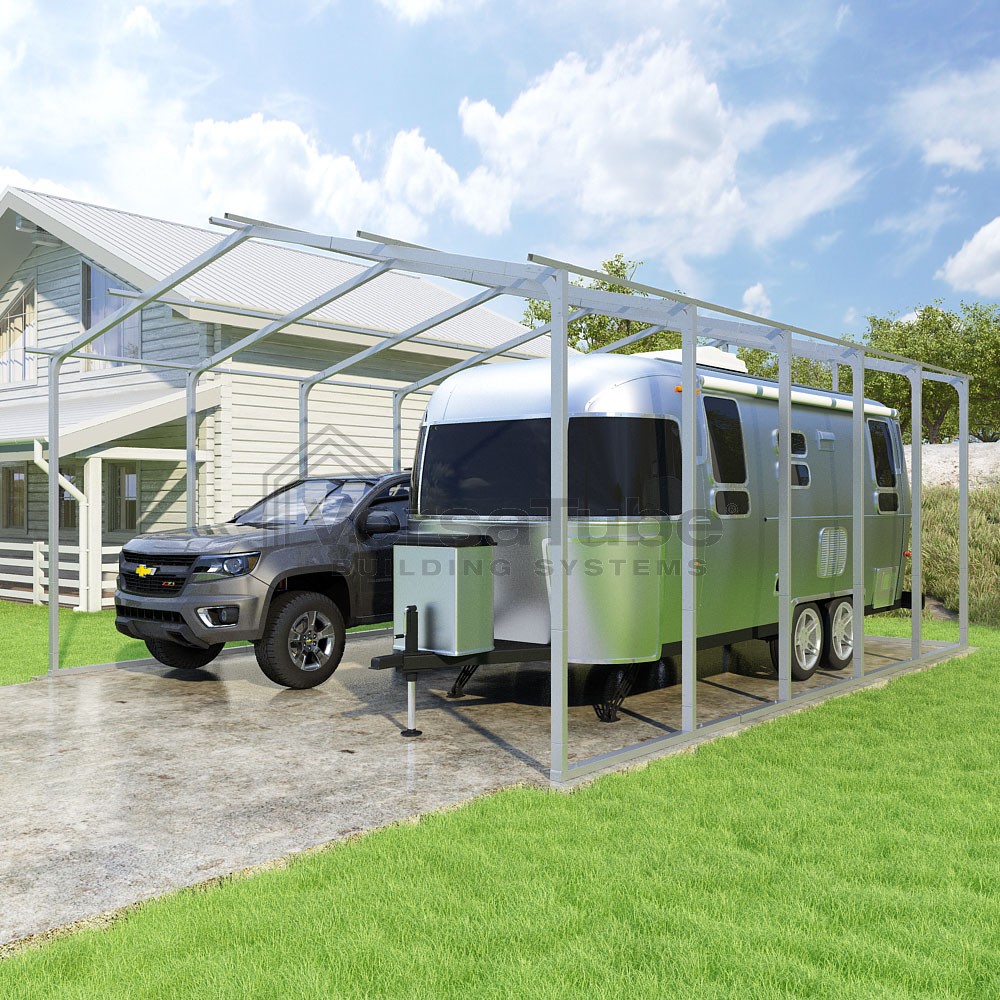 Pinnacle Series DIY carport frame kit includes roof purlins for applying sheet metal panels vertically (sold separately) in a traditional or common gable style manner.