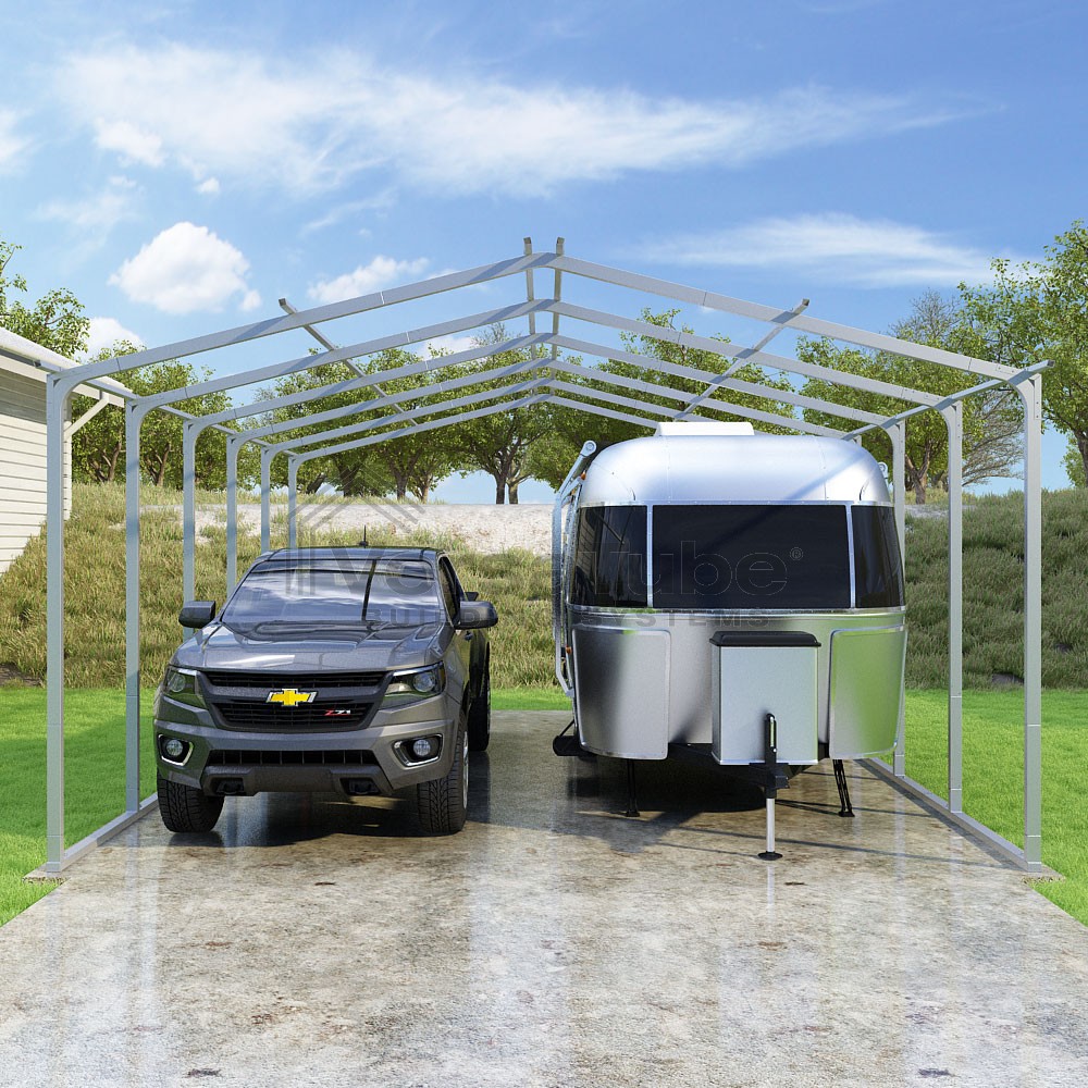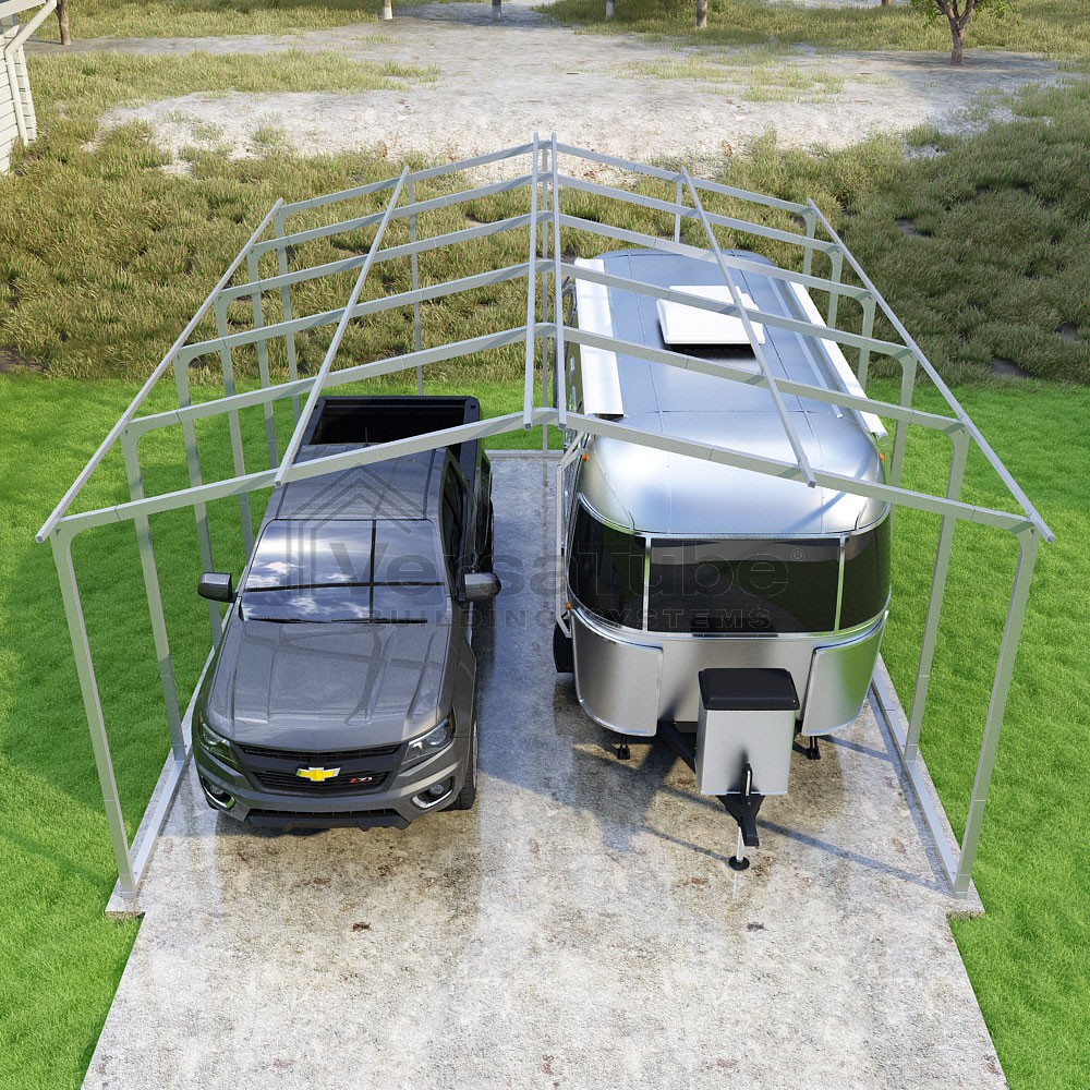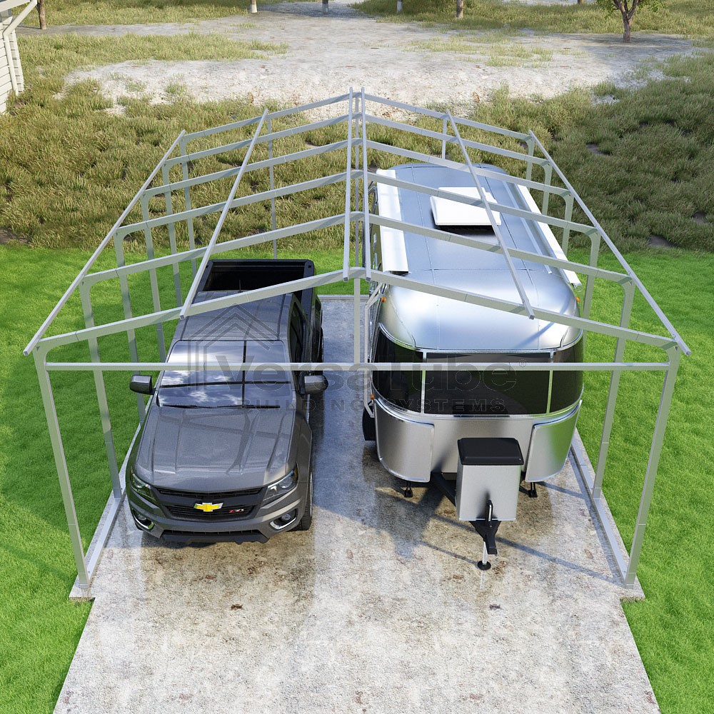 The Pinnacle design utilizes a vertical sheet metal roof application allowing for greater snow, rain, and debris run-off which is ideal for higher snow load areas. Adding a side kit run ensures structural performance in more extreme snow or high wind areas, as well, additional protection from elements entering from the sides. With the VersaTube Slip-Fit frame system, you can get your carport frame kit assembled in a single afternoon using common tools.