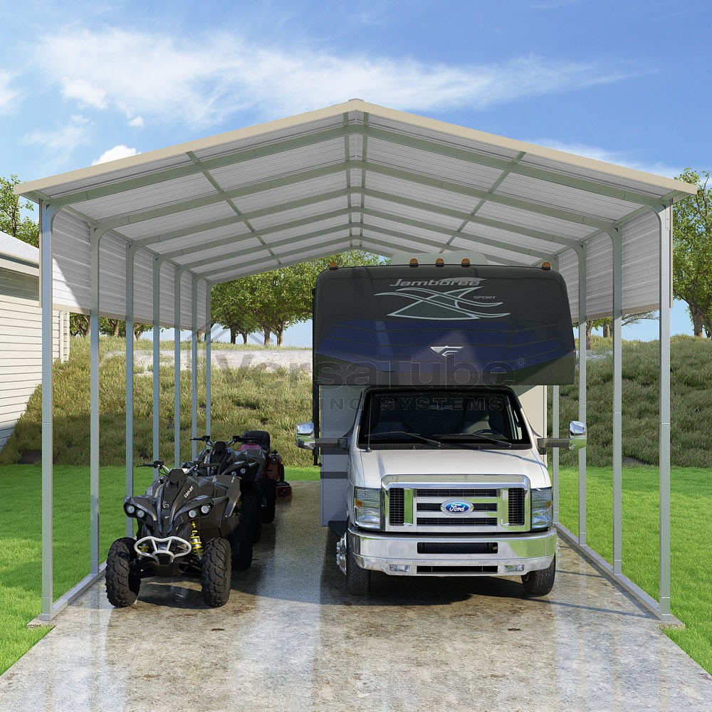 The Pinnacle design is favored by many who want both an A-frame roof style and vertically applied roof panels that allow greater snow, rain and debris run-off - ideal for higher snow load areas. And with the VersaTube Slip-Fit frame system, you can get your carport kit with roof assembled in a single afternoon using common tools.