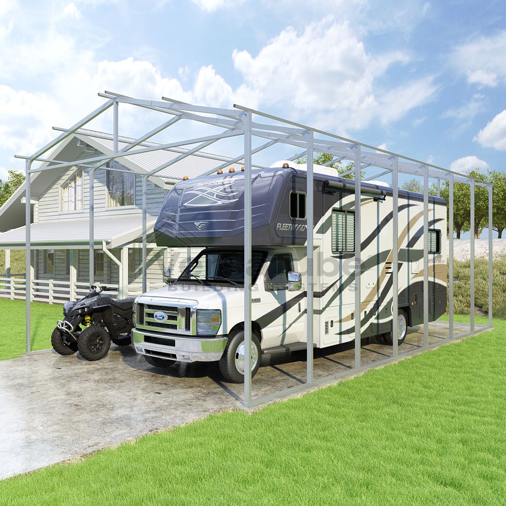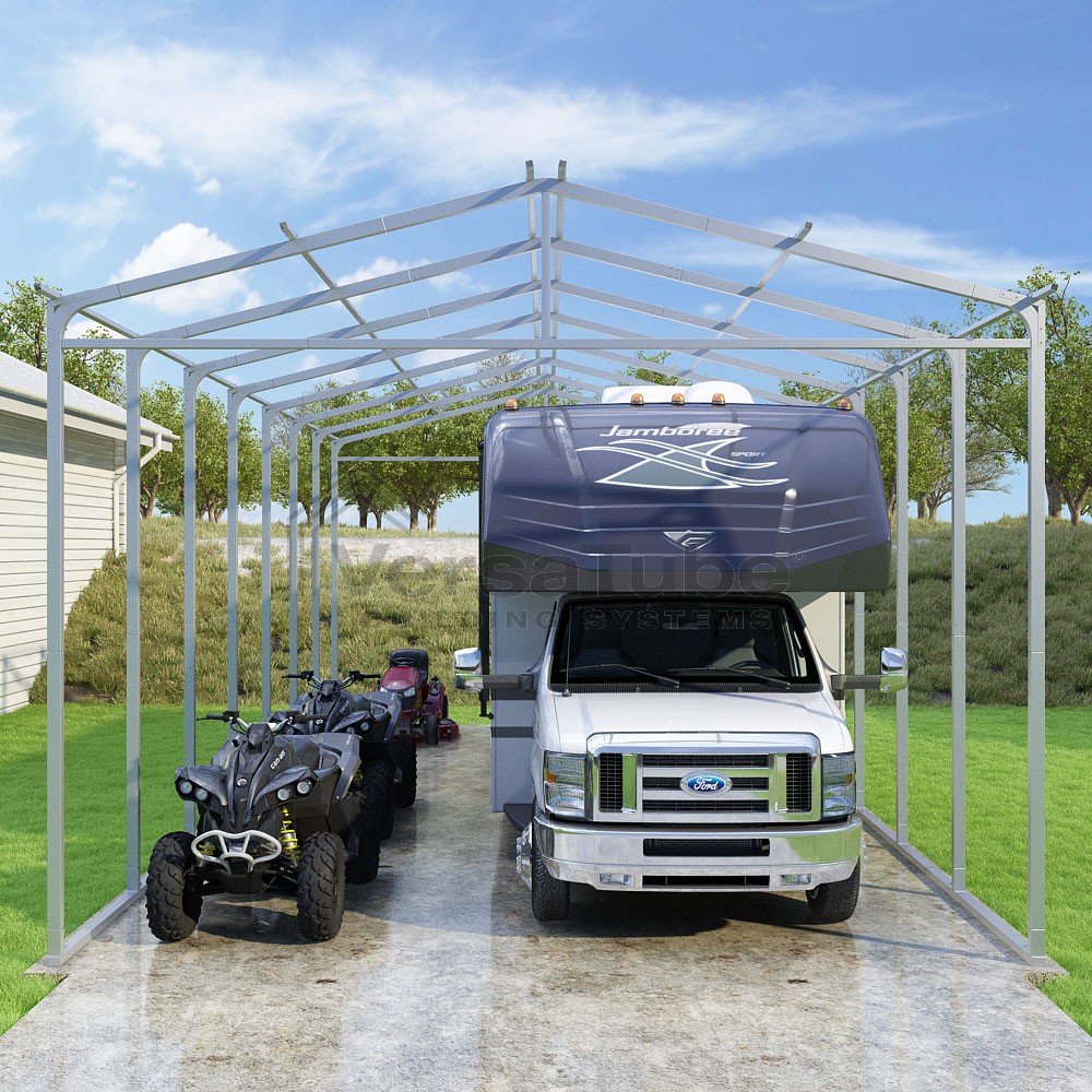Pinnacle Series DIY carport frame kit includes roof purlins for applying sheet metal panels vertically (sold separately) in a traditional or common gable style manner.