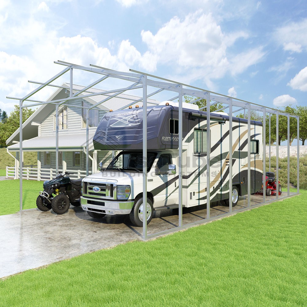 Pinnacle Series DIY carport frame kit includes roof purlins for applying sheet metal panels vertically (sold separately) in a traditional or common gable style manner.