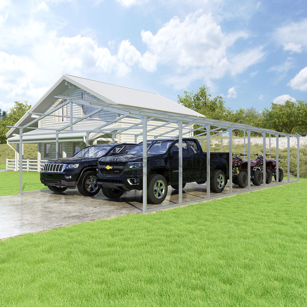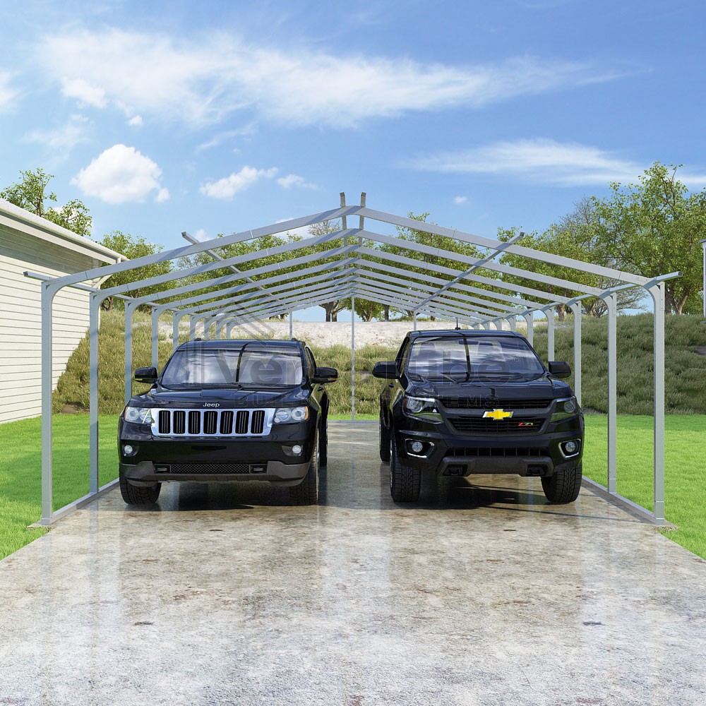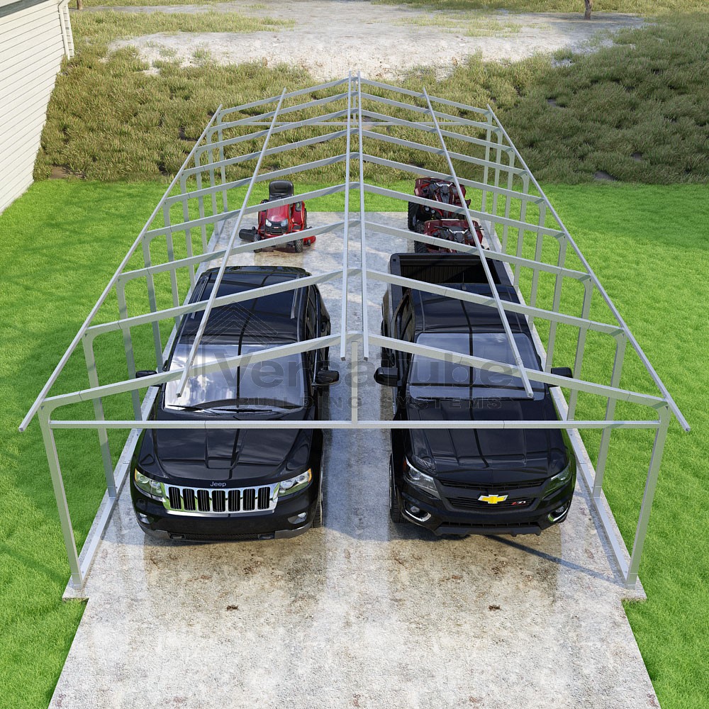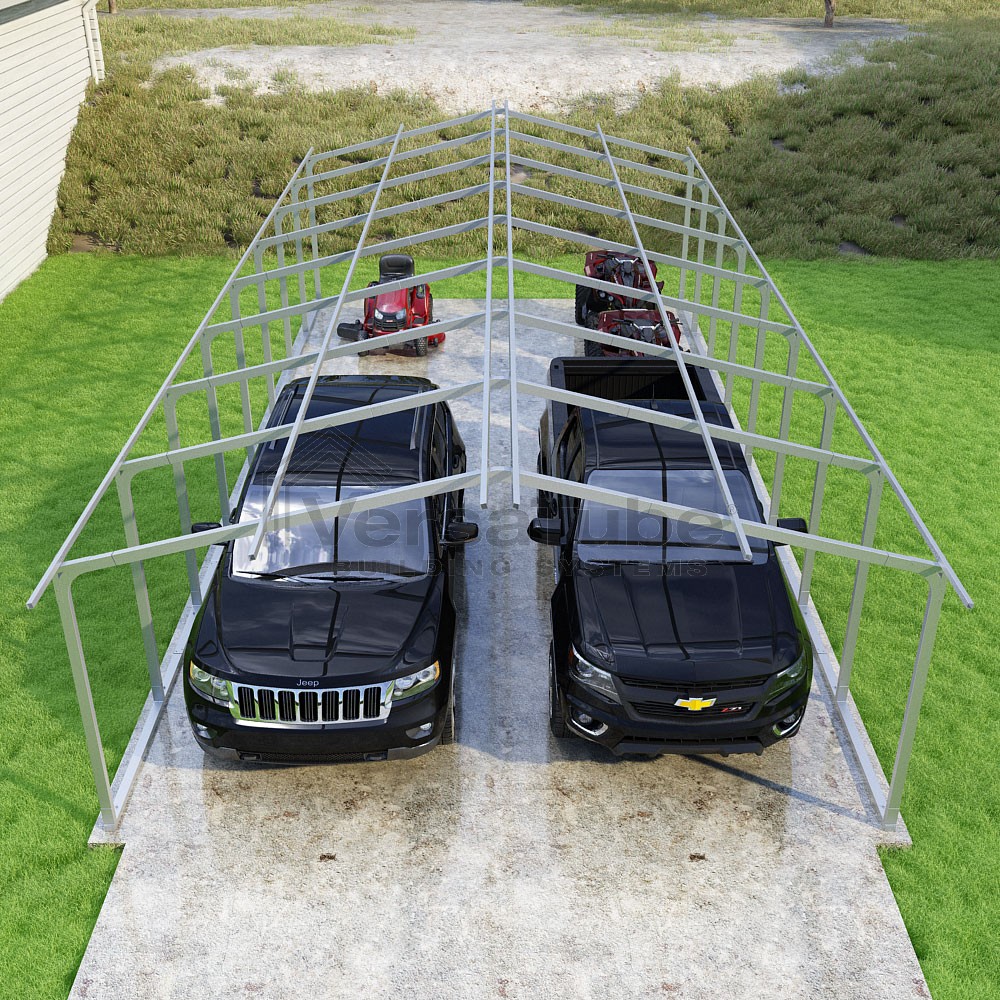 Pinnacle Series DIY carport frame kit includes roof purlins for applying sheet metal panels vertically (sold separately) in a traditional or common gable style manner.