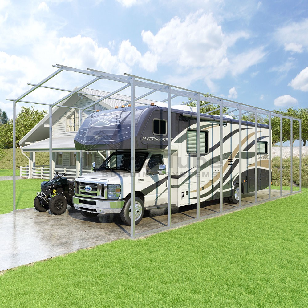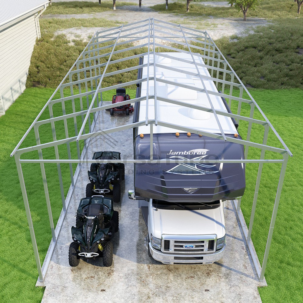 Pinnacle Series DIY carport frame kit includes roof purlins for applying sheet metal panels vertically (sold separately) in a traditional or common gable style manner.