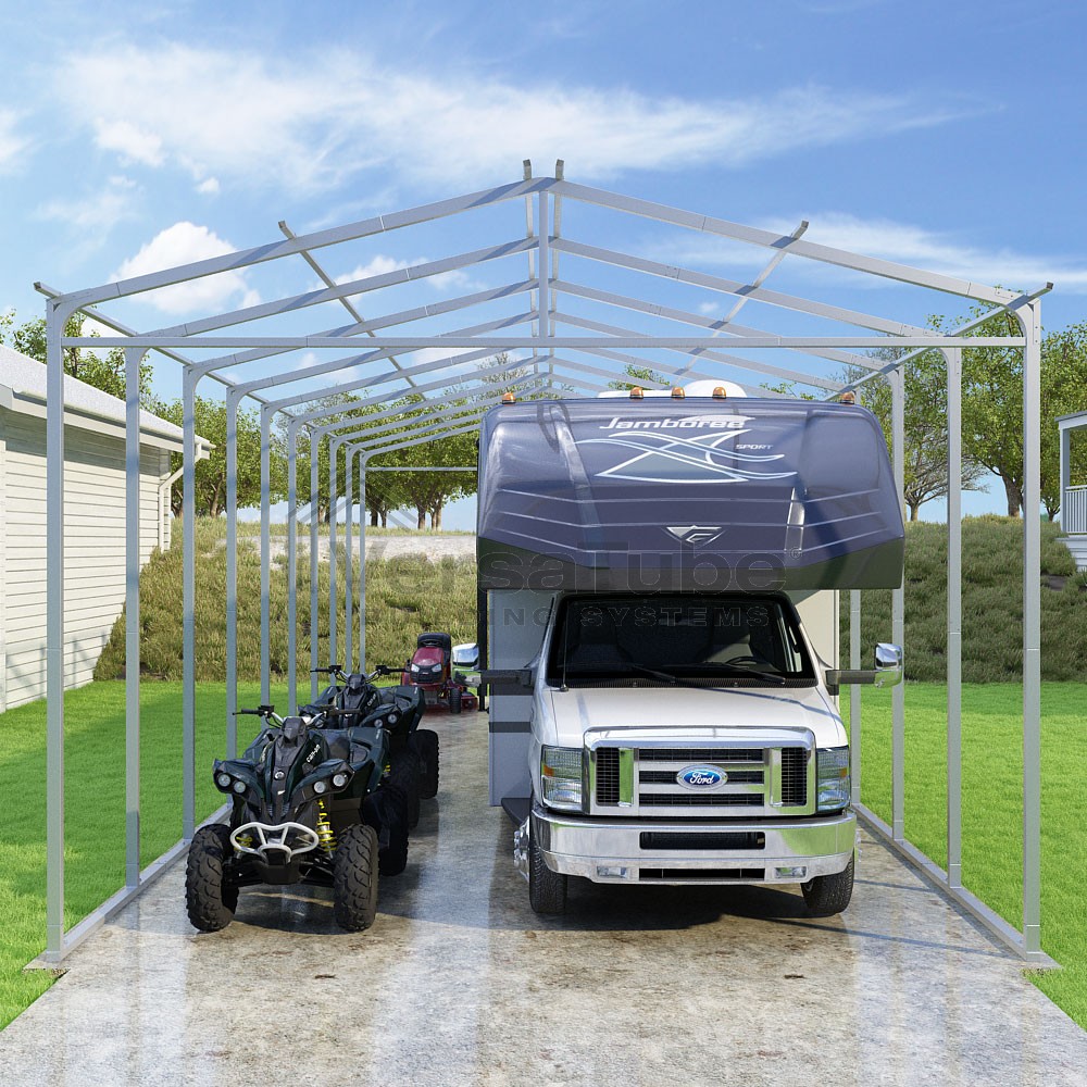 The Pinnacle design utilizes a vertical sheet metal roof application allowing for greater snow, rain, and debris run-off which is ideal for higher snow load areas. Adding a side kit run ensures structural performance in more extreme snow or high wind areas, as well, additional protection from elements entering from the sides. With the VersaTube Slip-Fit frame system, you can get your carport frame kit assembled in a single afternoon using common tools.