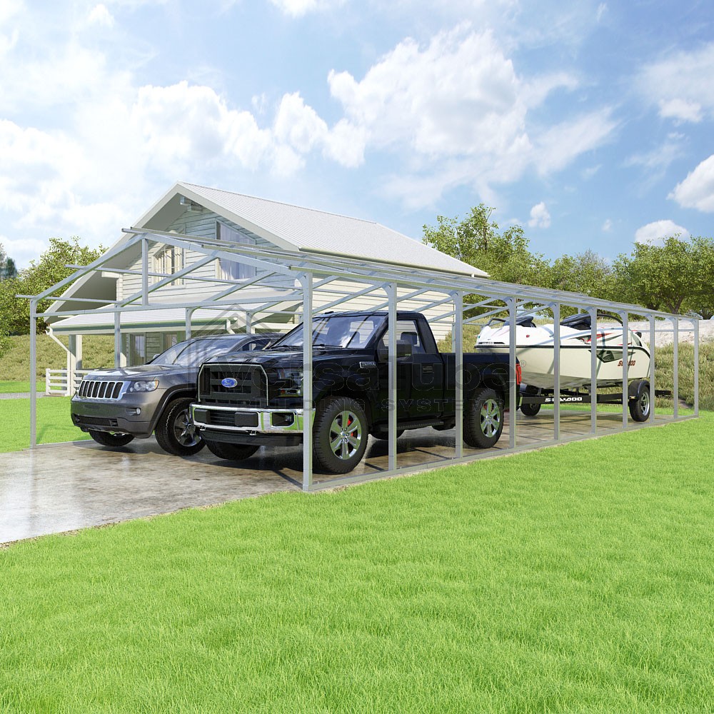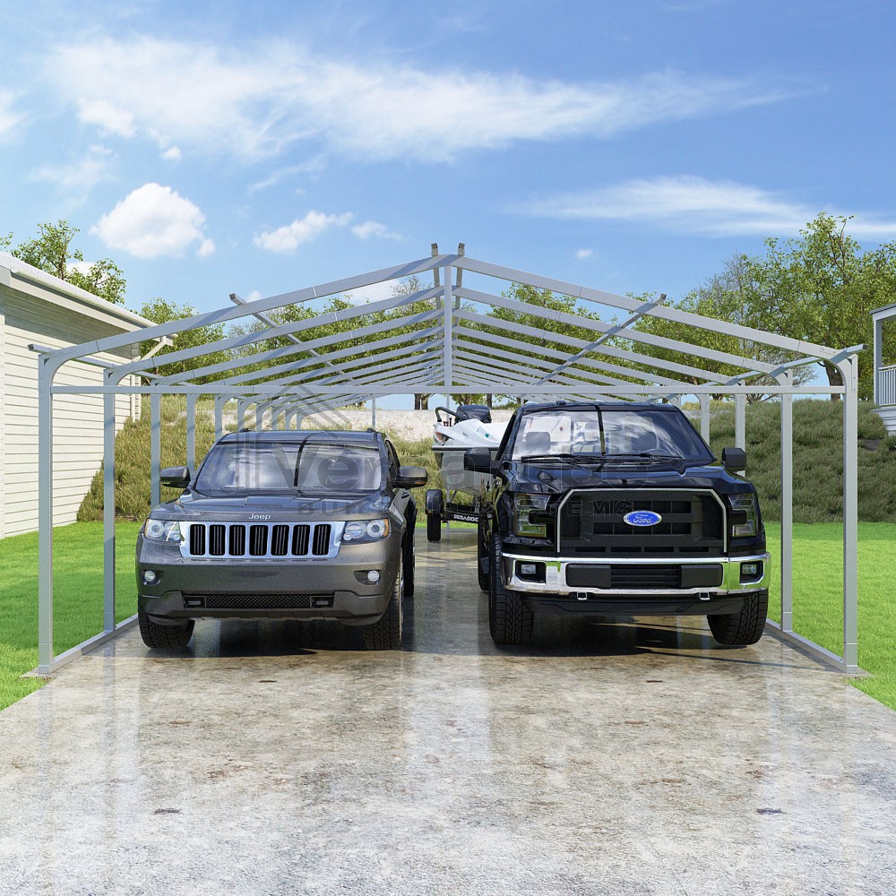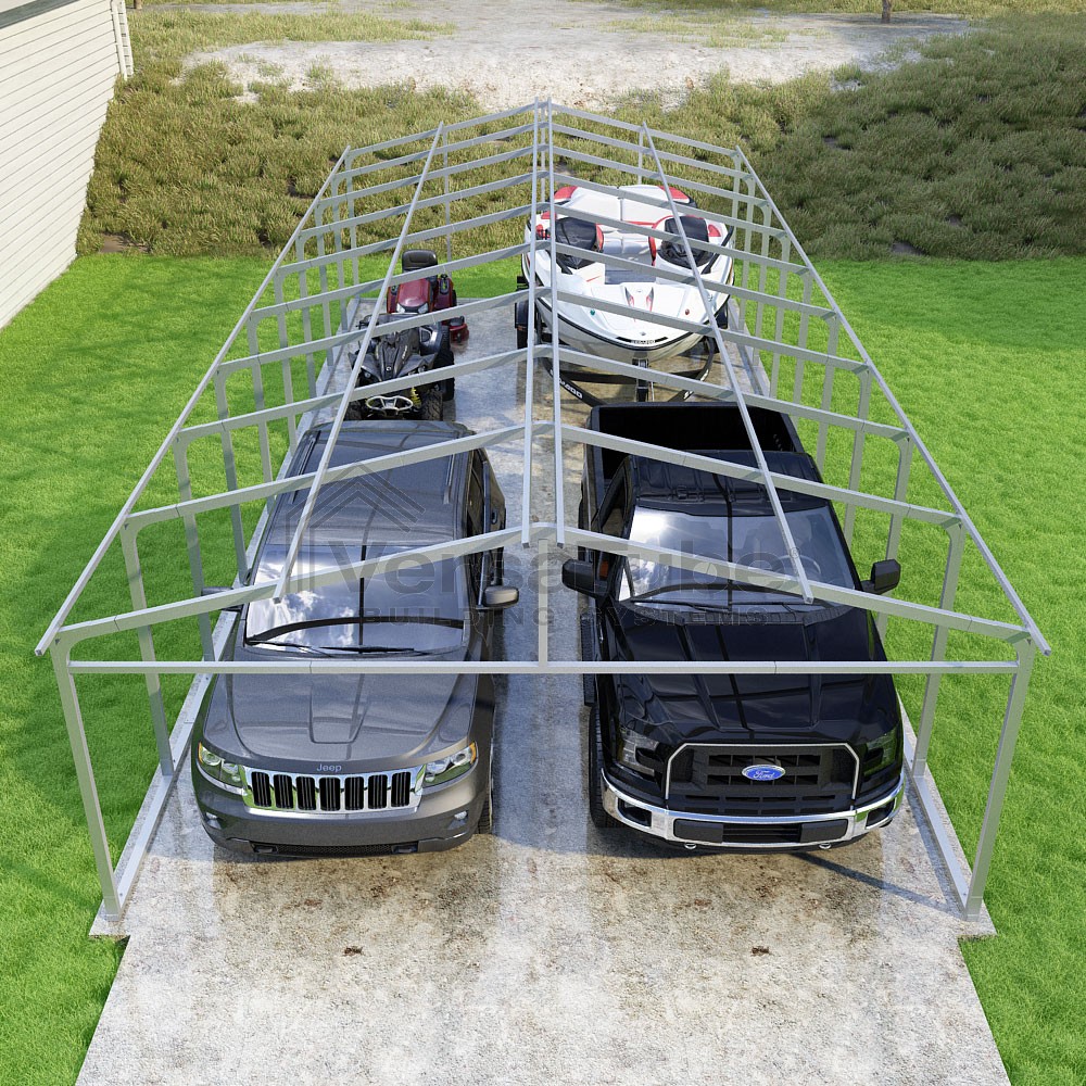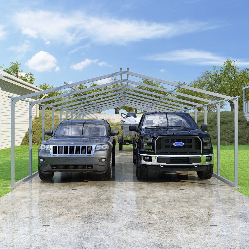 Pinnacle Series DIY carport frame kit includes roof purlins for applying sheet metal panels vertically (sold separately) in a traditional or common gable style manner.