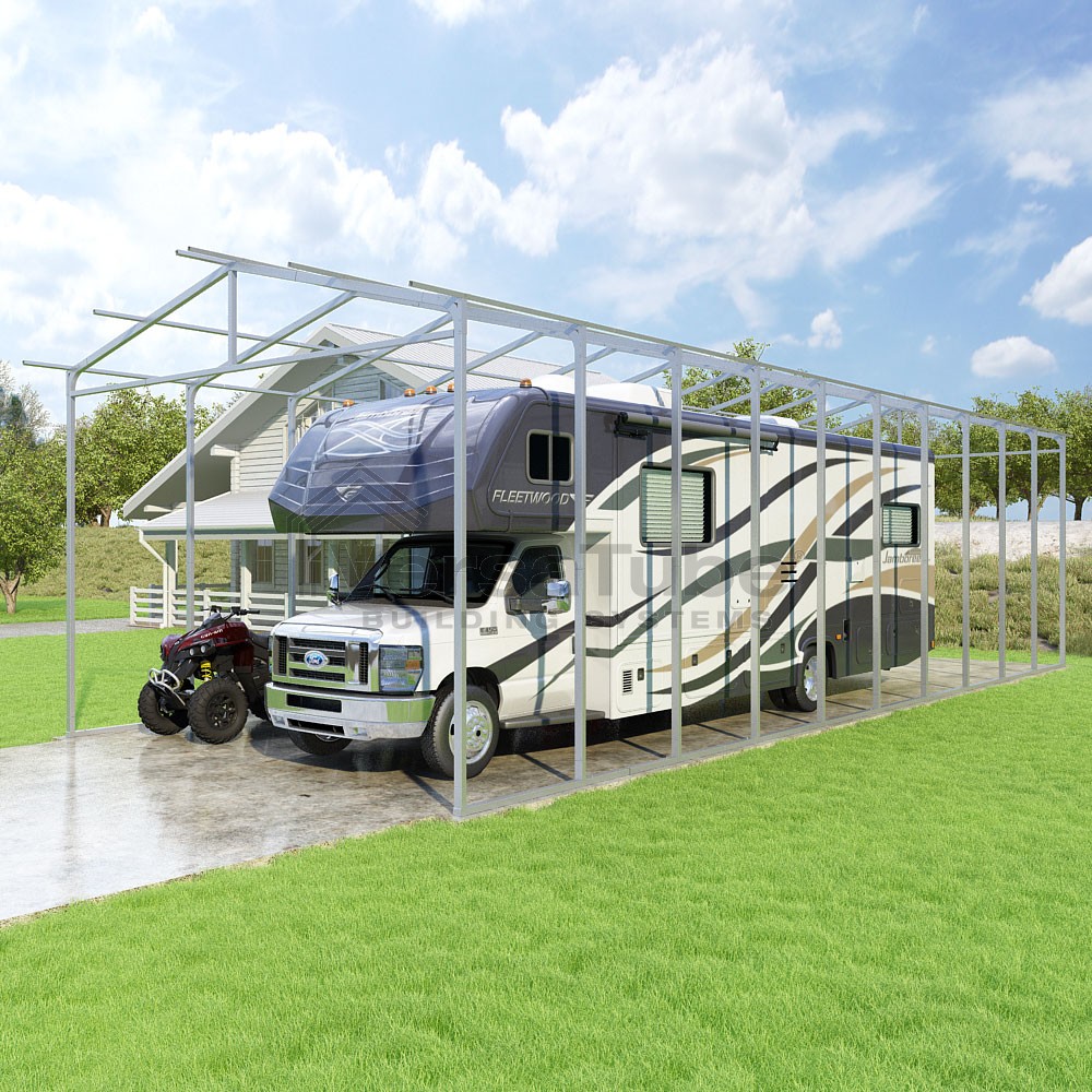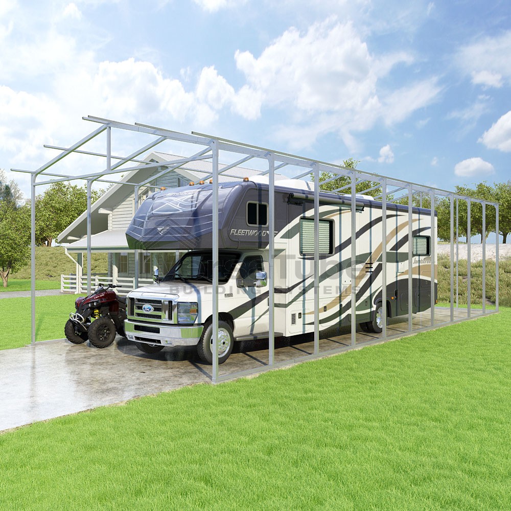 Pinnacle Series DIY carport frame kit includes roof purlins for applying sheet metal panels vertically (sold separately) in a traditional or common gable style manner.