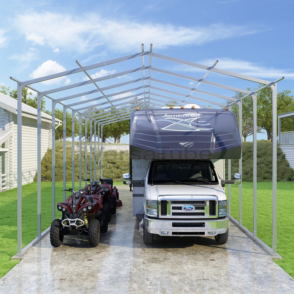 The Pinnacle design utilizes a vertical sheet metal roof application allowing for greater snow, rain, and debris run-off which is ideal for higher snow load areas. Adding a side kit run ensures structural performance in more extreme snow or high wind areas, as well, additional protection from elements entering from the sides. With the VersaTube Slip-Fit frame system, you can get your carport frame kit assembled in a single afternoon using common tools.