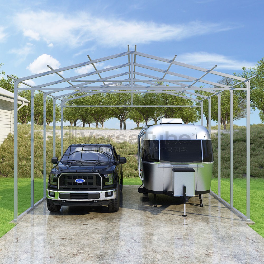 The Pinnacle design utilizes a vertical sheet metal roof application allowing for greater snow, rain, and debris run-off which is ideal for higher snow load areas. Adding a side kit run ensures structural performance in more extreme snow or high wind areas, as well, additional protection from elements entering from the sides. With the VersaTube Slip-Fit frame system, you can get your carport frame kit assembled in a single afternoon using common tools.