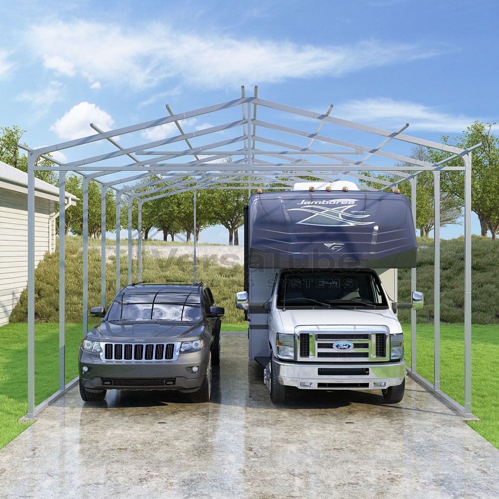 The Pinnacle design utilizes a vertical sheet metal roof application allowing for greater snow, rain, and debris run-off which is ideal for higher snow load areas. Adding a side kit run ensures structural performance in more extreme snow or high wind areas, as well, additional protection from elements entering from the sides. With the VersaTube Slip-Fit frame system, you can get your carport frame kit assembled in a single afternoon using common tools.