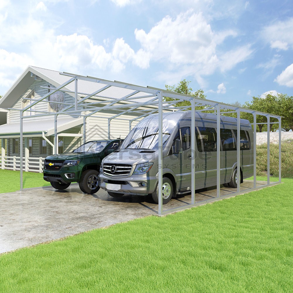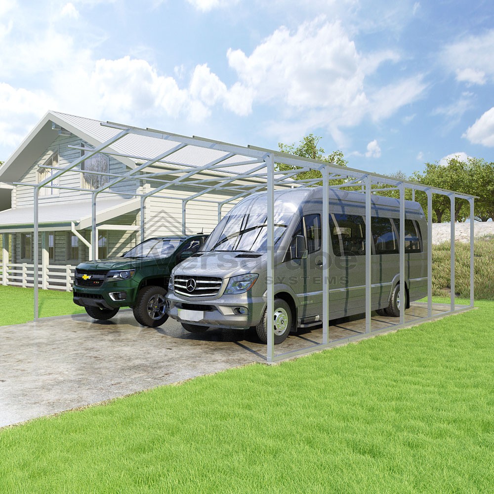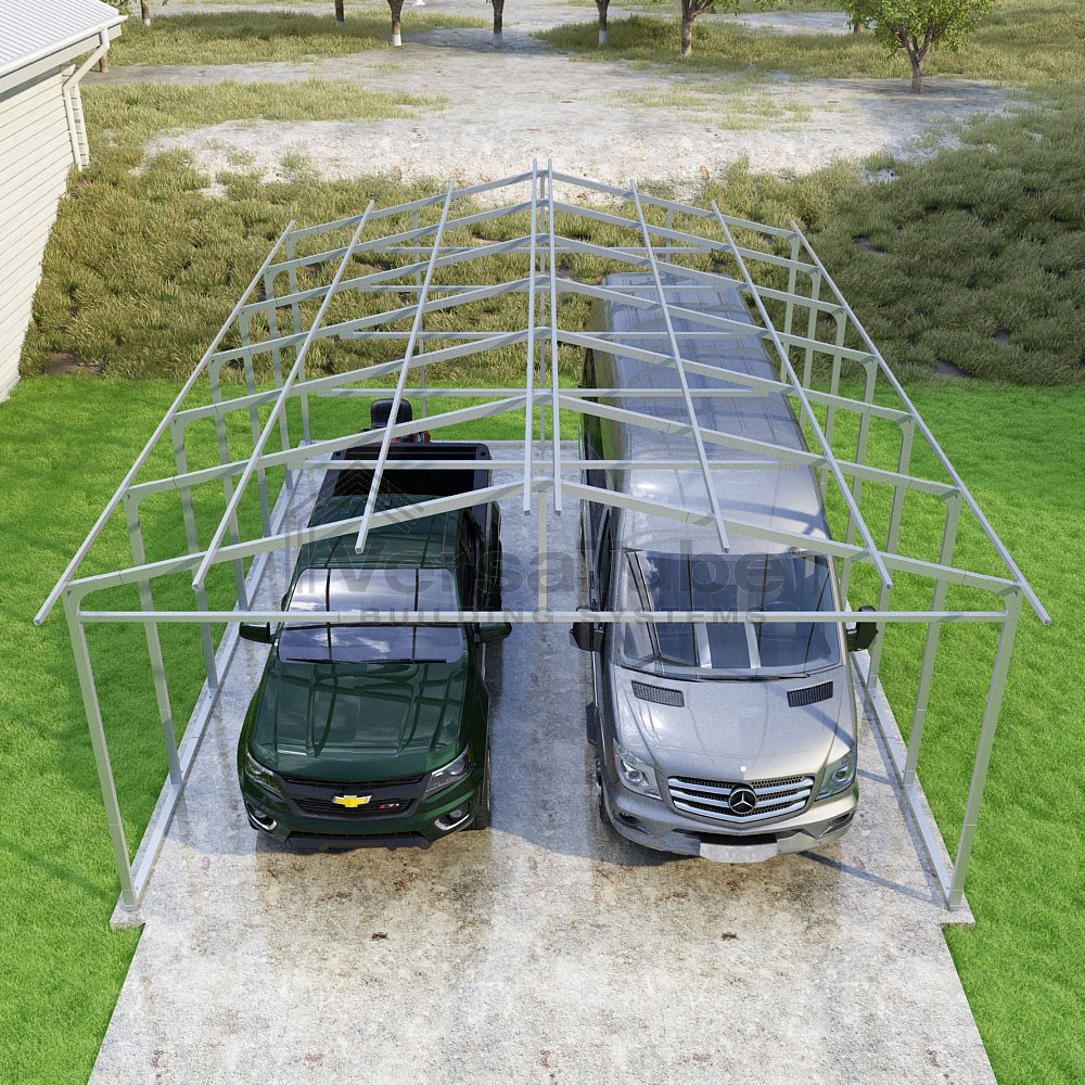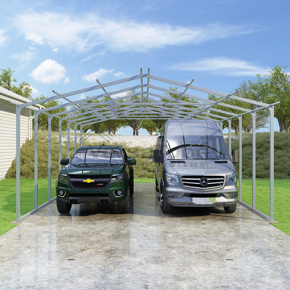 Pinnacle Series DIY carport frame kit includes roof purlins for applying sheet metal panels vertically (sold separately) in a traditional or common gable style manner.