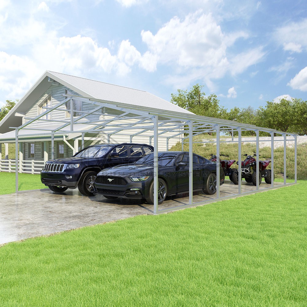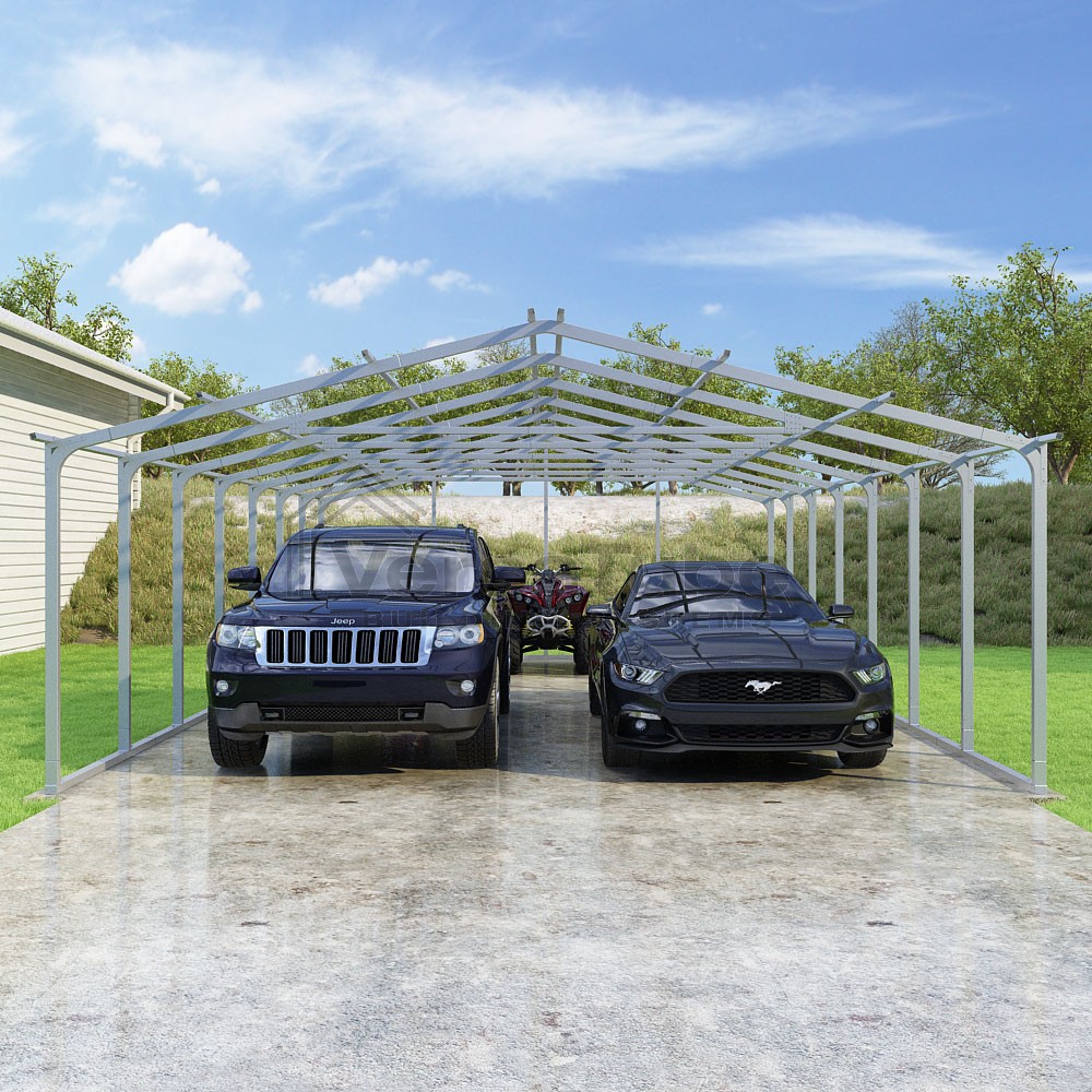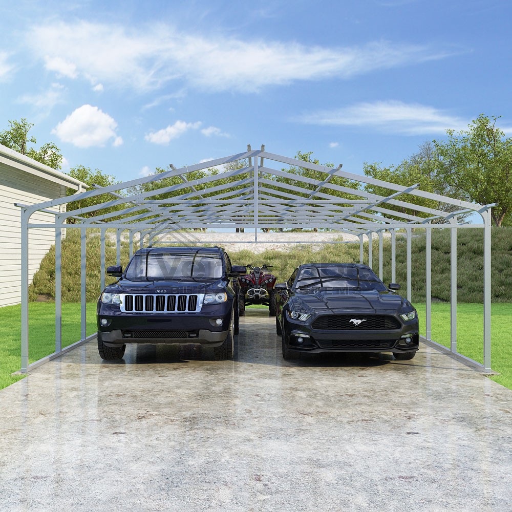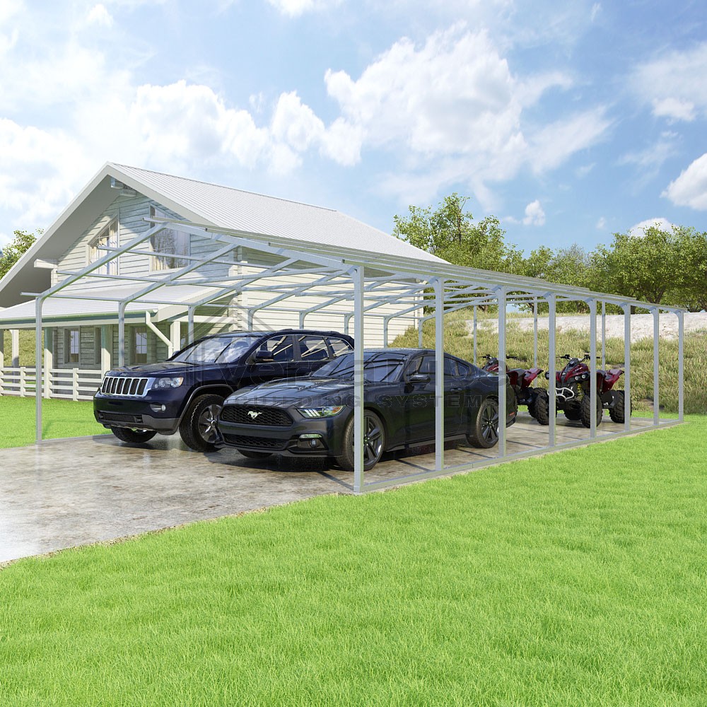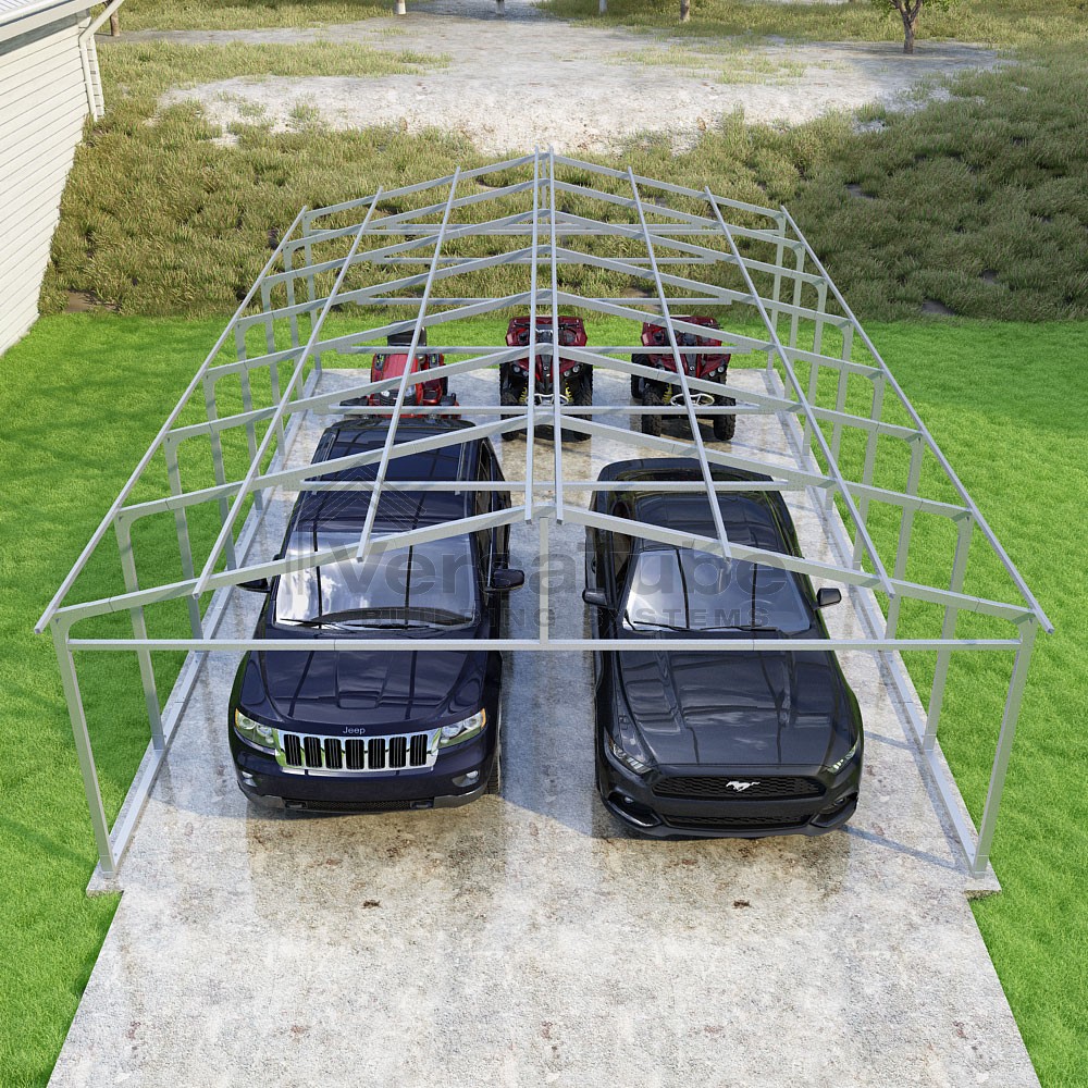 Pinnacle Series DIY carport frame kit includes roof purlins for applying sheet metal panels vertically (sold separately) in a traditional or common gable style manner.