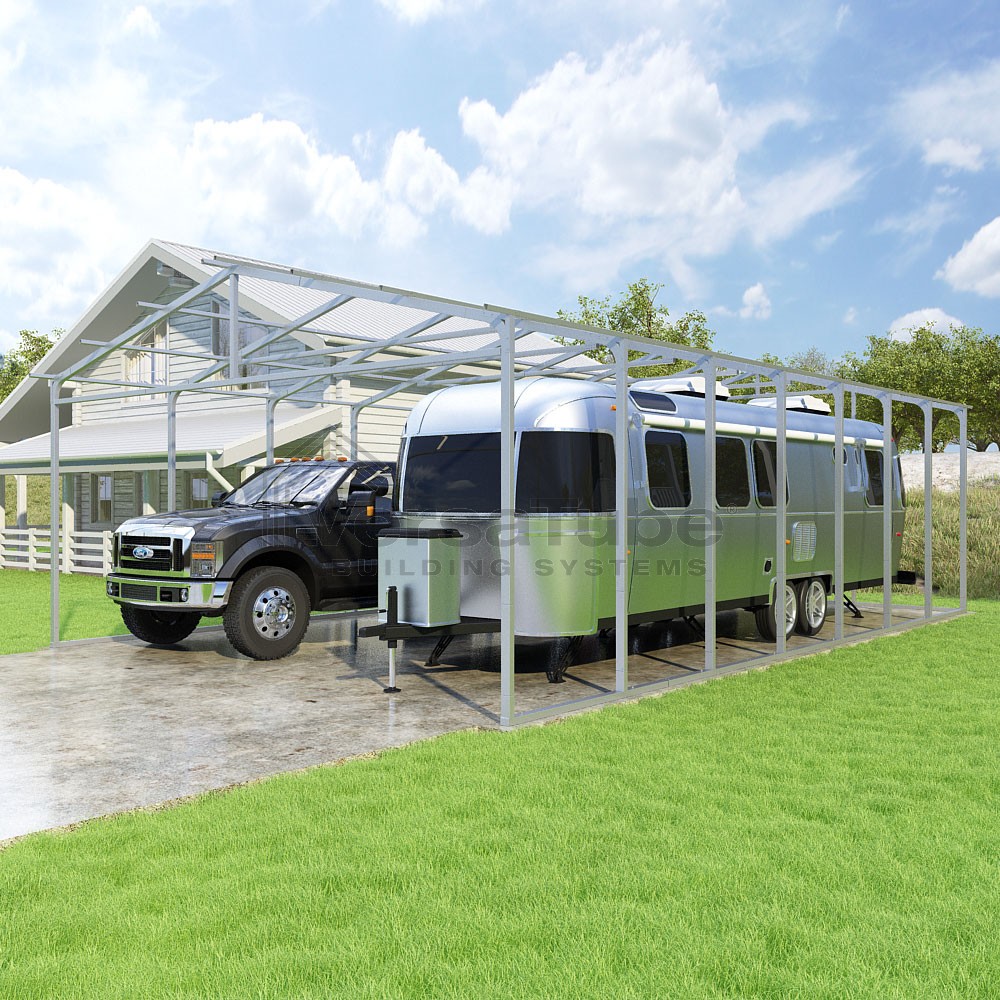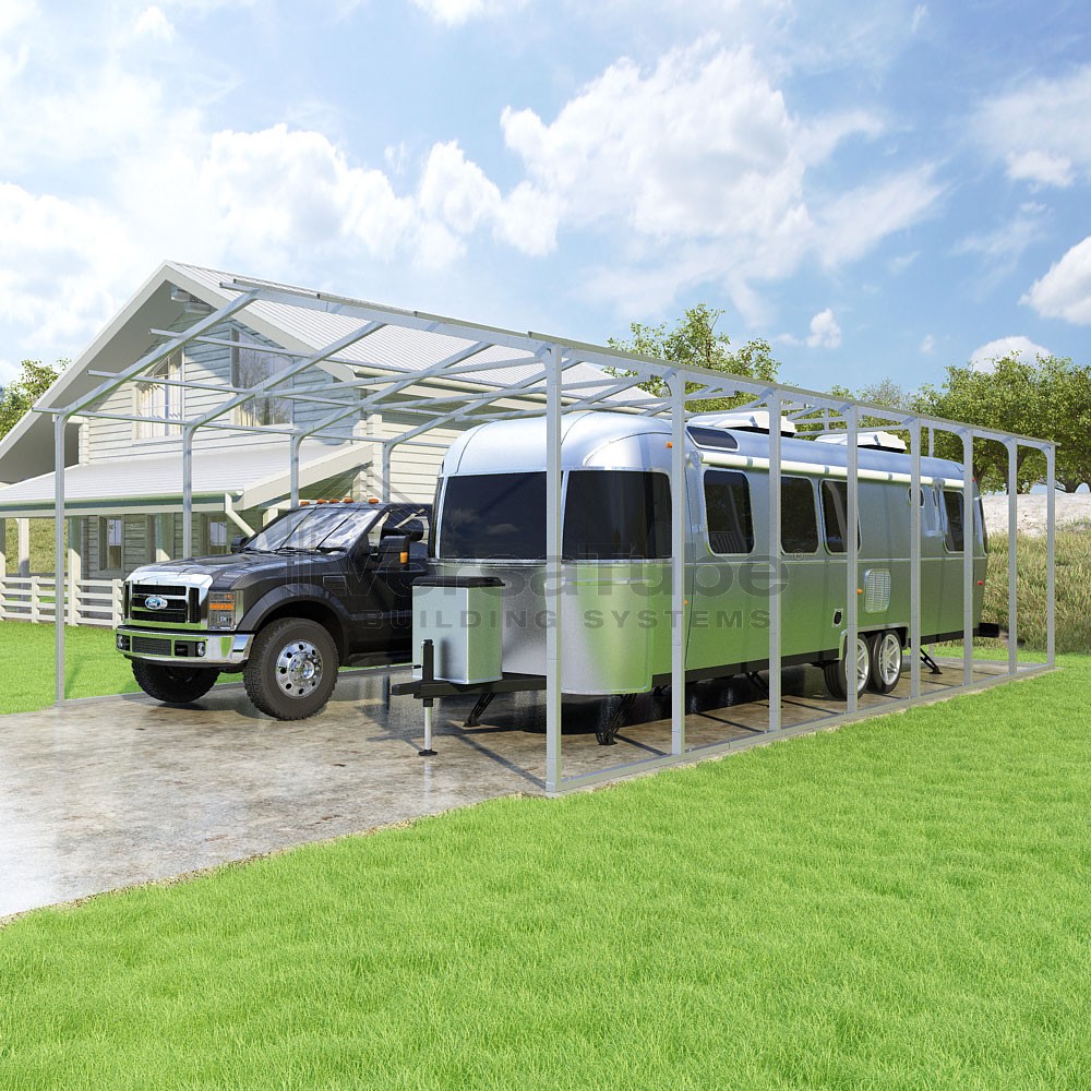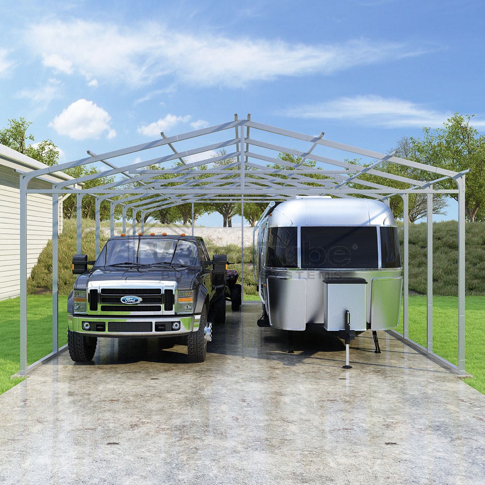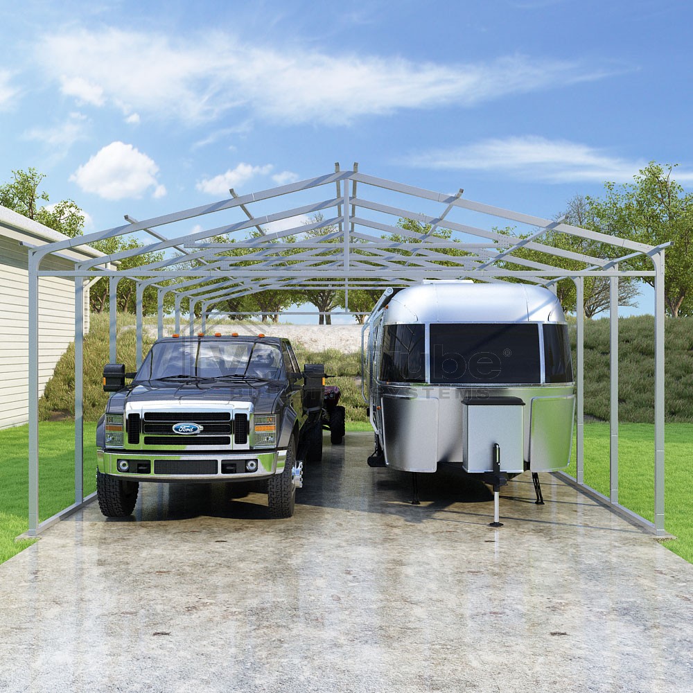 Pinnacle Series DIY carport frame kit includes roof purlins for applying sheet metal panels vertically (sold separately) in a traditional or common gable style manner.