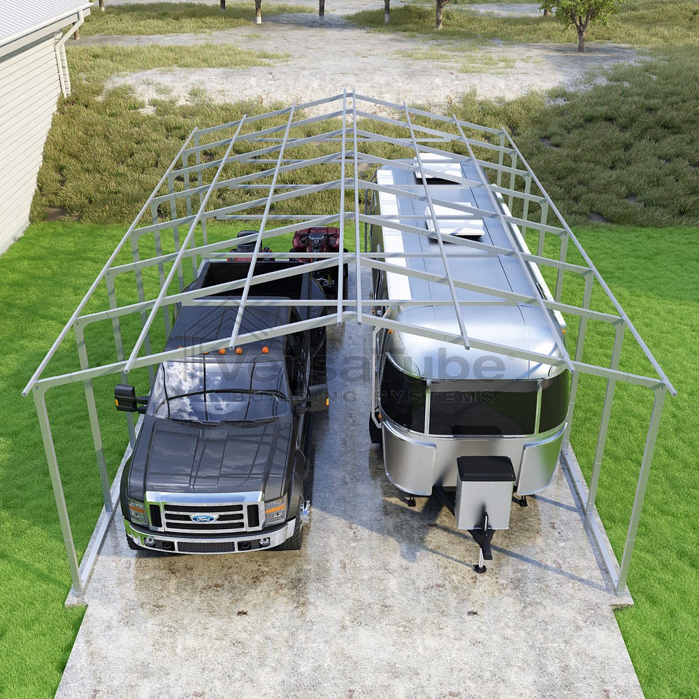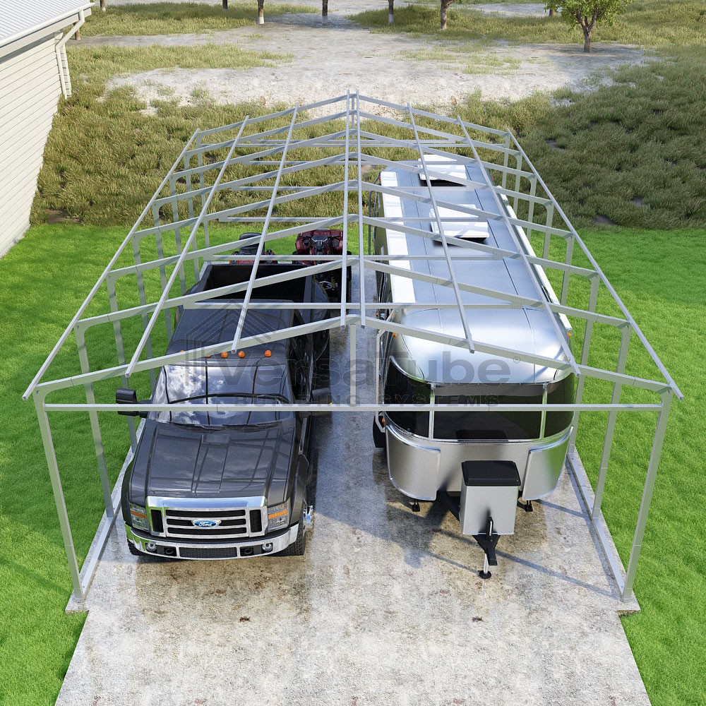 The Pinnacle design utilizes a vertical sheet metal roof application allowing for greater snow, rain, and debris run-off which is ideal for higher snow load areas. Adding a side kit run ensures structural performance in more extreme snow or high wind areas, as well, additional protection from elements entering from the sides. With the VersaTube Slip-Fit frame system, you can get your carport frame kit assembled in a single afternoon using common tools.
