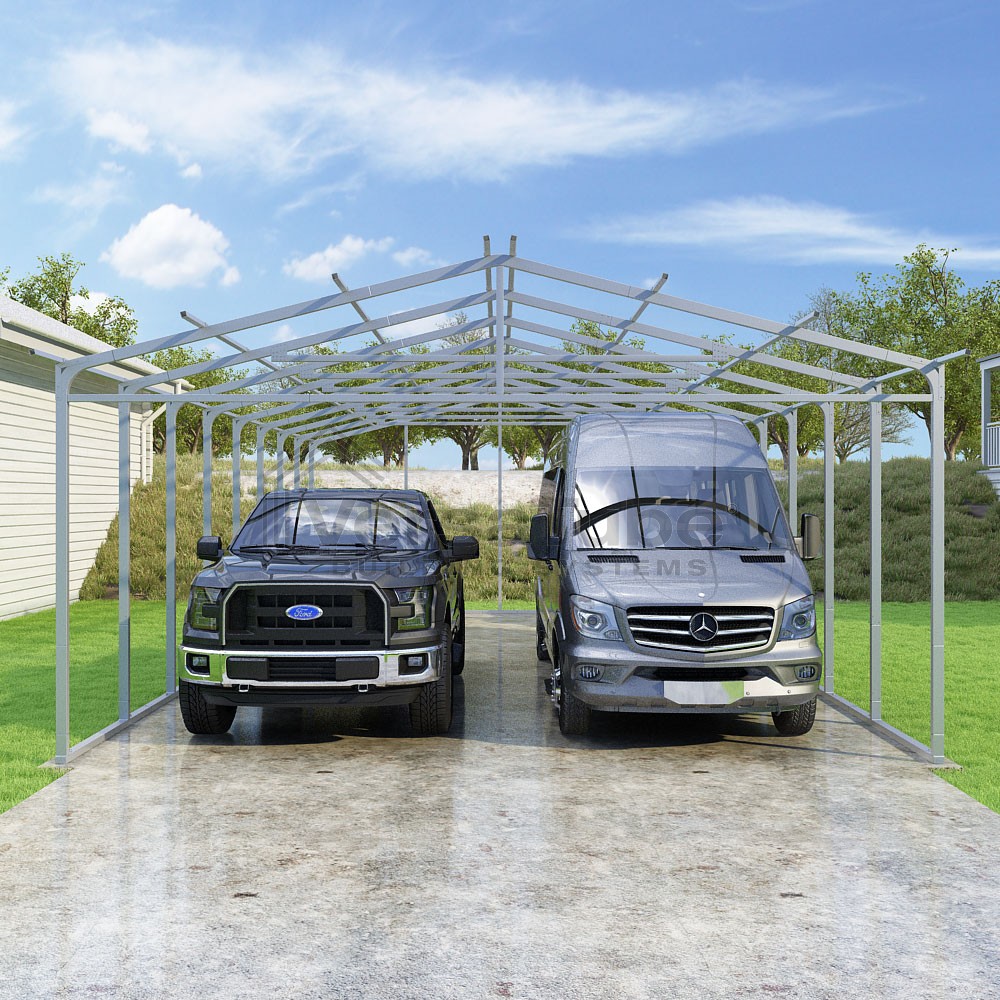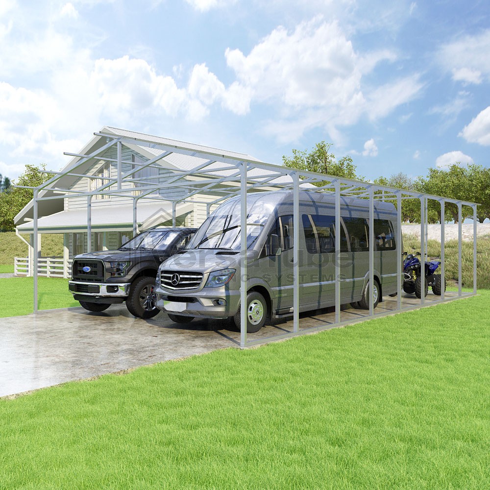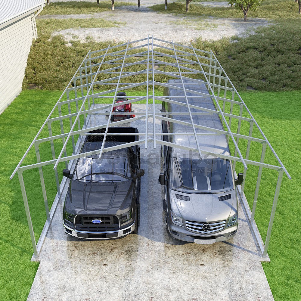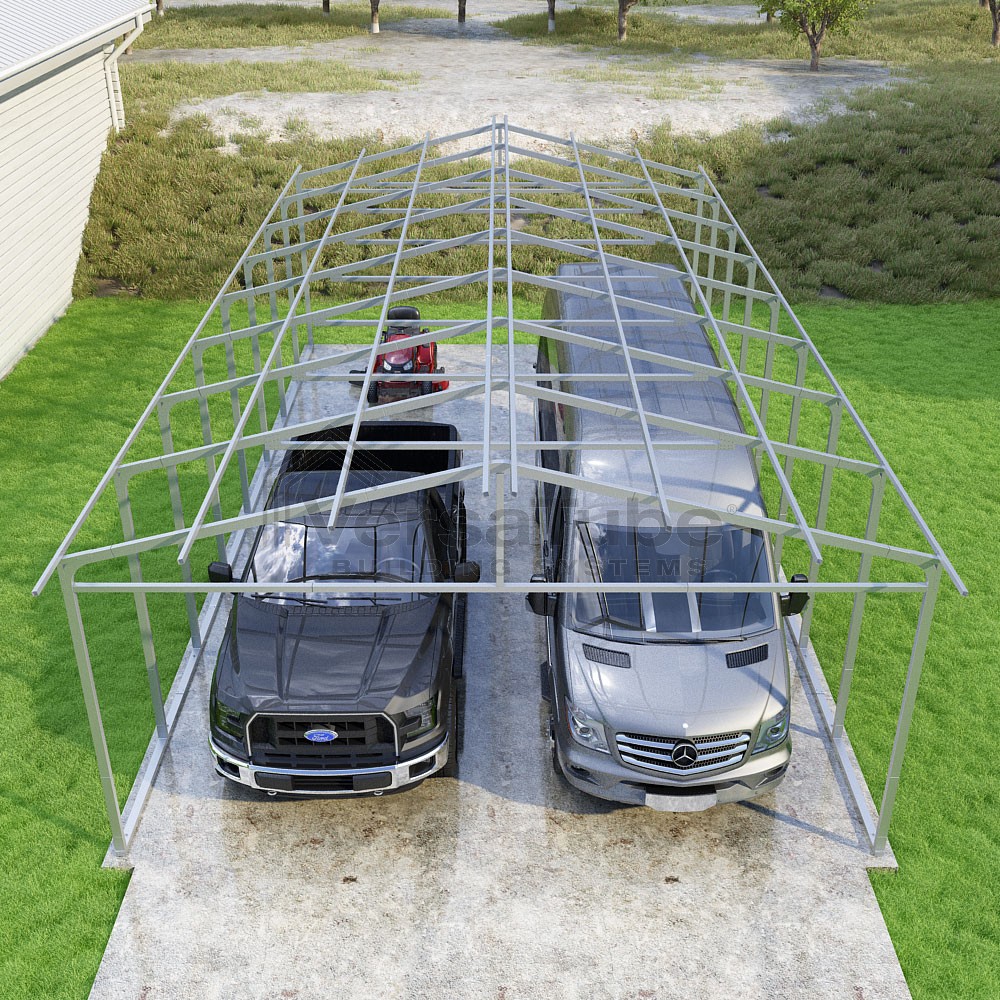 Pinnacle Series DIY carport frame kit includes roof purlins for applying sheet metal panels vertically (sold separately) in a traditional or common gable style manner.
